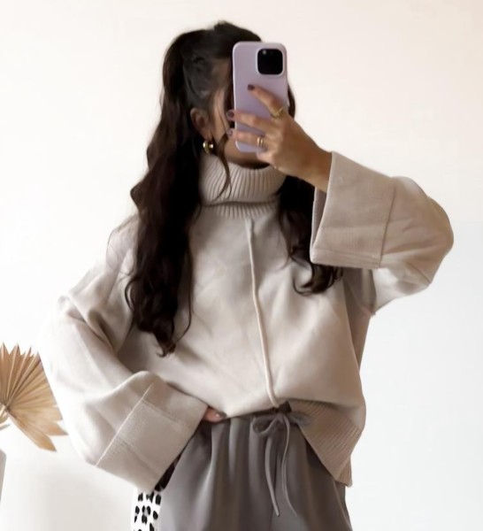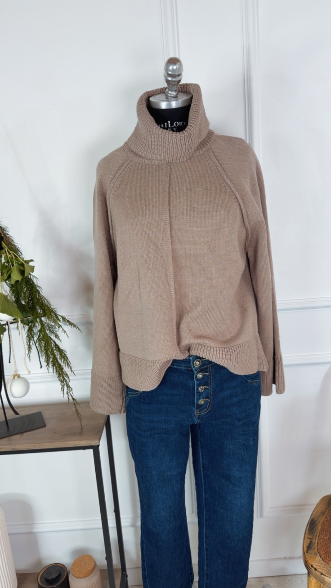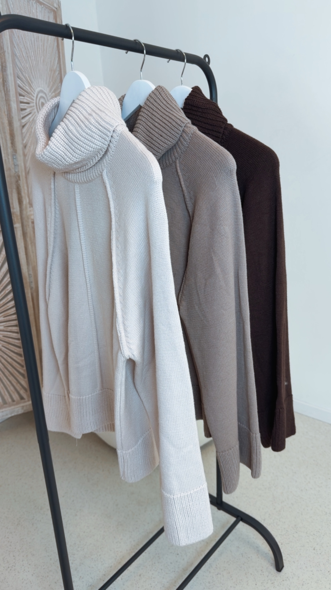 TAUPE KNIT PULLOVER IRMI STRICK ROLLKRAGEN.2