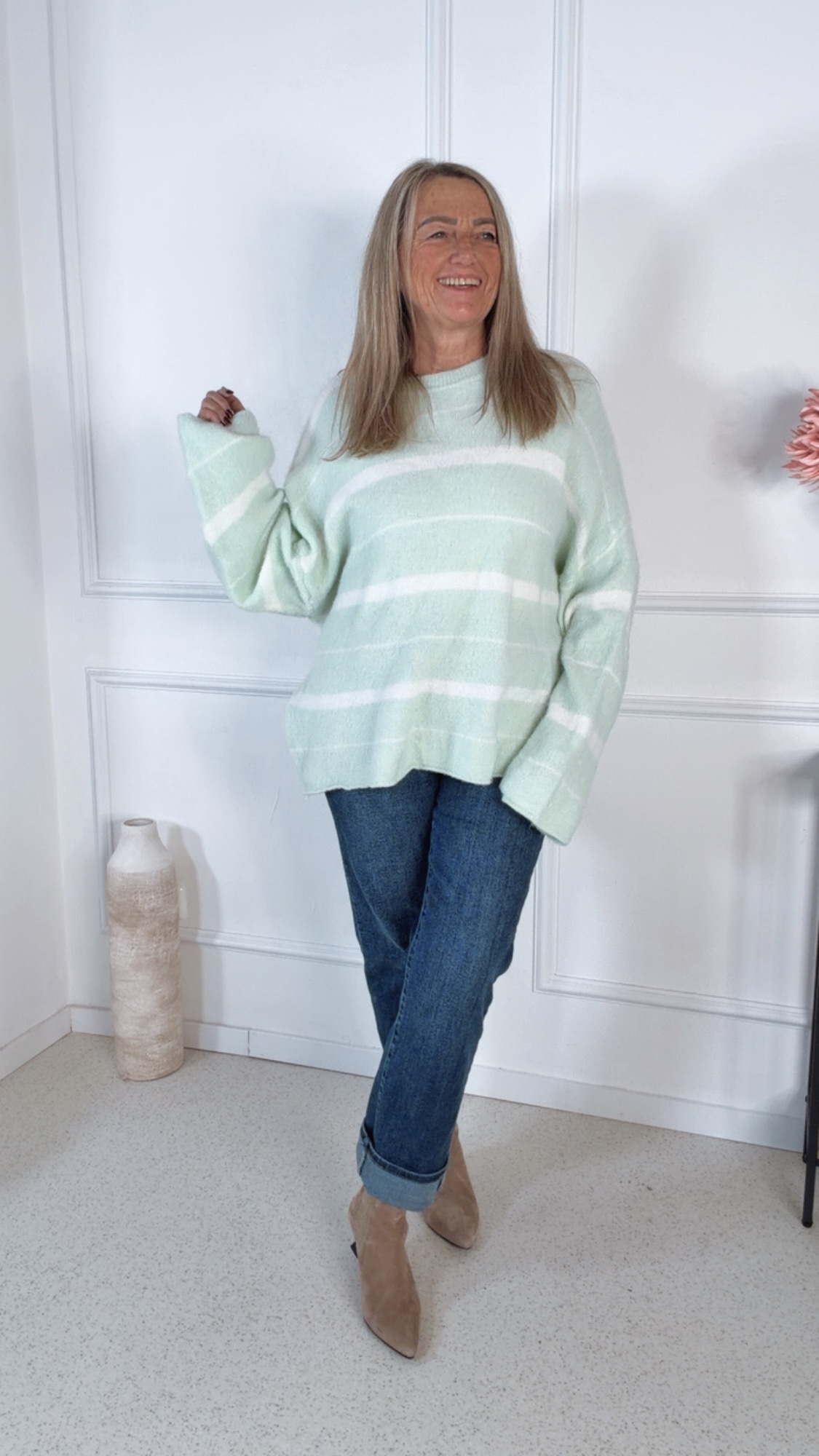🤍 Strickpullover Randy – Lässiger Oversize-Look mit Trendstreifen