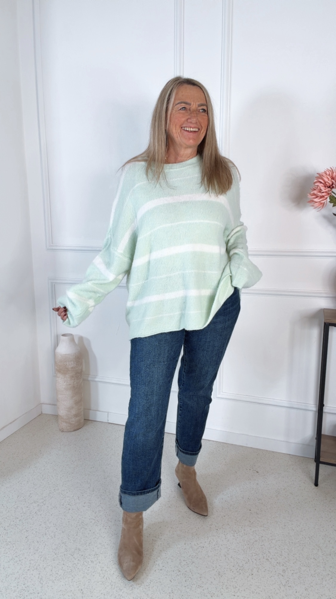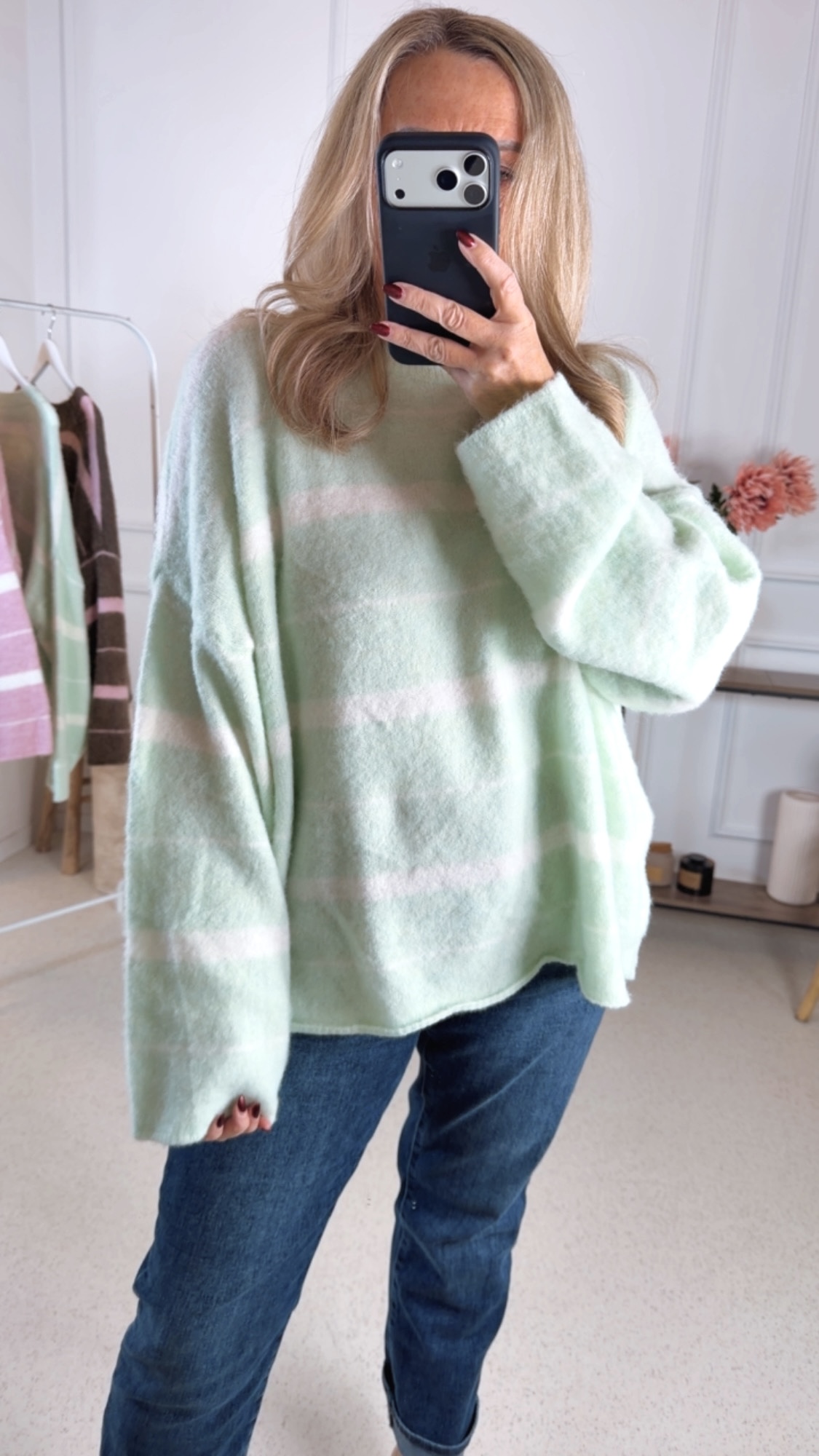 ✨ Details: Wunderschöner Strickpullover mit angesagten Streifen Schön Oversize geschnitten Angenehme Tragequalität
