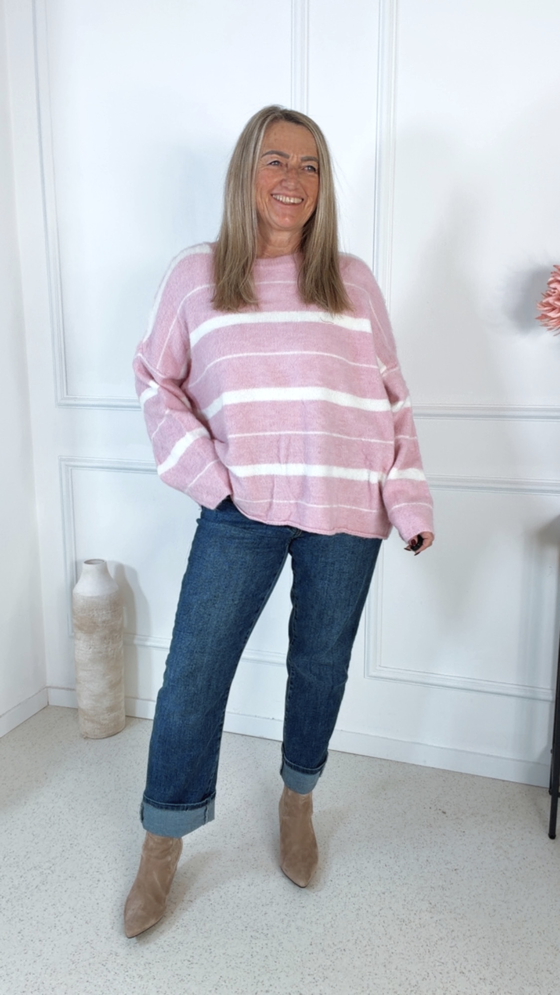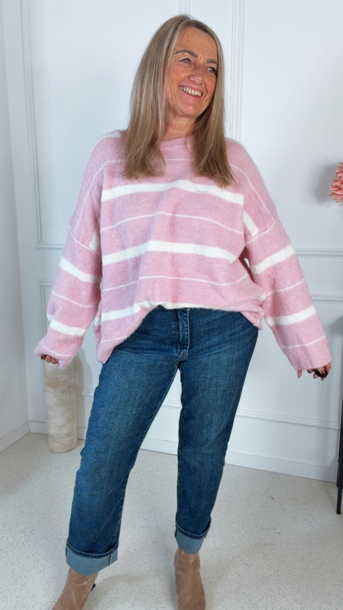 🤍 Strickpullover Randy – Lässiger Oversize-Look mit Trendstreifen