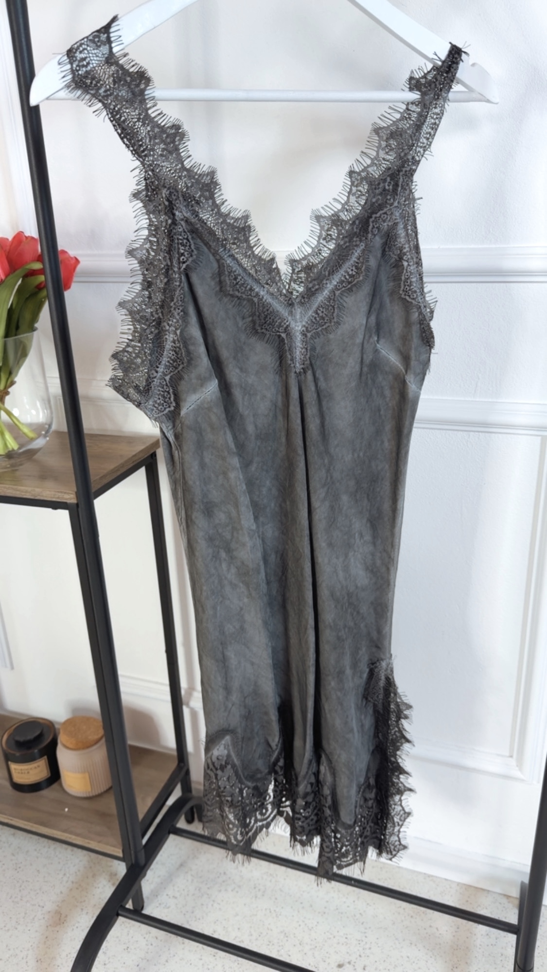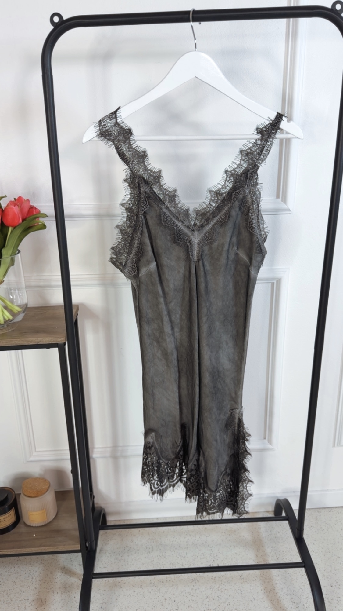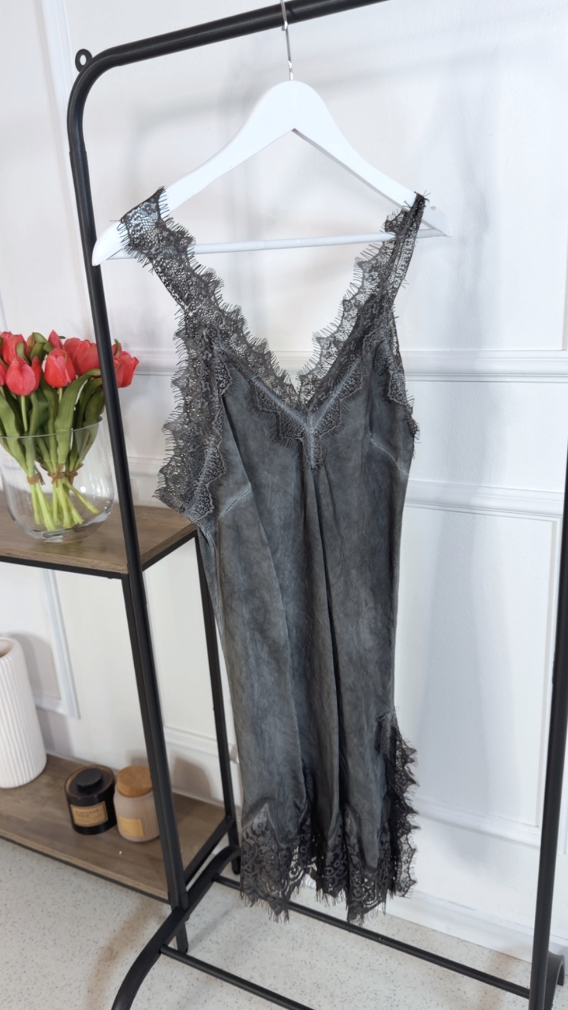 BASIC LONG TOP/ KLEID mit Spitze LEA 34 -42 Made i Italy asymetrisch