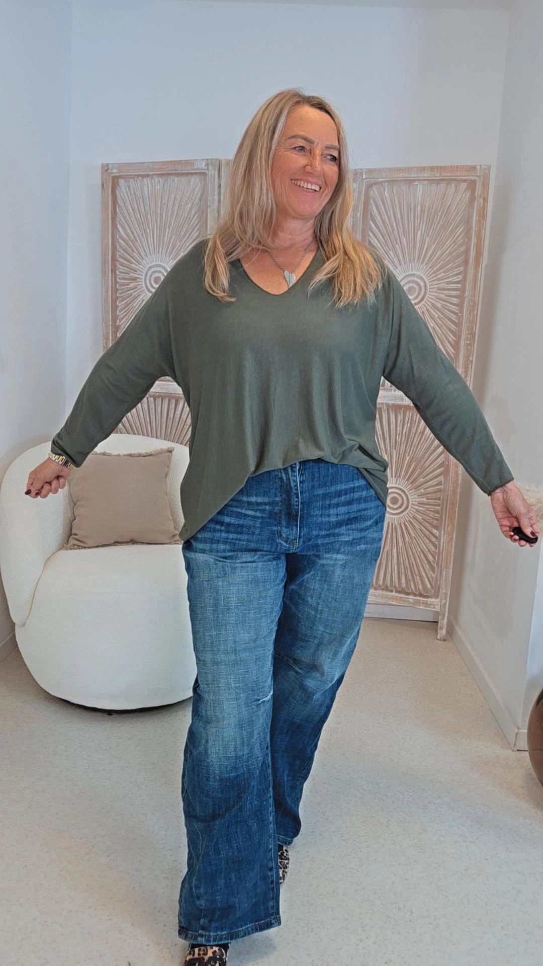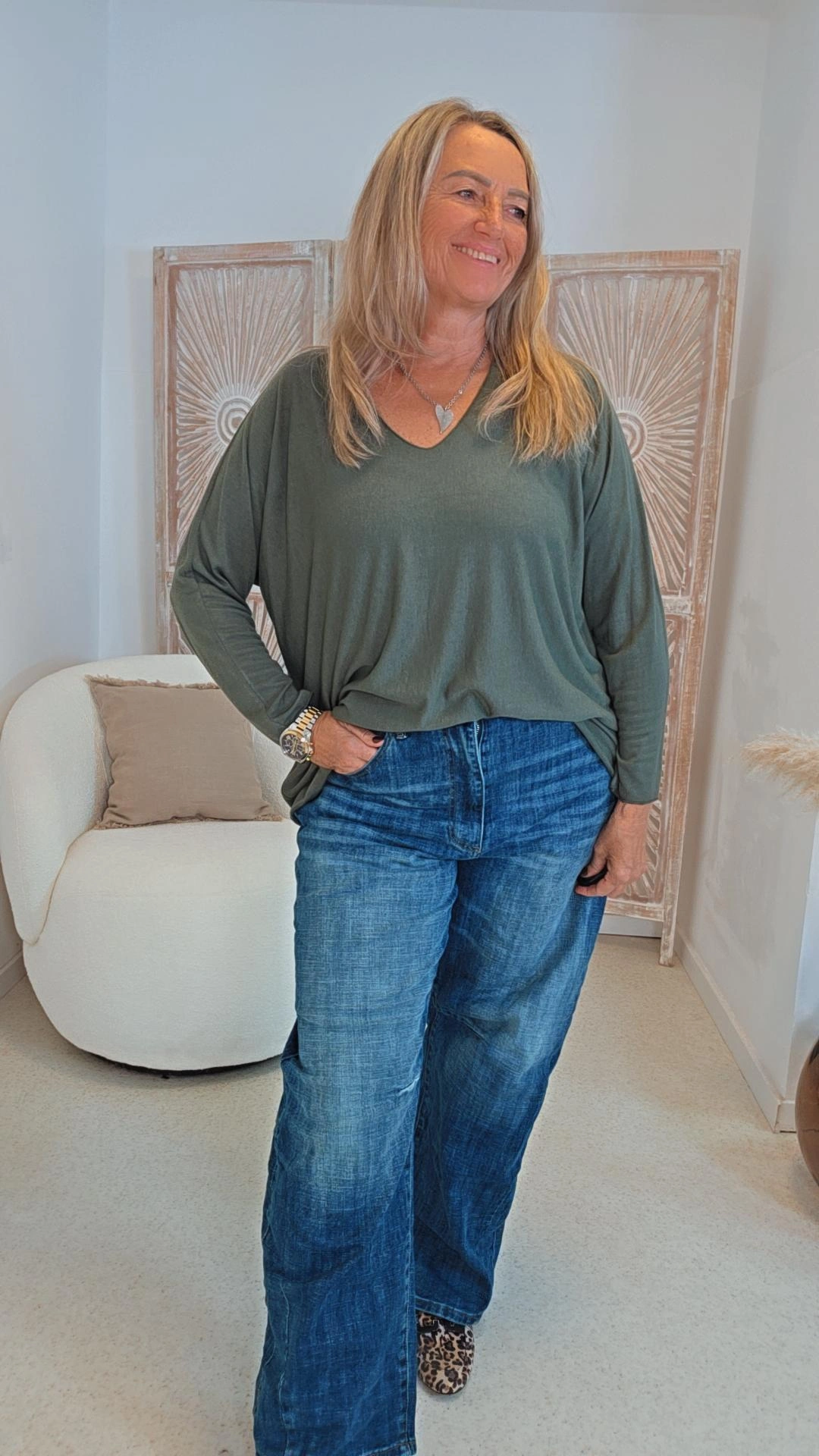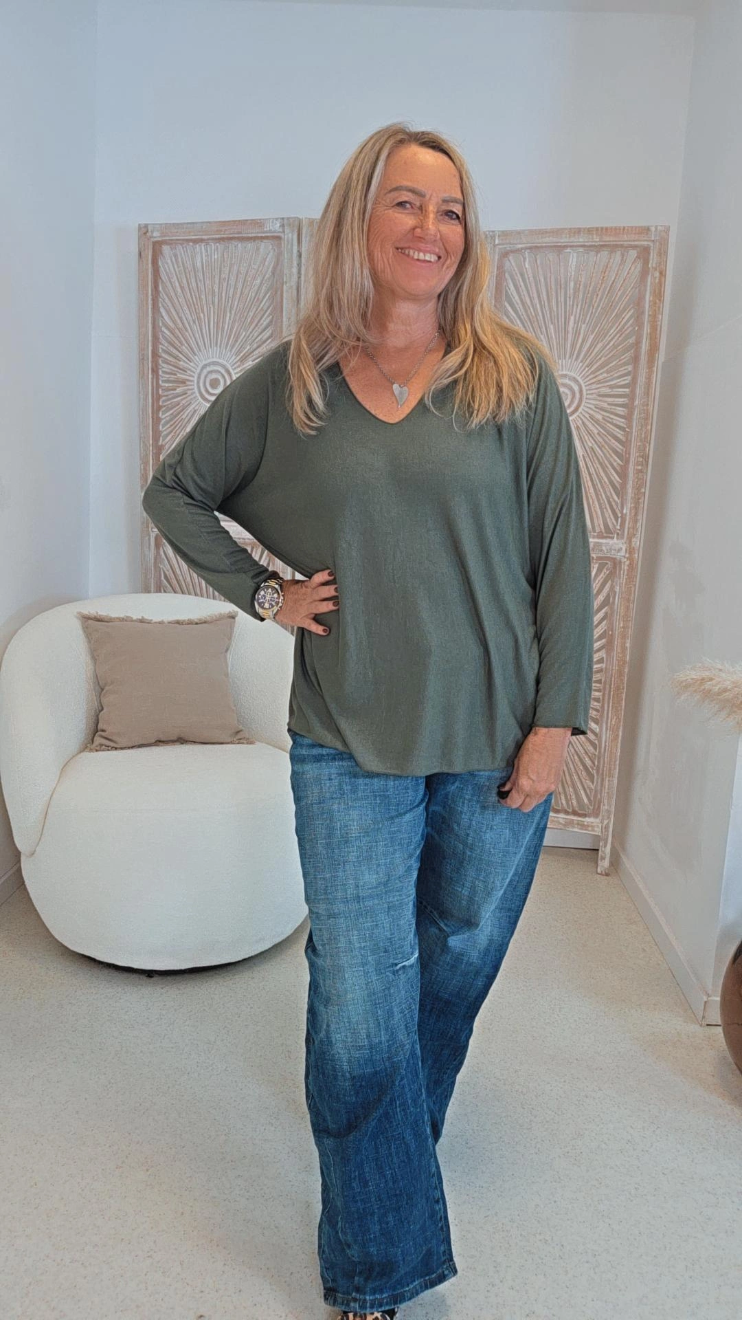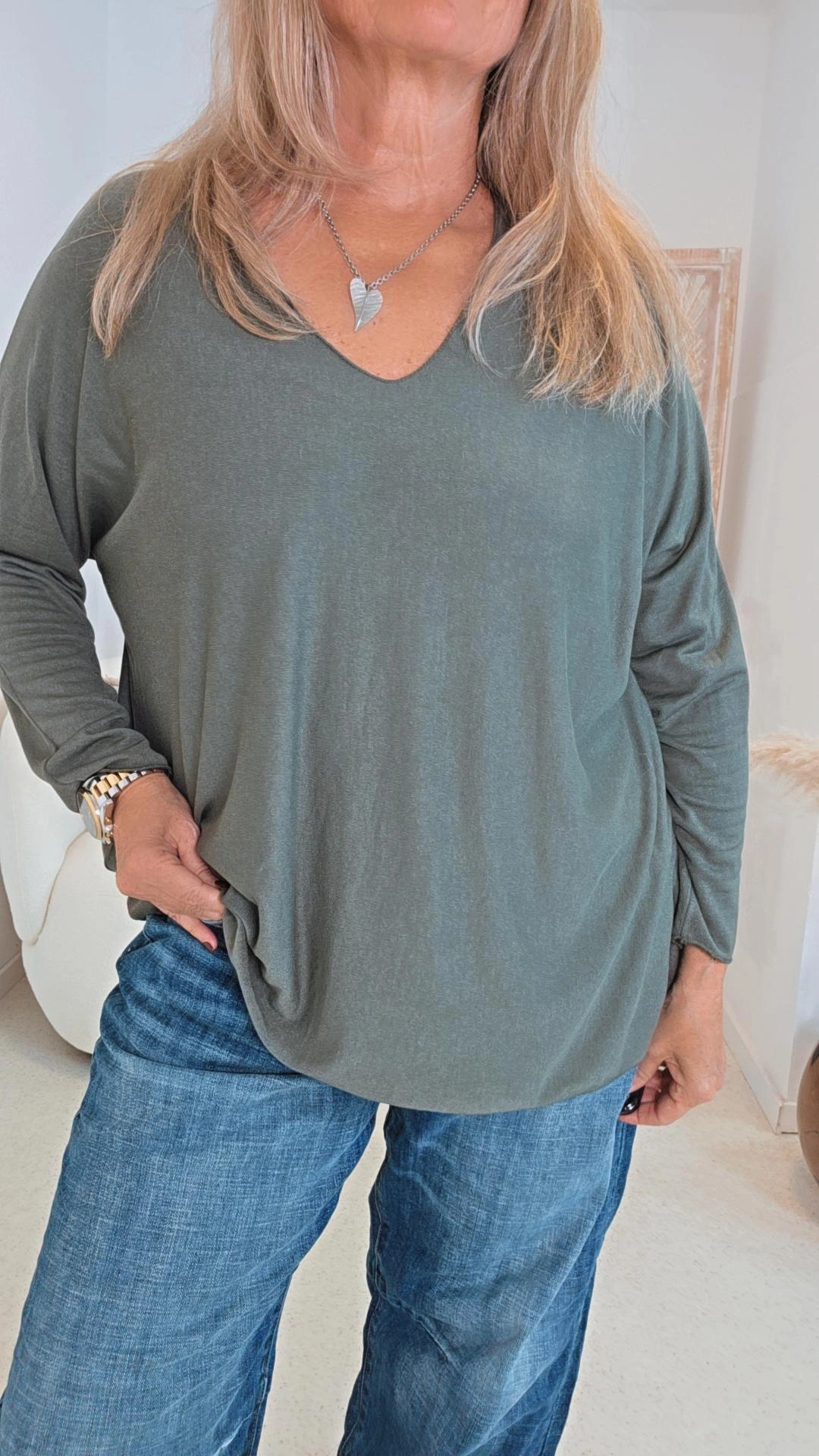 KHAKI BASIC LONGSLEEVE EDITH V-Ausschnitt.3