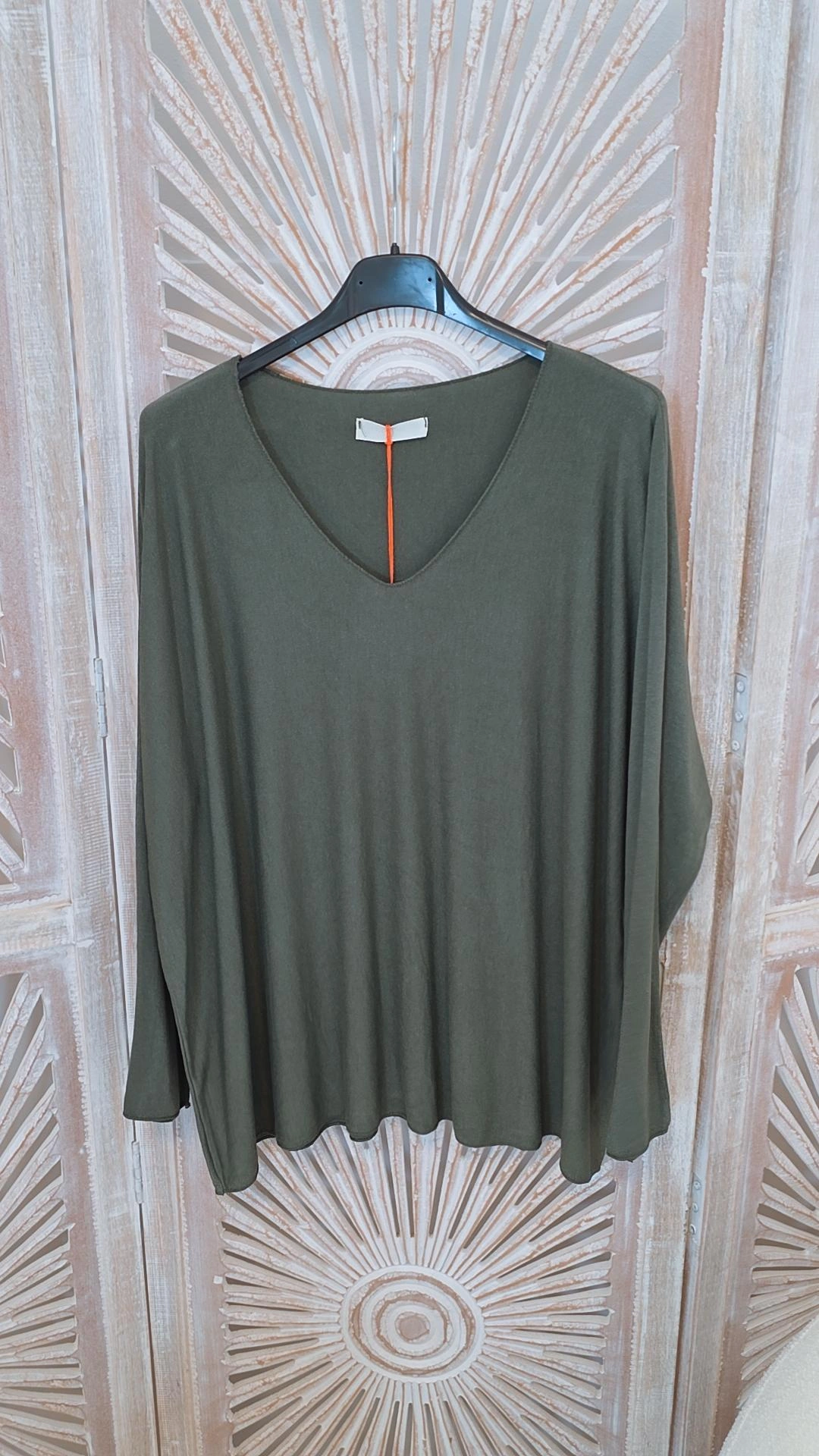 BASIC LONGSLEEVE SHIRT EDITH V-Ausschnitt 34-44 Made in Italy
