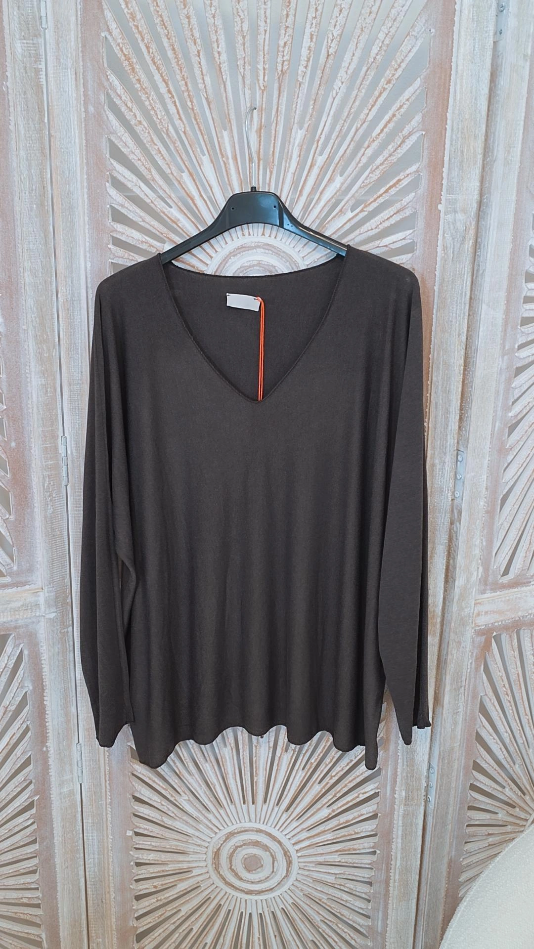 BASIC LONGSLEEVE SHIRT EDITH V-Ausschnitt Langarm 34-44 Made in Italy