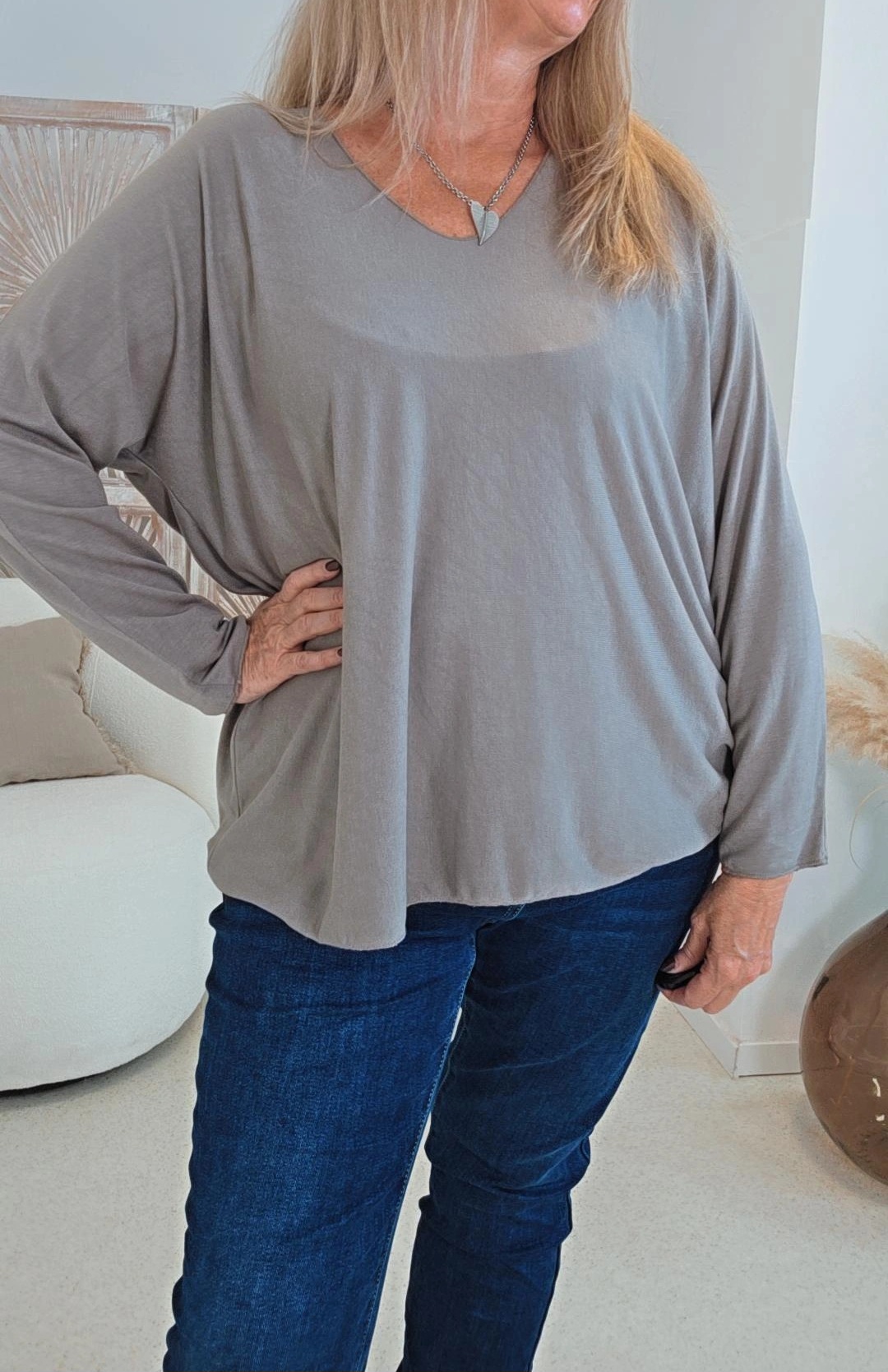 TAUPE BASIC LONGSLEEVE EDITH V-Ausschnitt.5