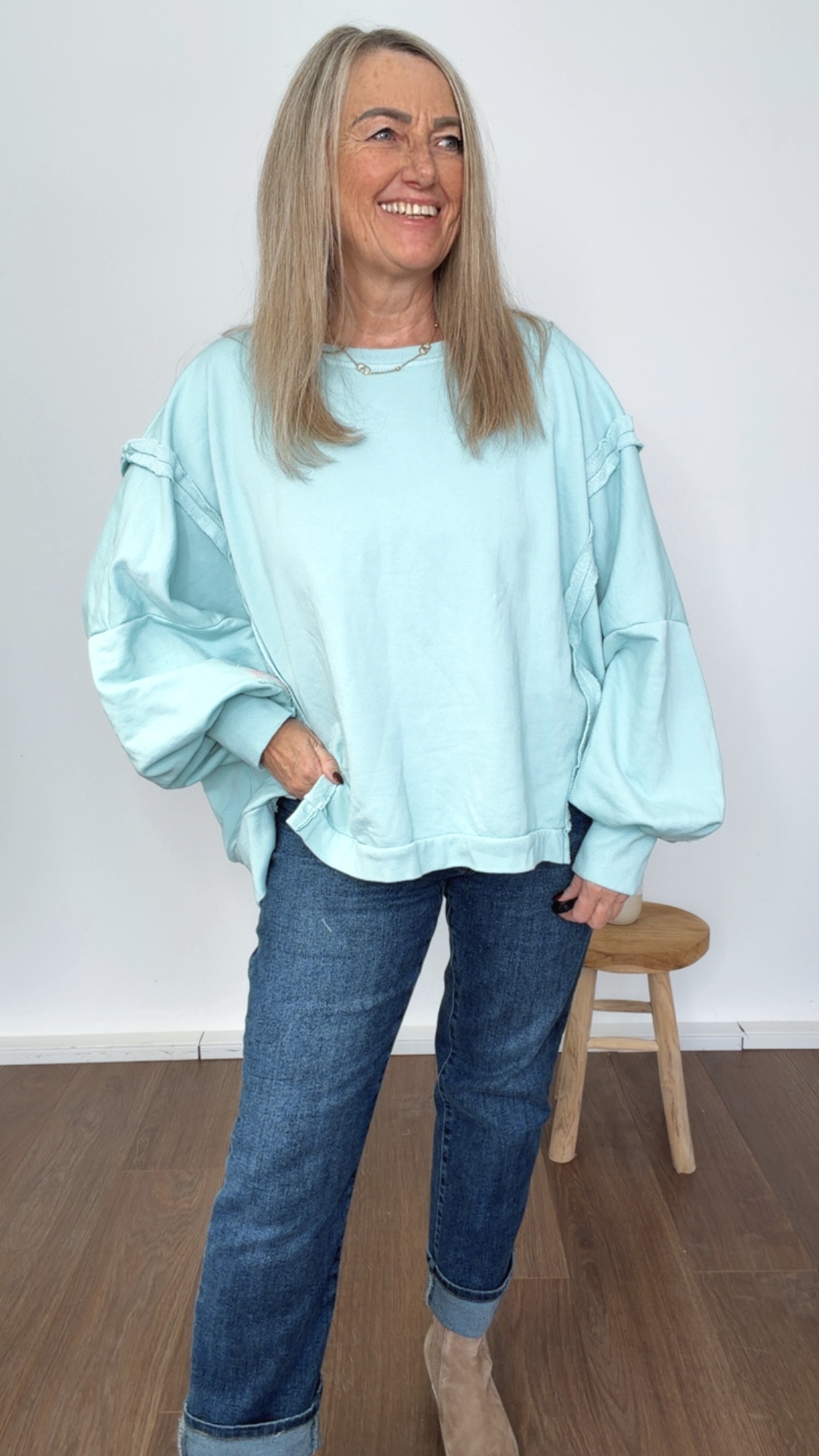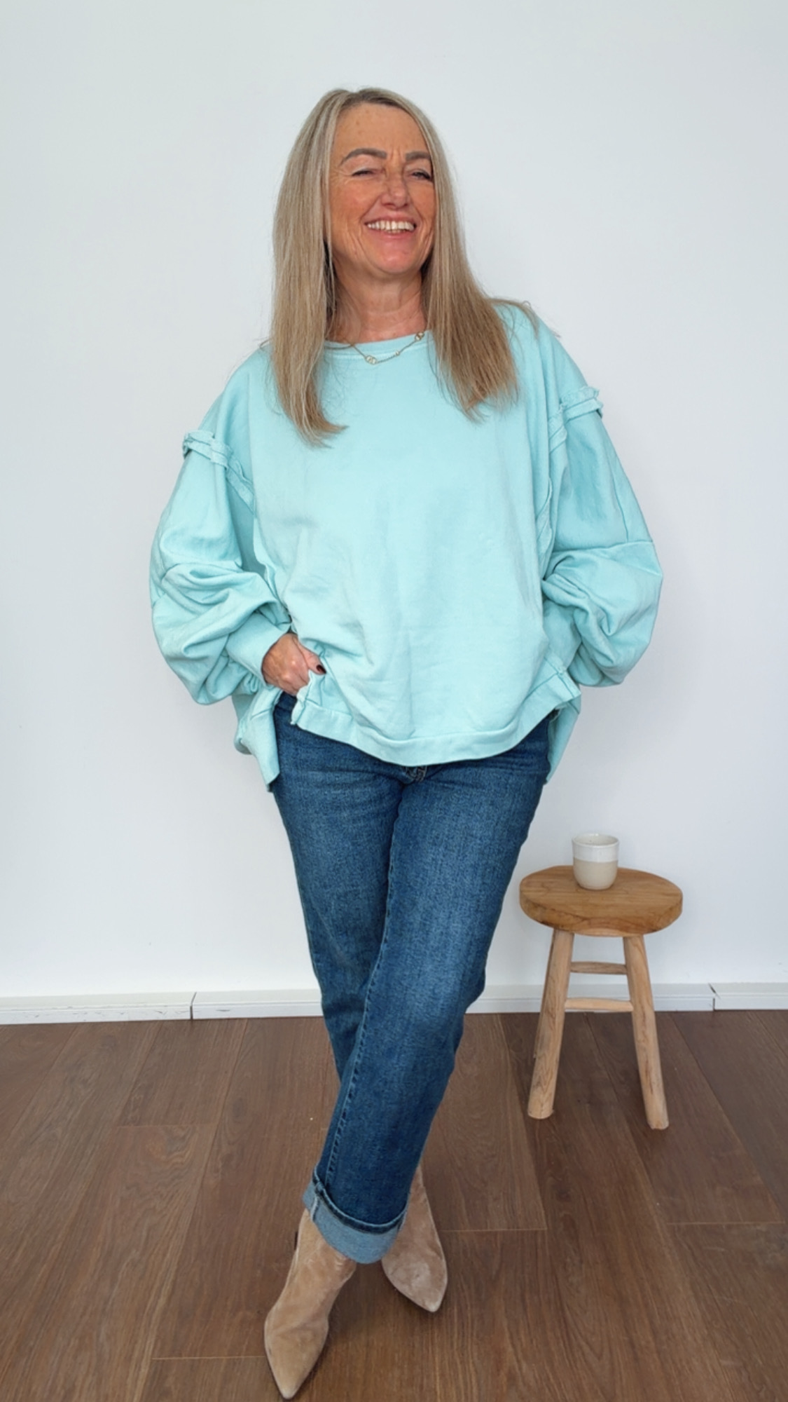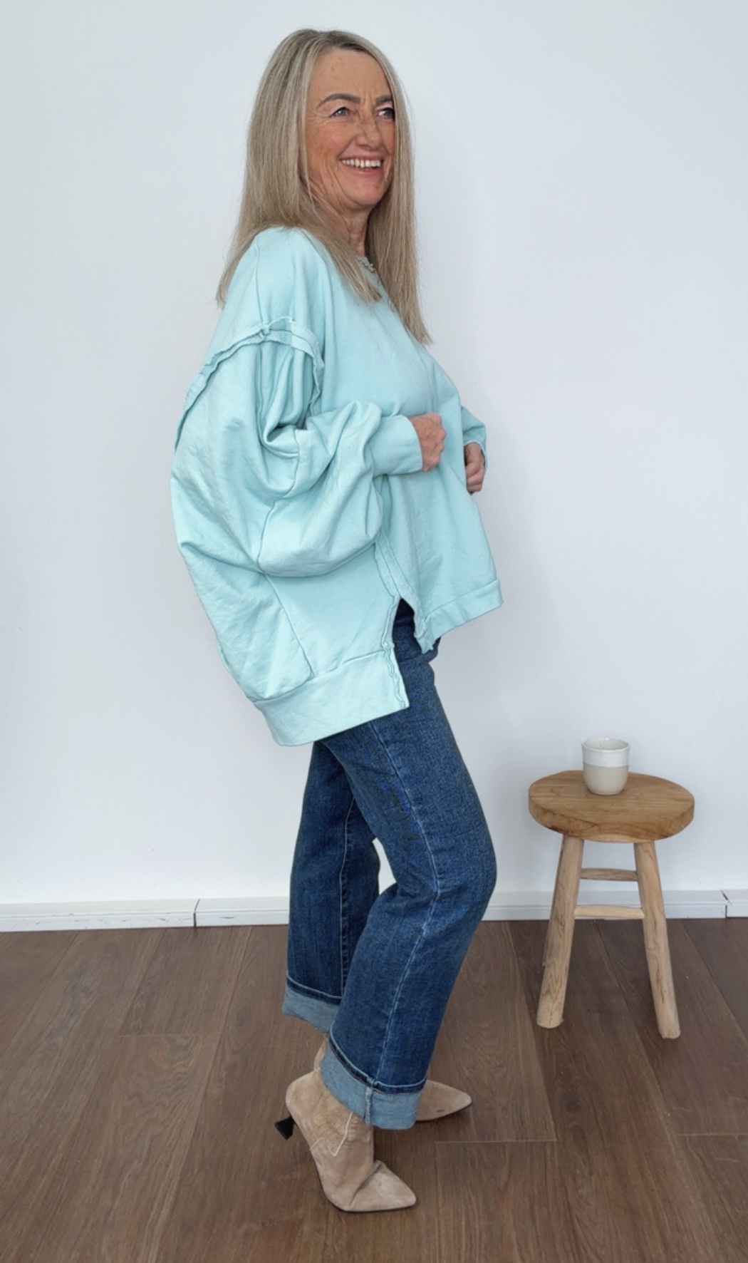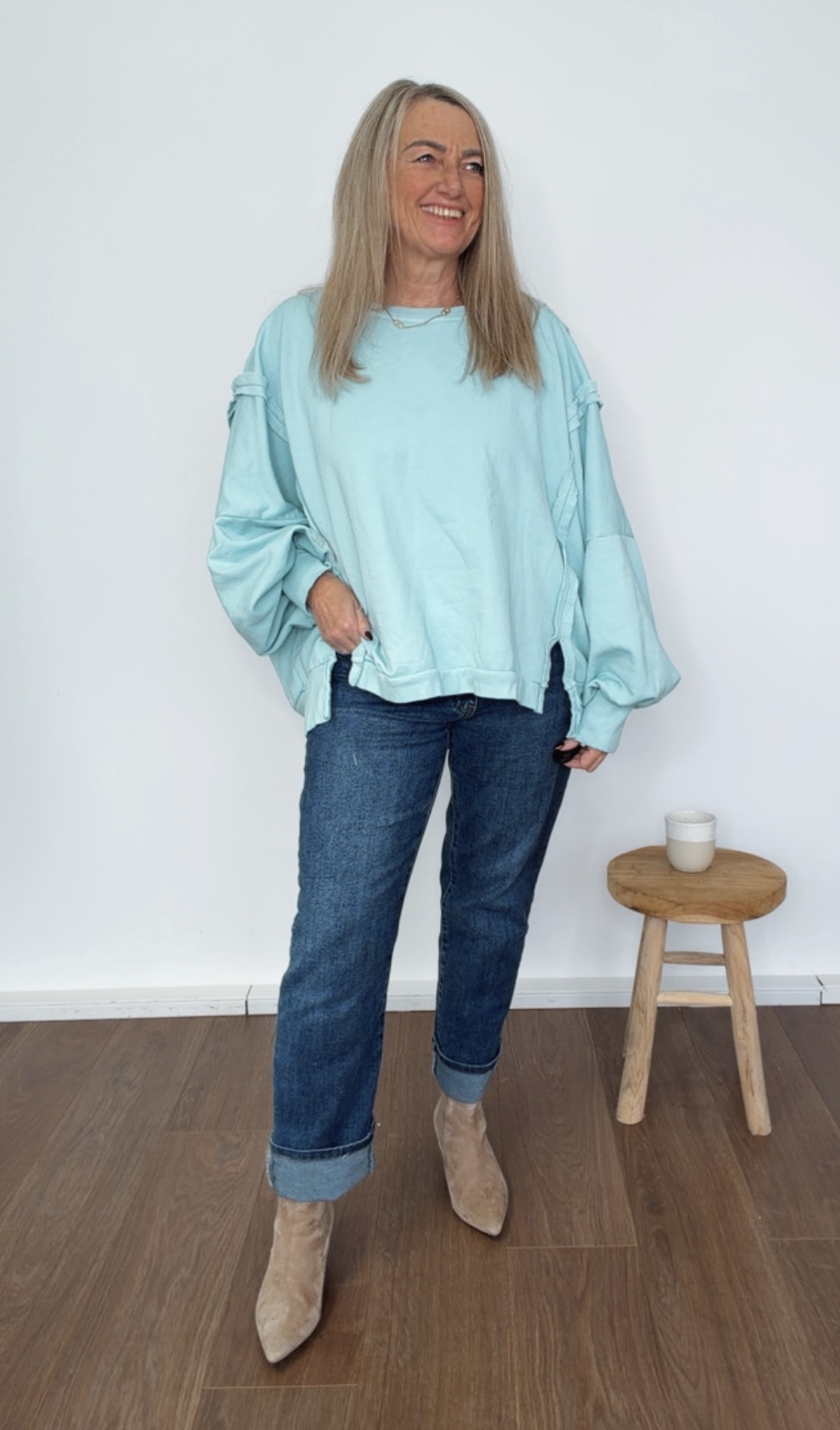 BASIC OVERSIZE SWEATER AMELIE Made in Italy 36 - 44/46 Shirt Sweatshirt mit Patch