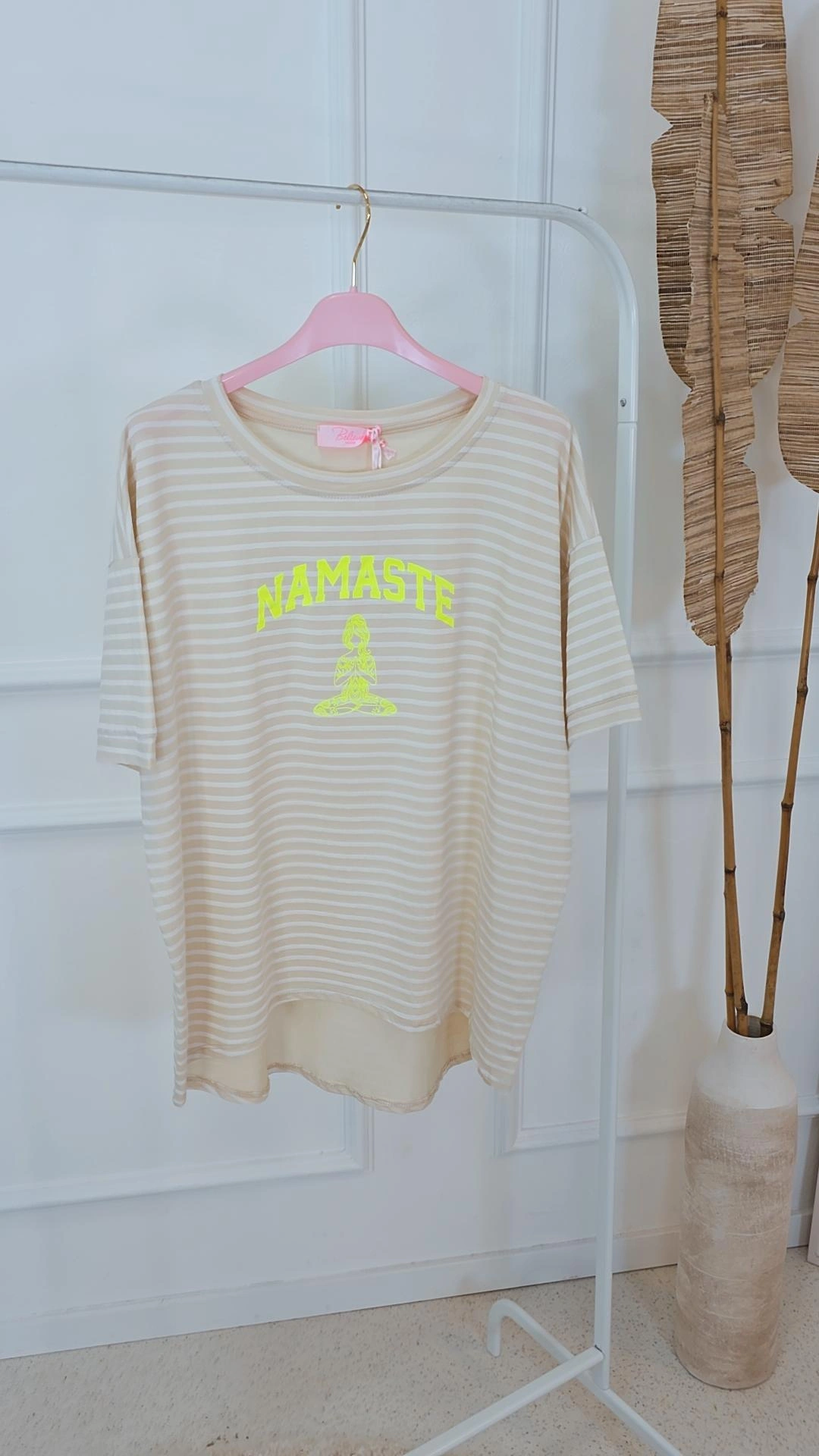BEIGE-CREME-NEONGELB SHIRT STREIFEN NAMASTE URSULA