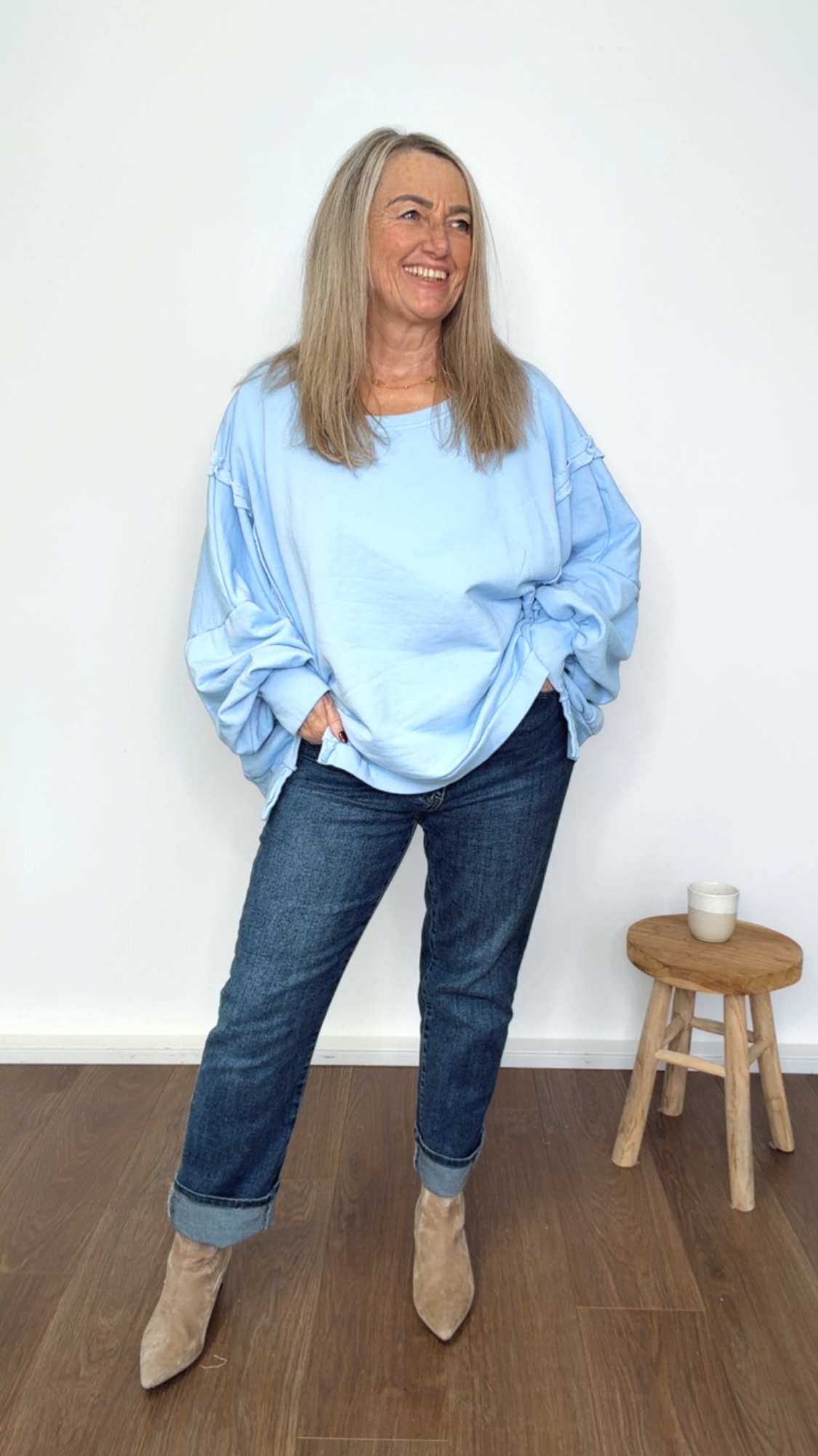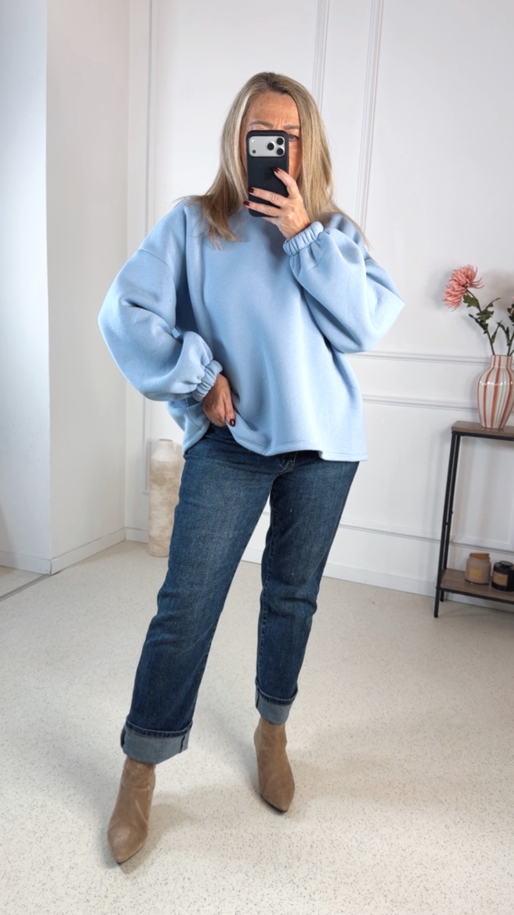 - Der Rundhalsausschnitt und die Ärmelsäume mit Gummibund geben dem Sweater eine schöne Form, während der weite Schnitt ihn zum perfekten Styling-Partner für Jeans, Leggings oder Röcke macht.