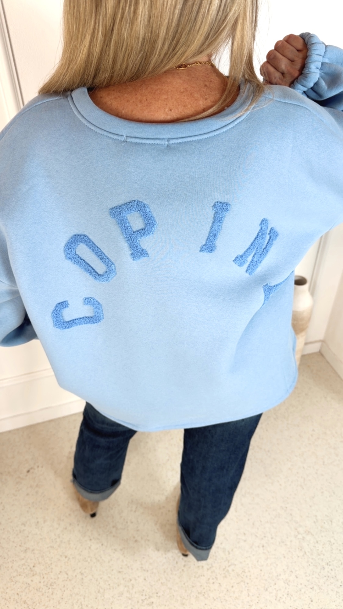 - Highlight ist der bunte „COPINE“-Schriftzug auf dem Rücken, der sofort gute Laune verbreitet.
