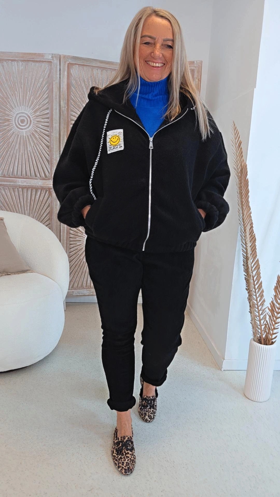 BLACK SCHNAPPER KAPUZENJACKE MICHAELA mit Reißverschluss & Smile Patch 34-44 Made in Italy