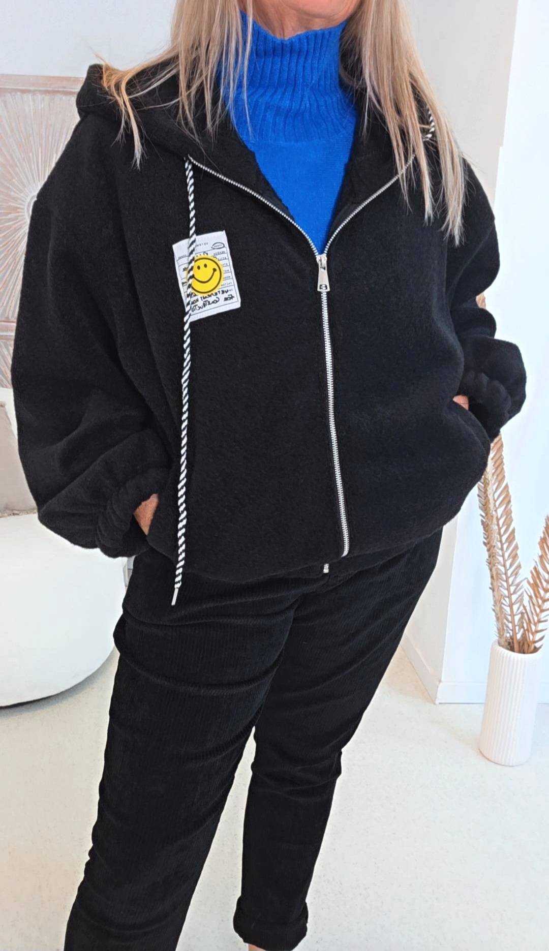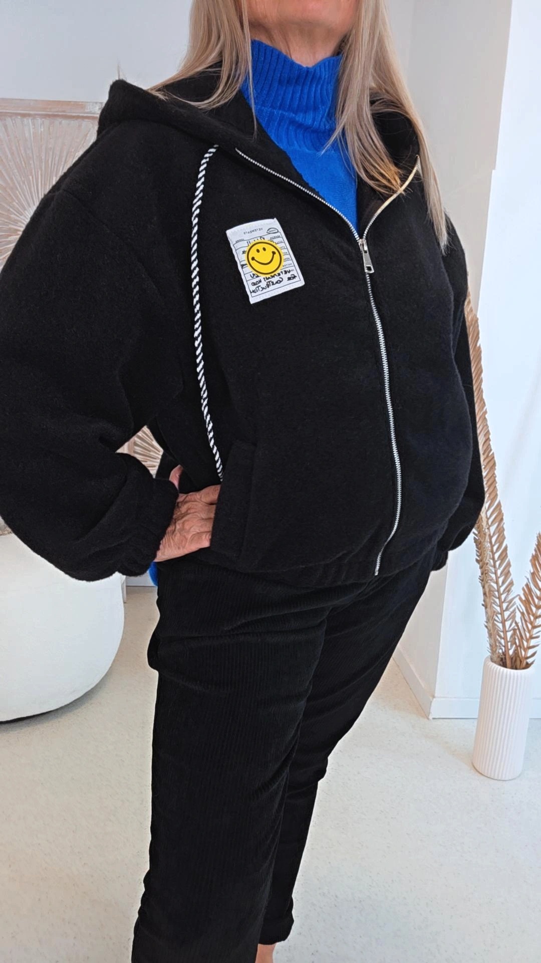 SCHWARZ KAPUZENJACKE MICHAELA mit Reißverschluss & Smile Patch.2