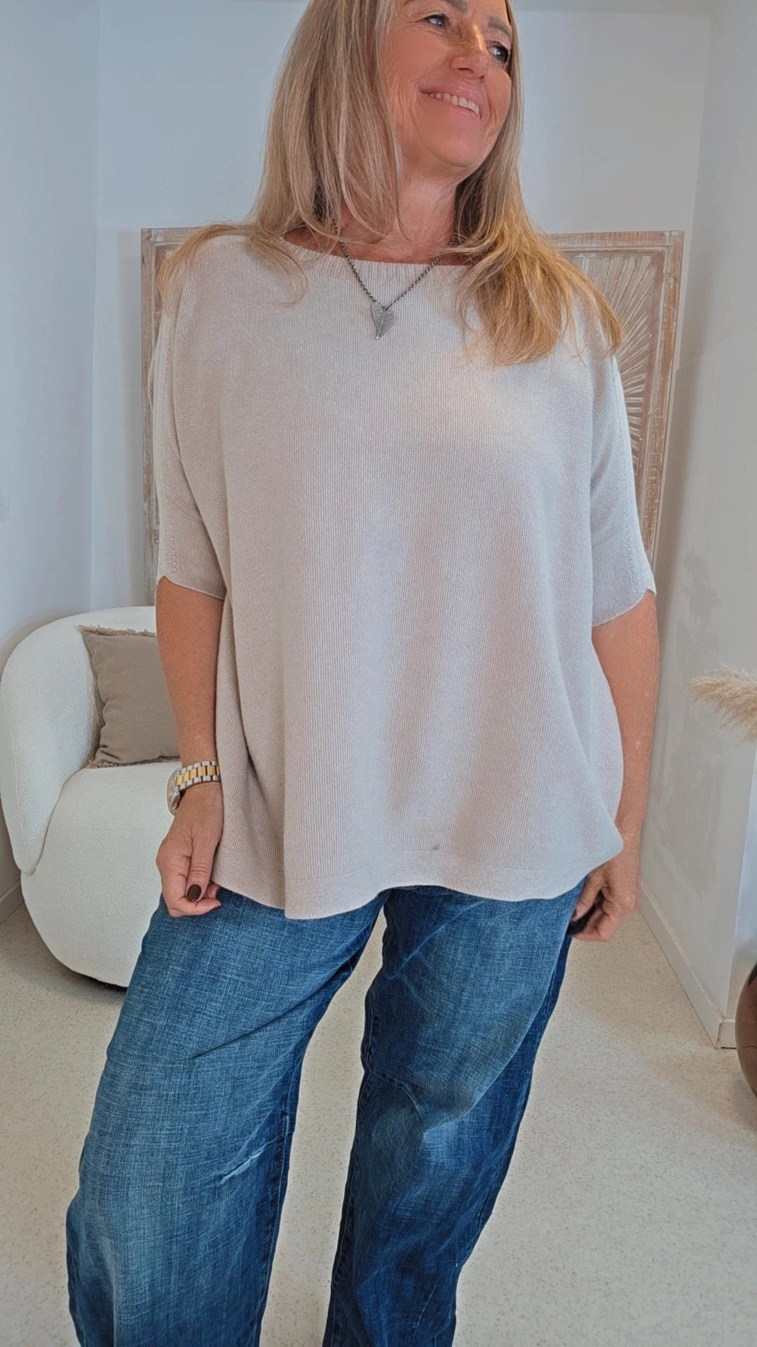 BEIGE VISKOSE-STRICKSHIRT LEANDRA HALBARM .3