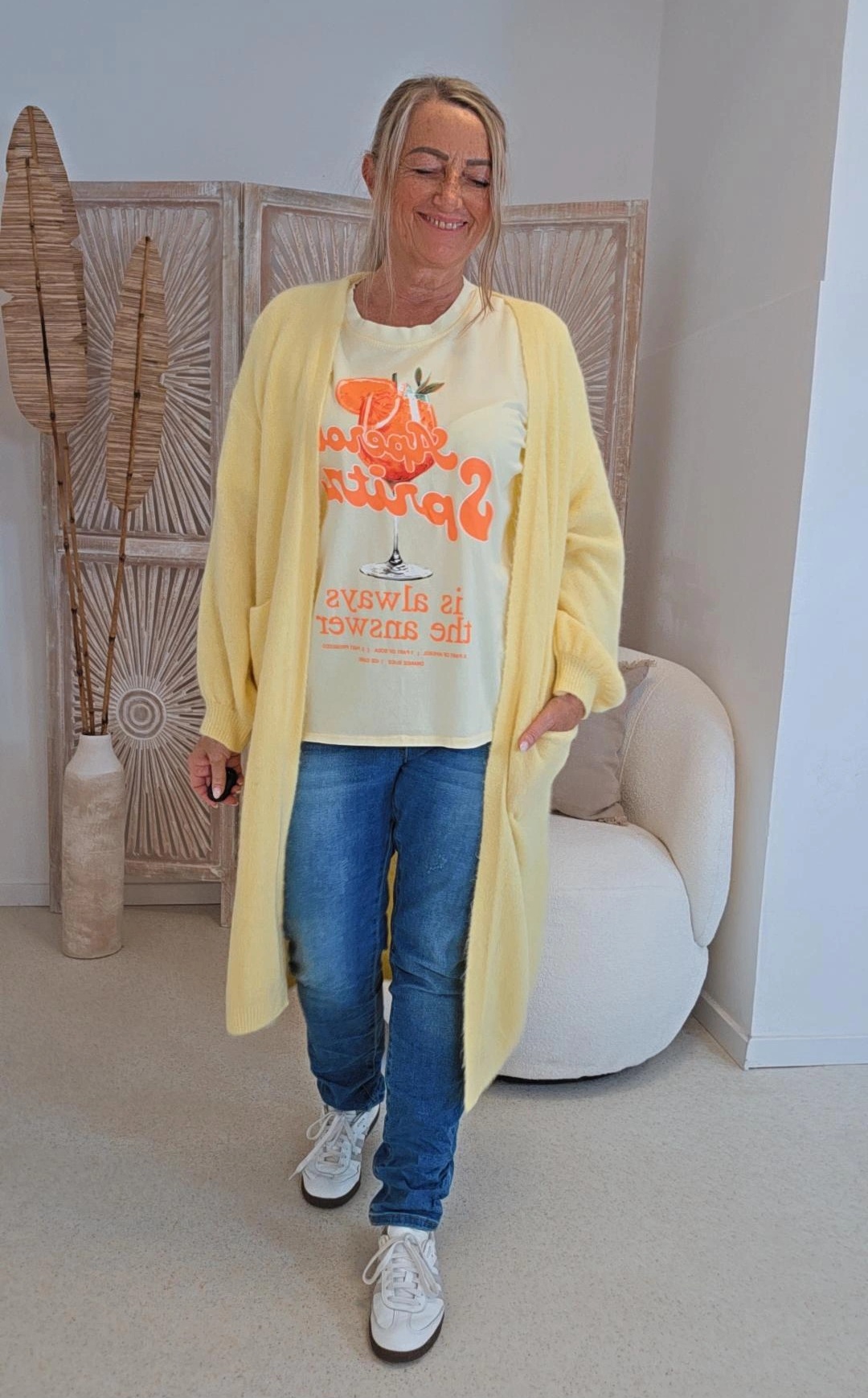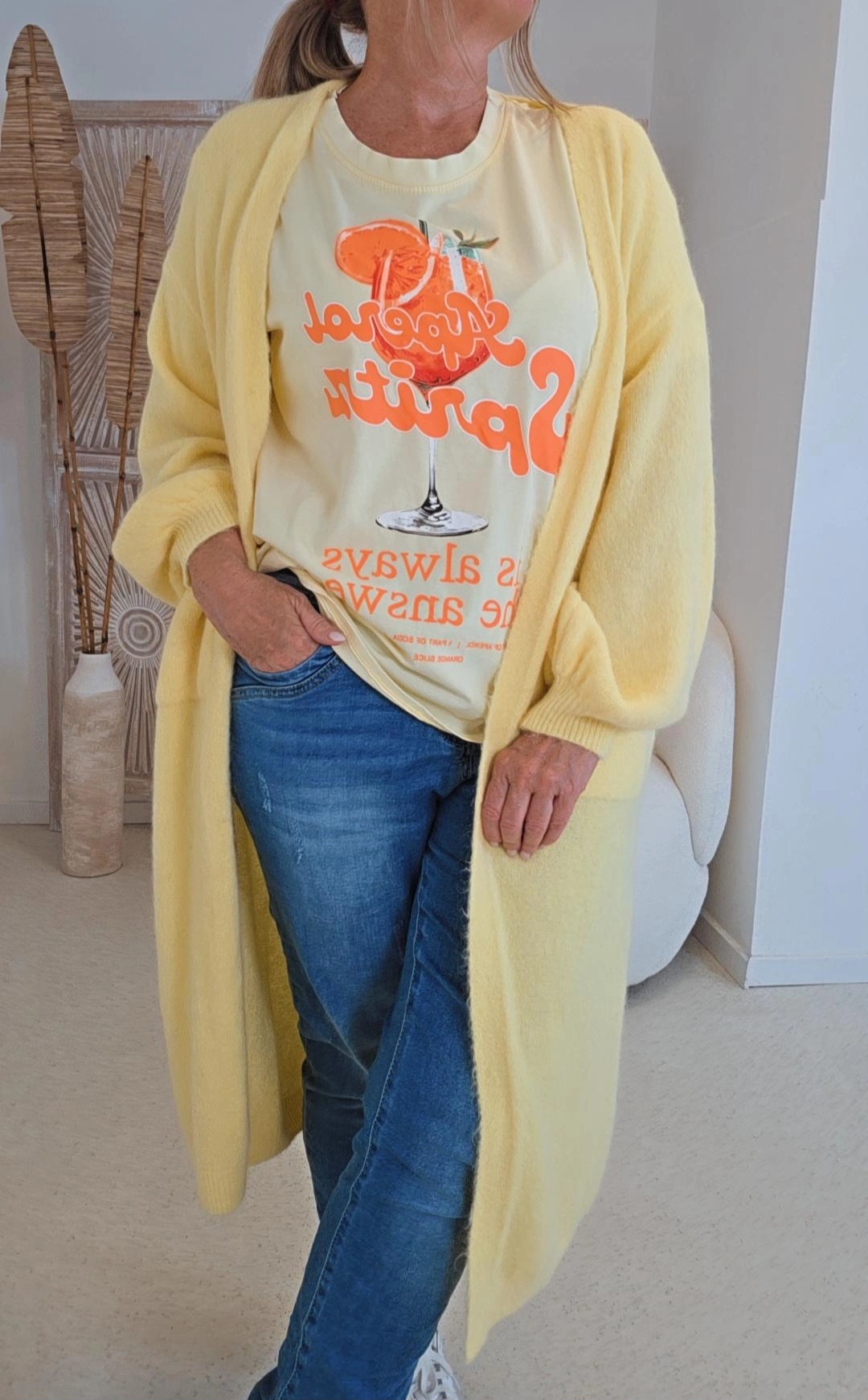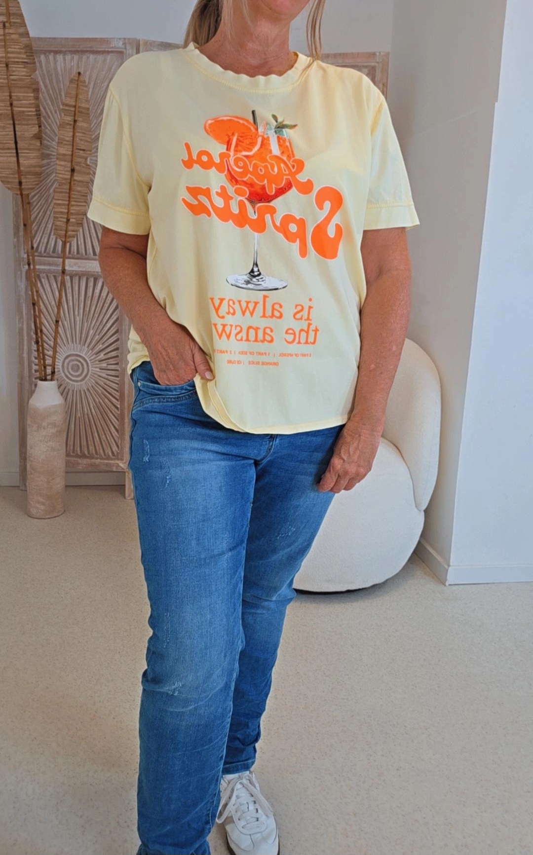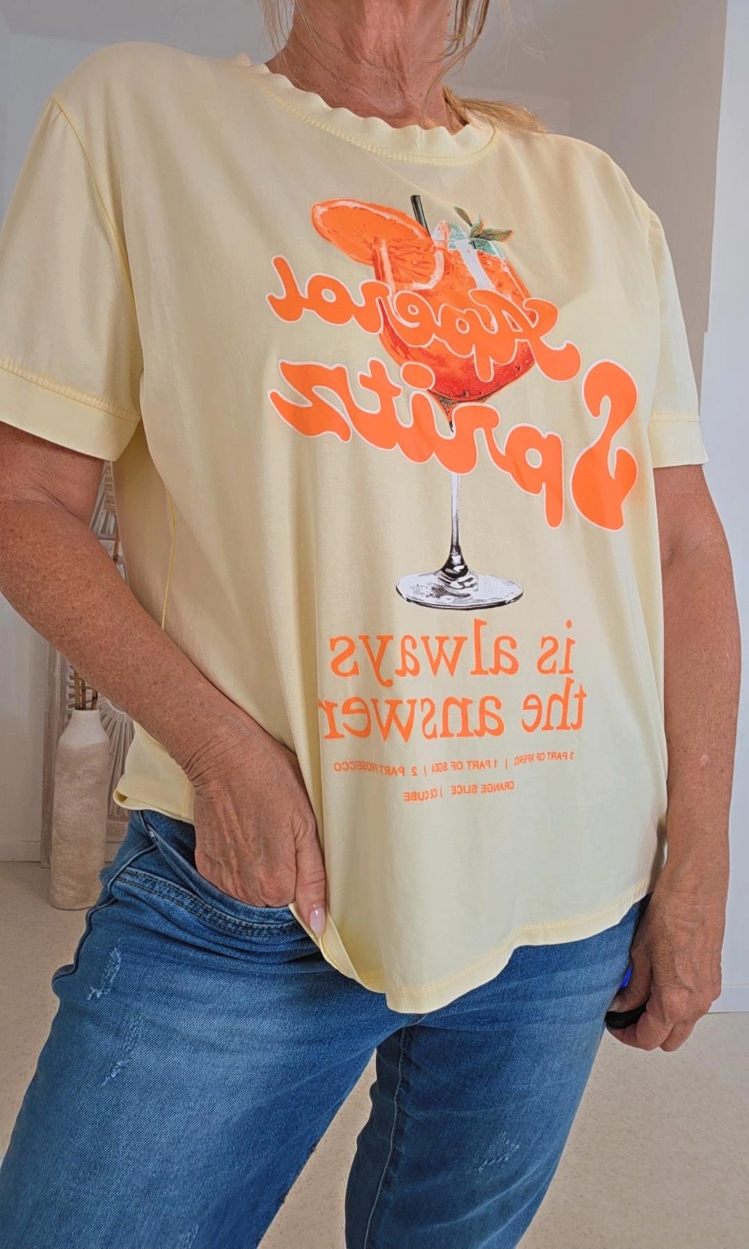 GELB STATEMENT T-SHIRT ORANGINA COCKTAILAUFDRUCK 34-42.4