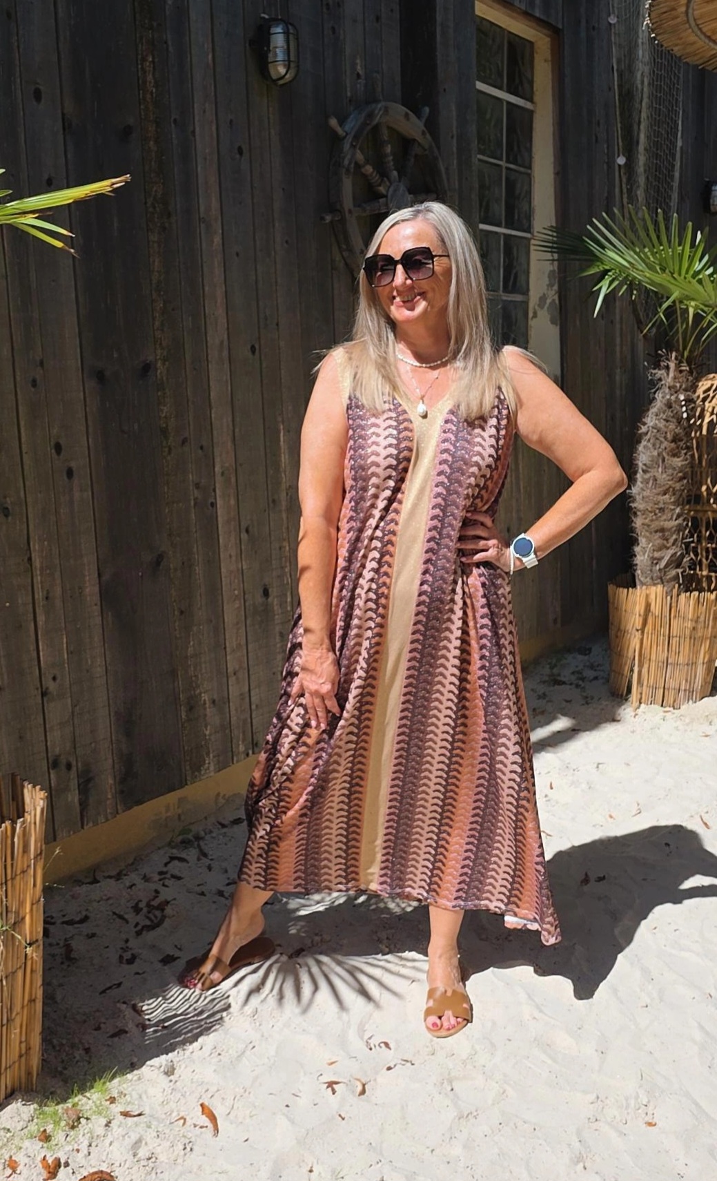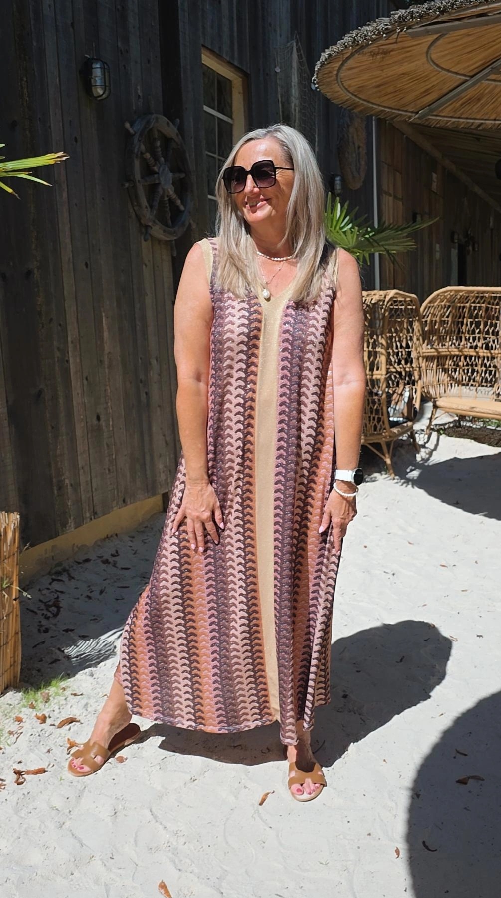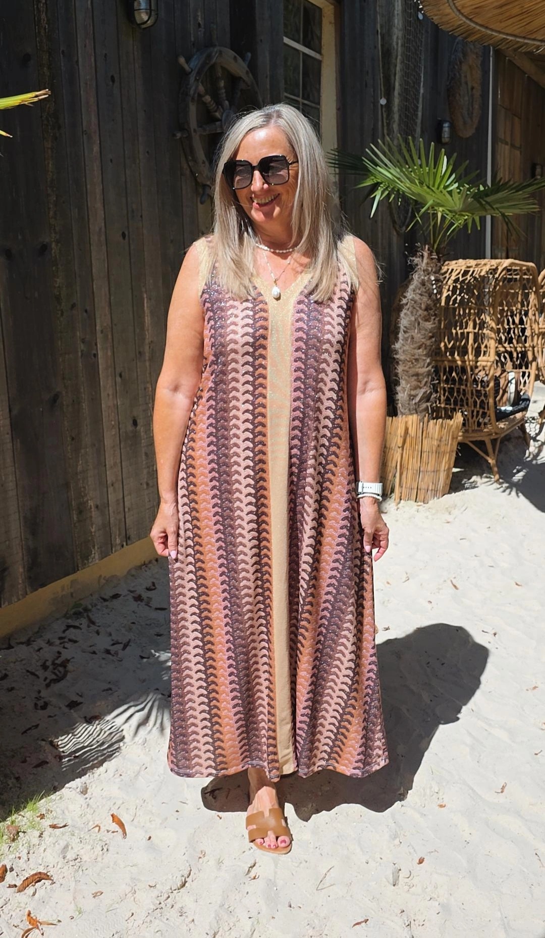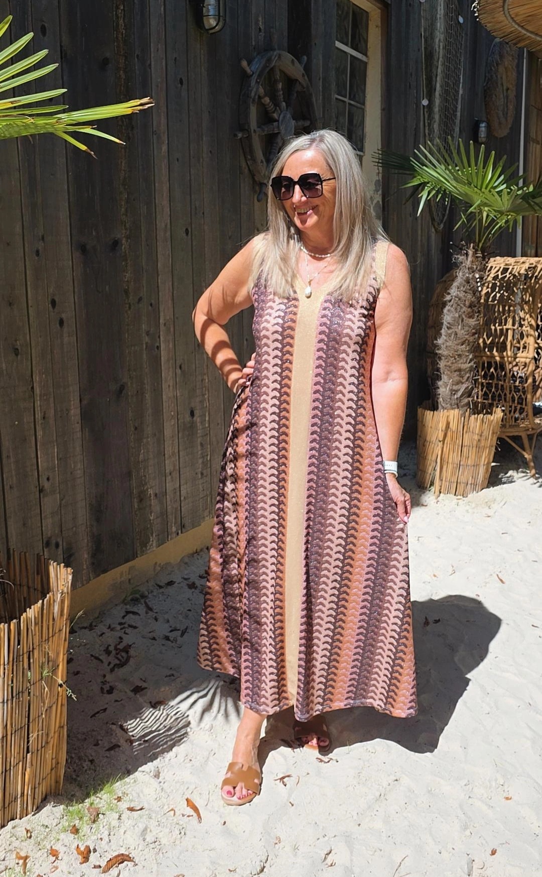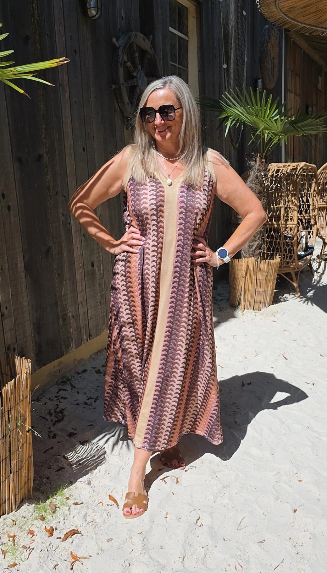 HELLBRAUN STRETCH-GOLDSHINY KLEID NOELANI.1
