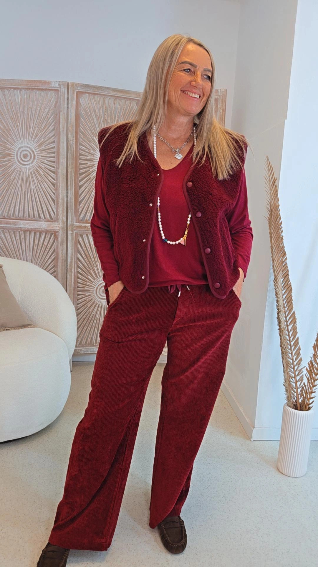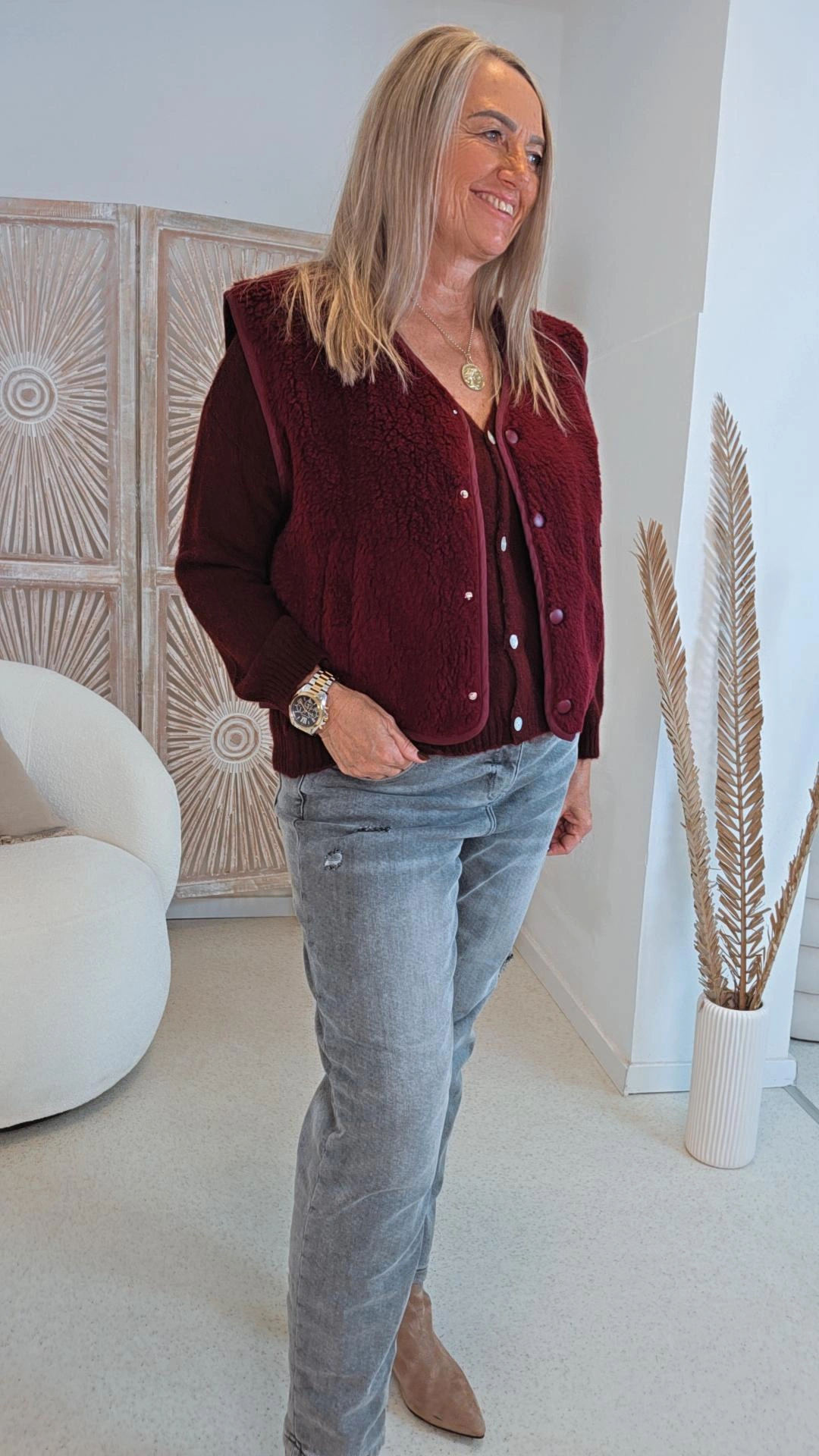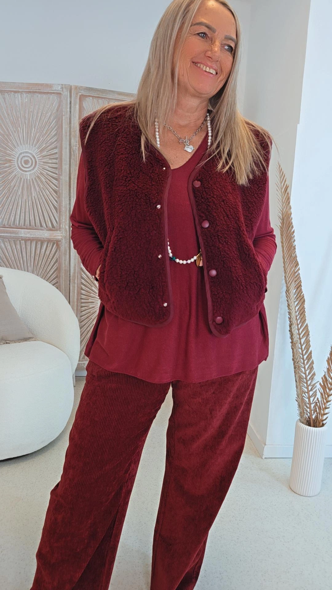 BURGUNDY TEDDY-WESTE BOBBY UNIFARBEN mit Druckknöpfen.8