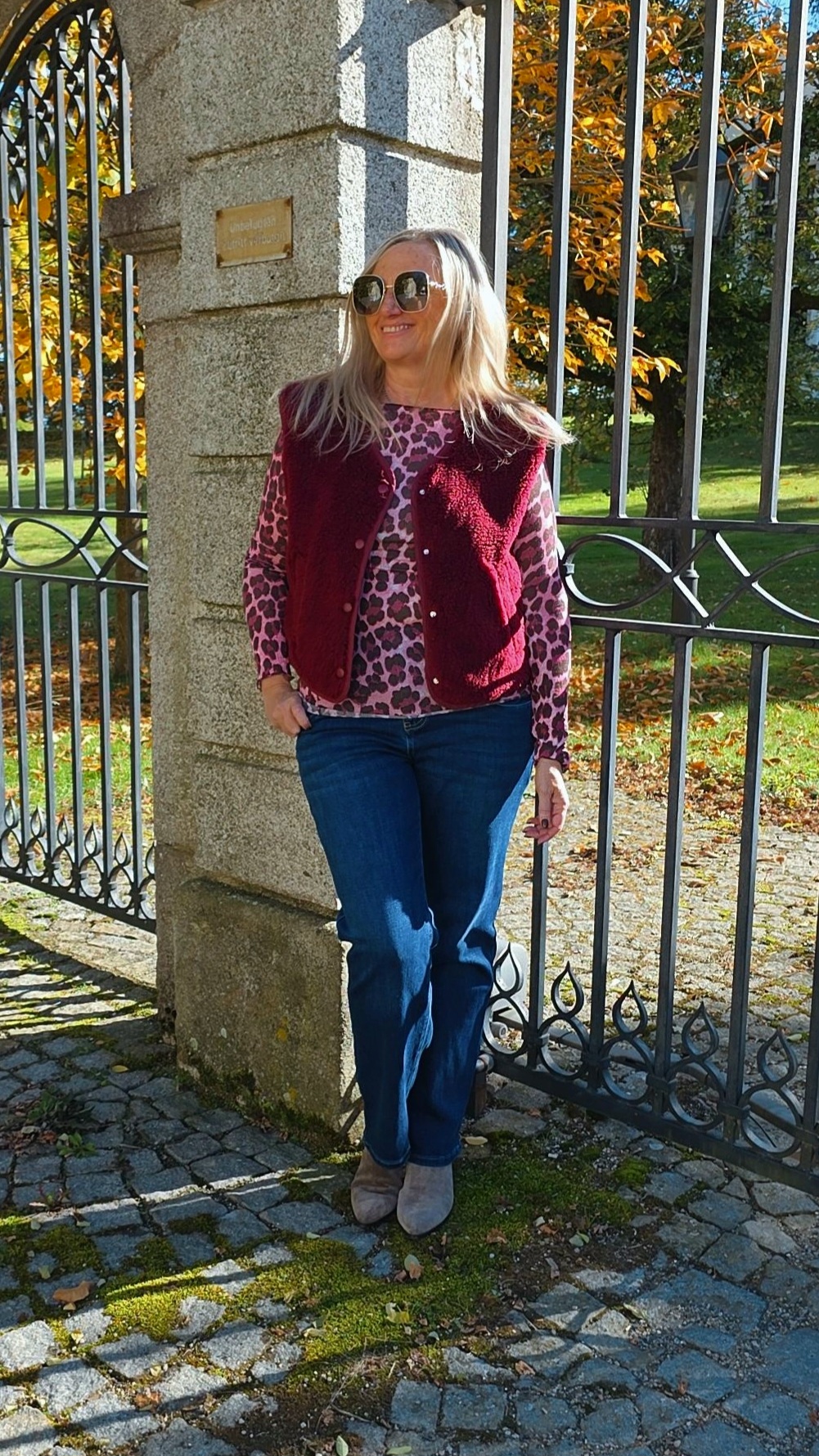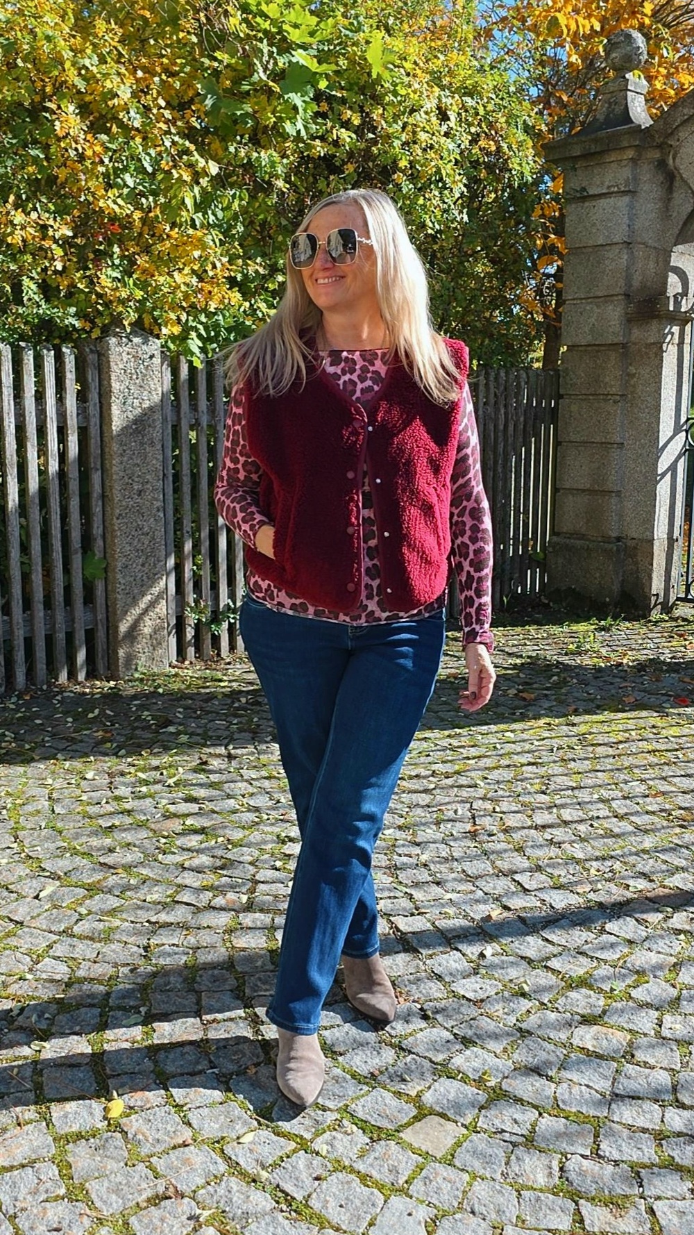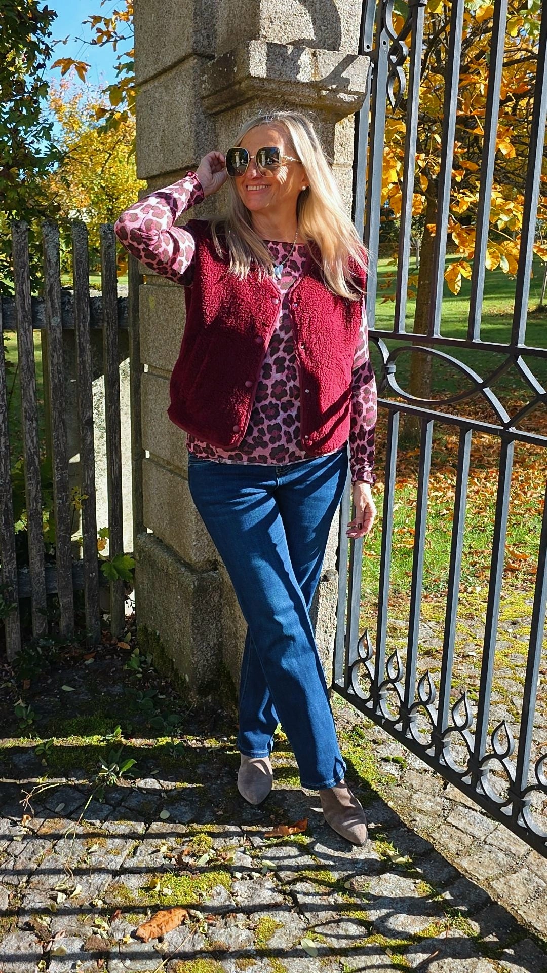 BURGUNDY TEDDY-WESTE BOBBY UNIFARBEN mit Druckknöpfen.8