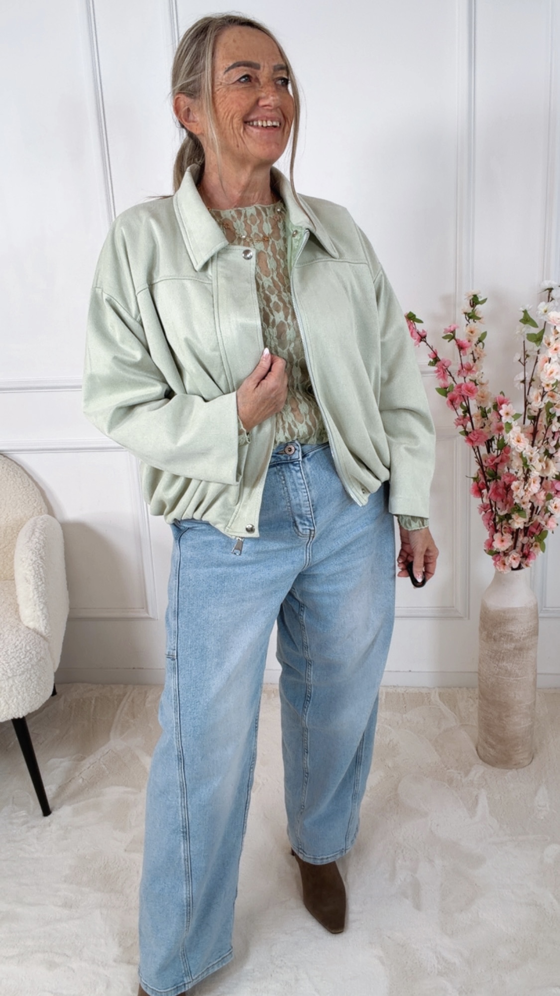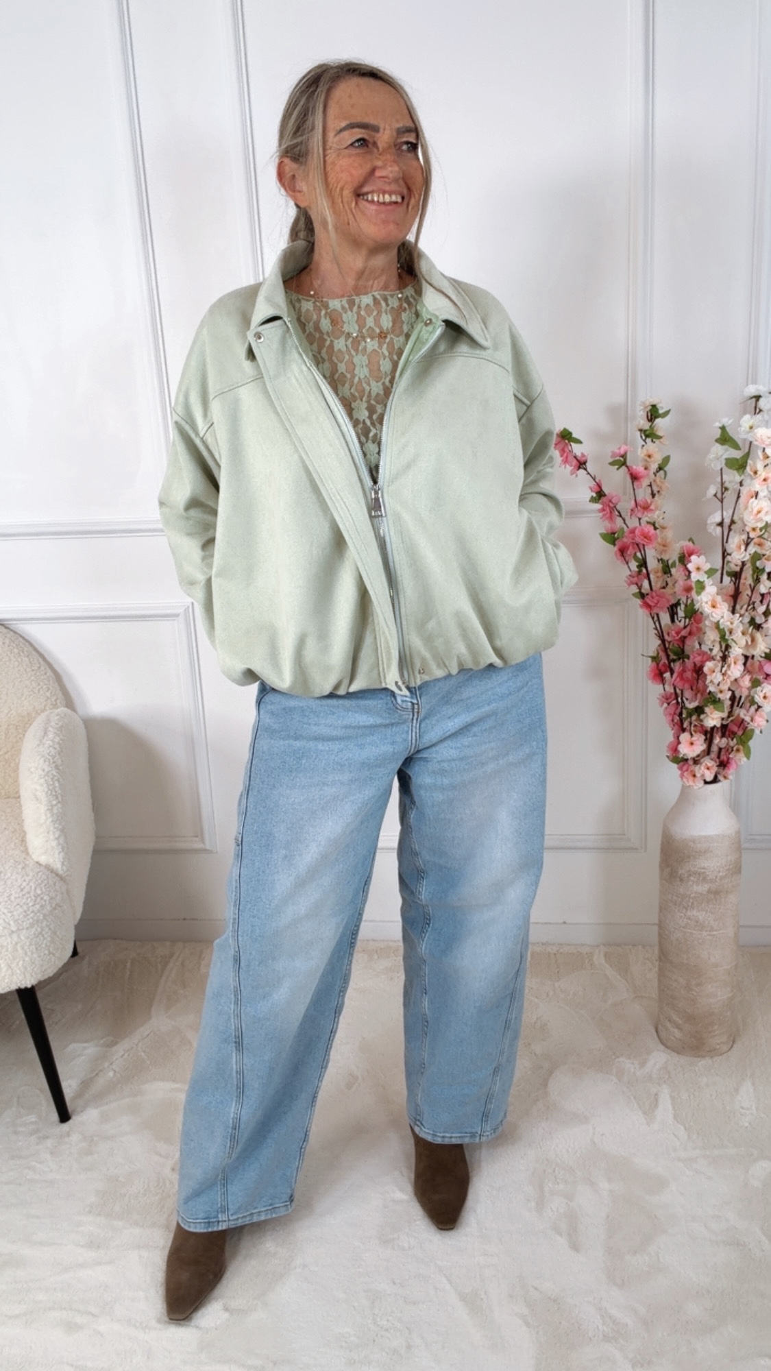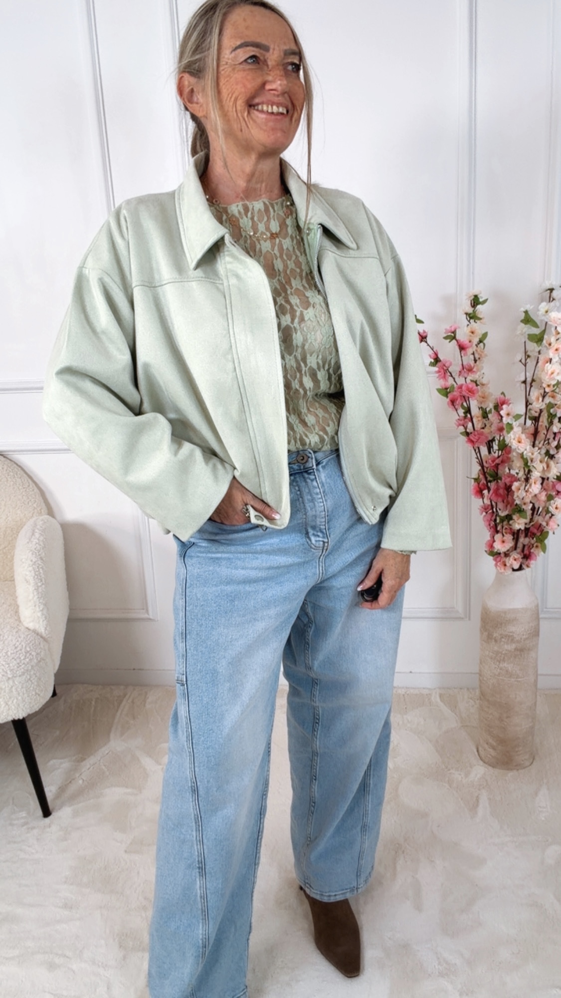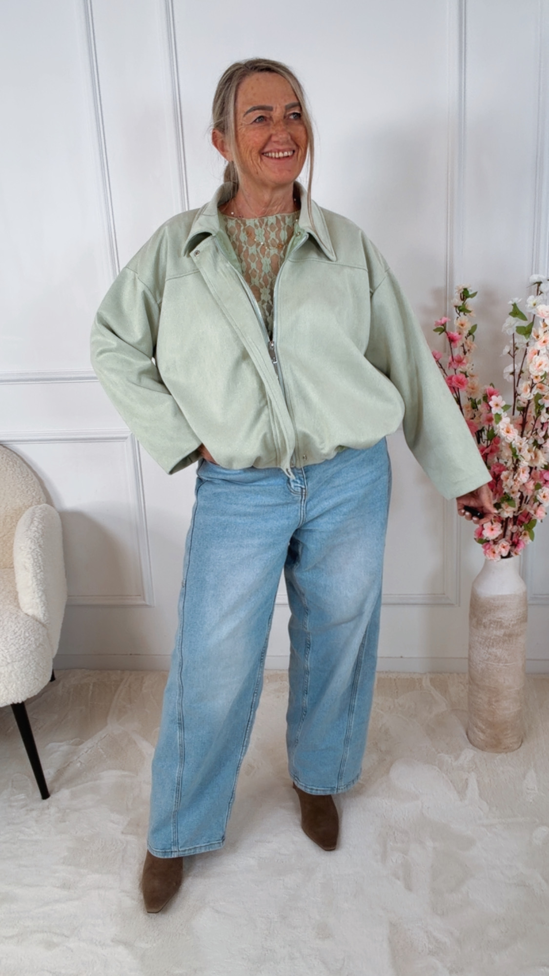 Produktinformationen "✨ Blouson „Mara“ – Soft Suede Chic | Made in Italy 34 - 44 Veloursleder- bzw. Alcantaraoptik"