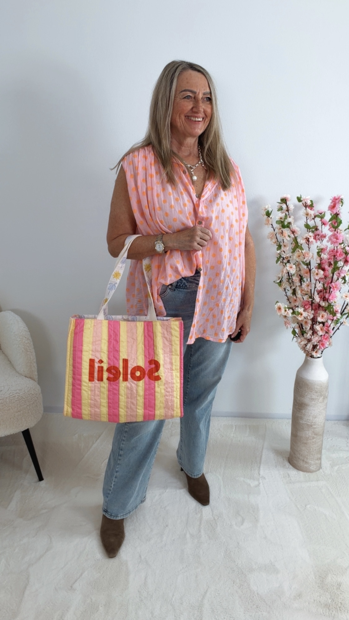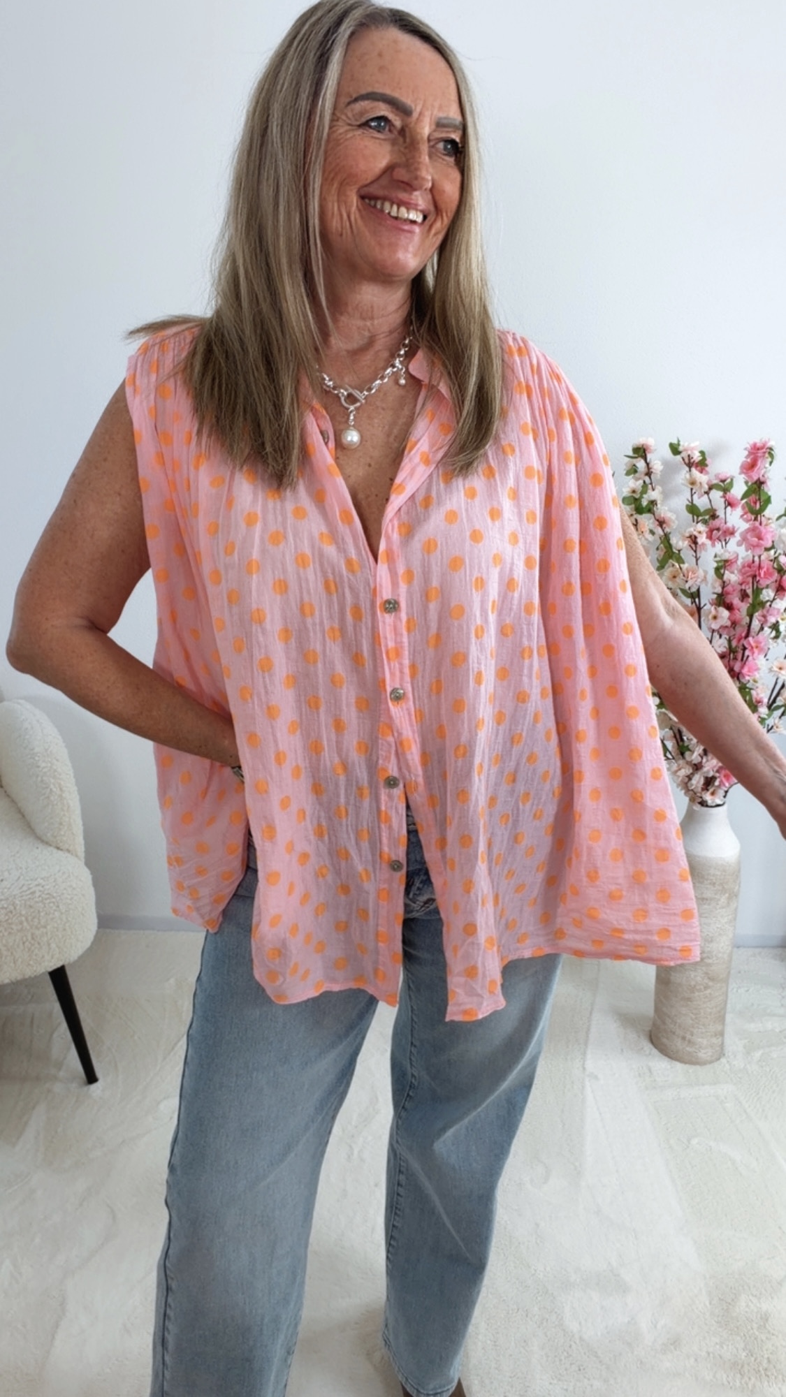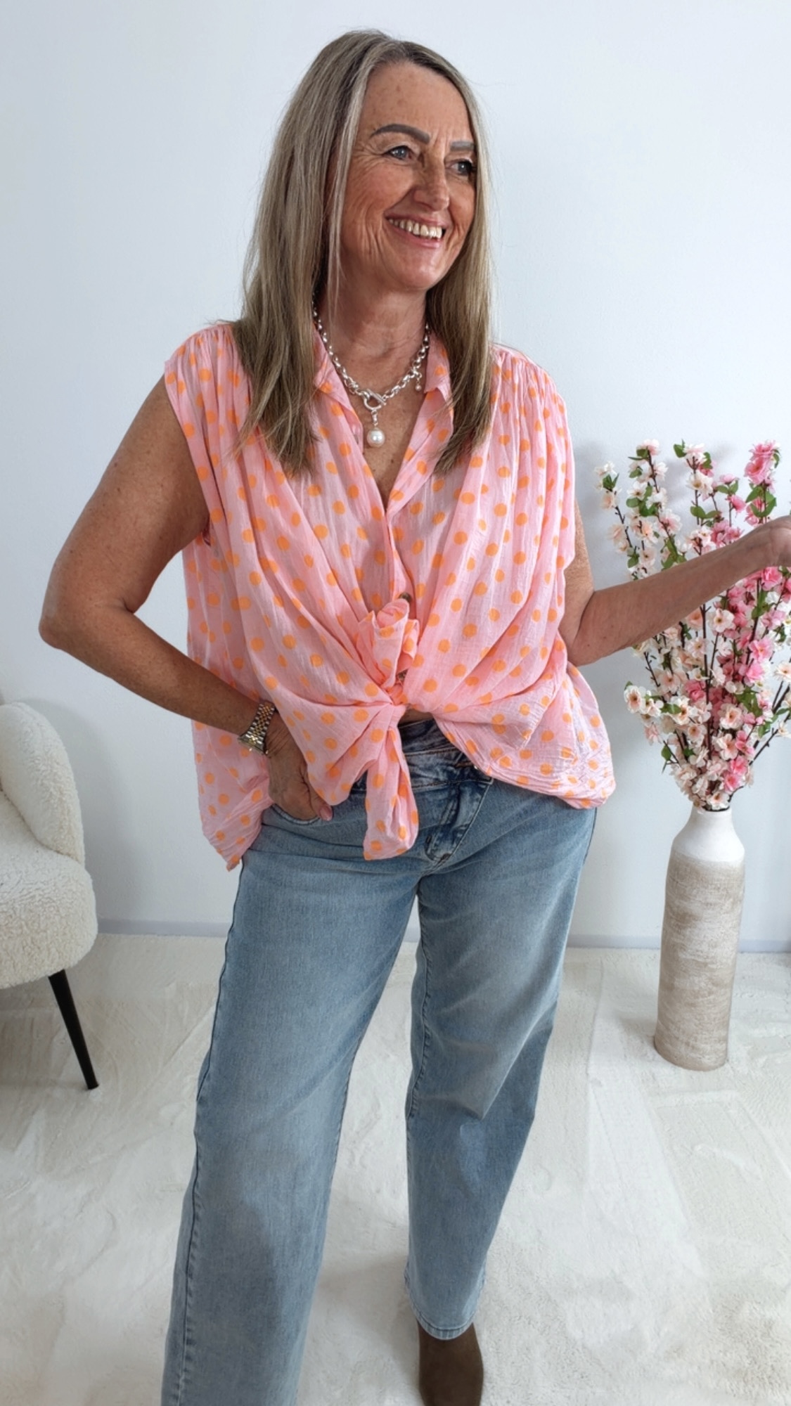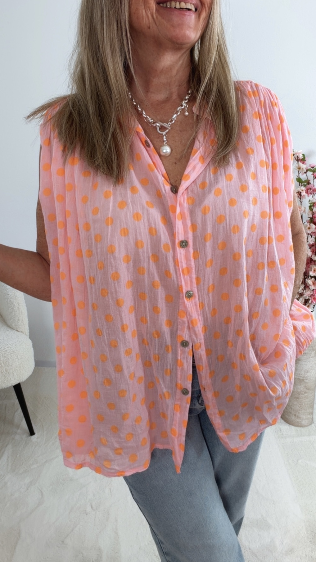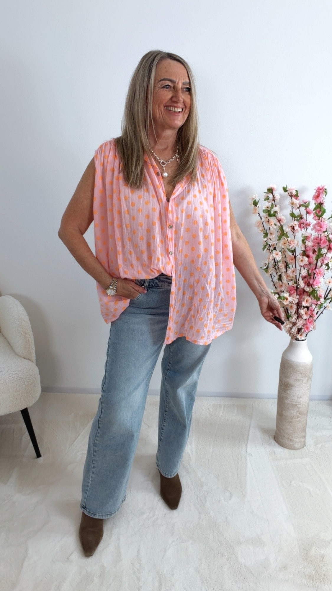 Mit ihrem luftigen Schnitt und den fröhlichen Punkten bringt sie sofort Sommerfeeling in deinen Kleiderschrank 🌼🍑