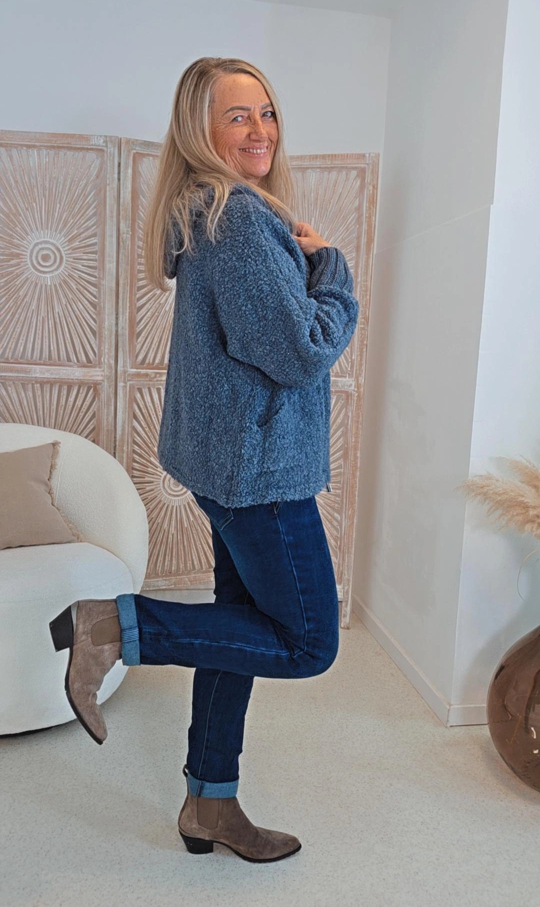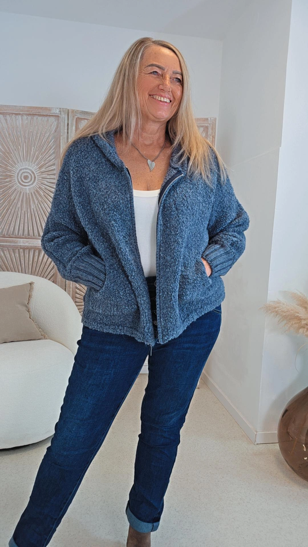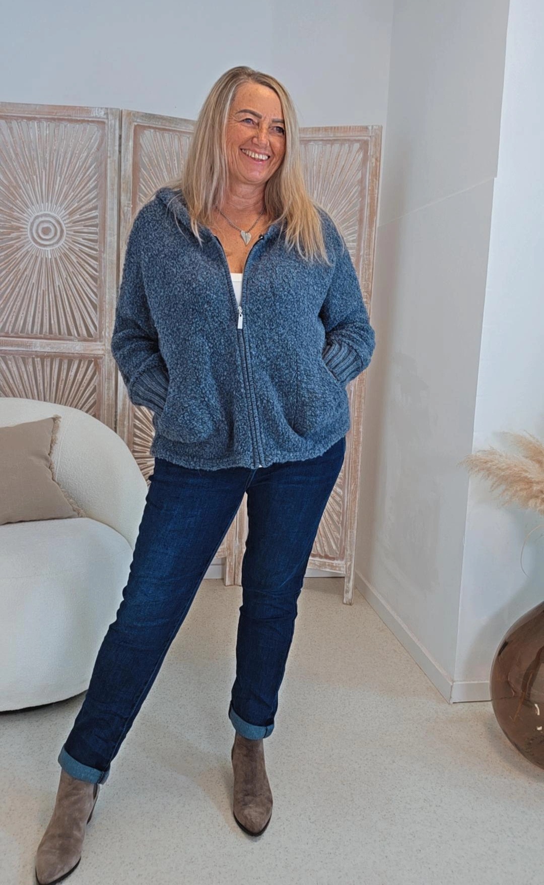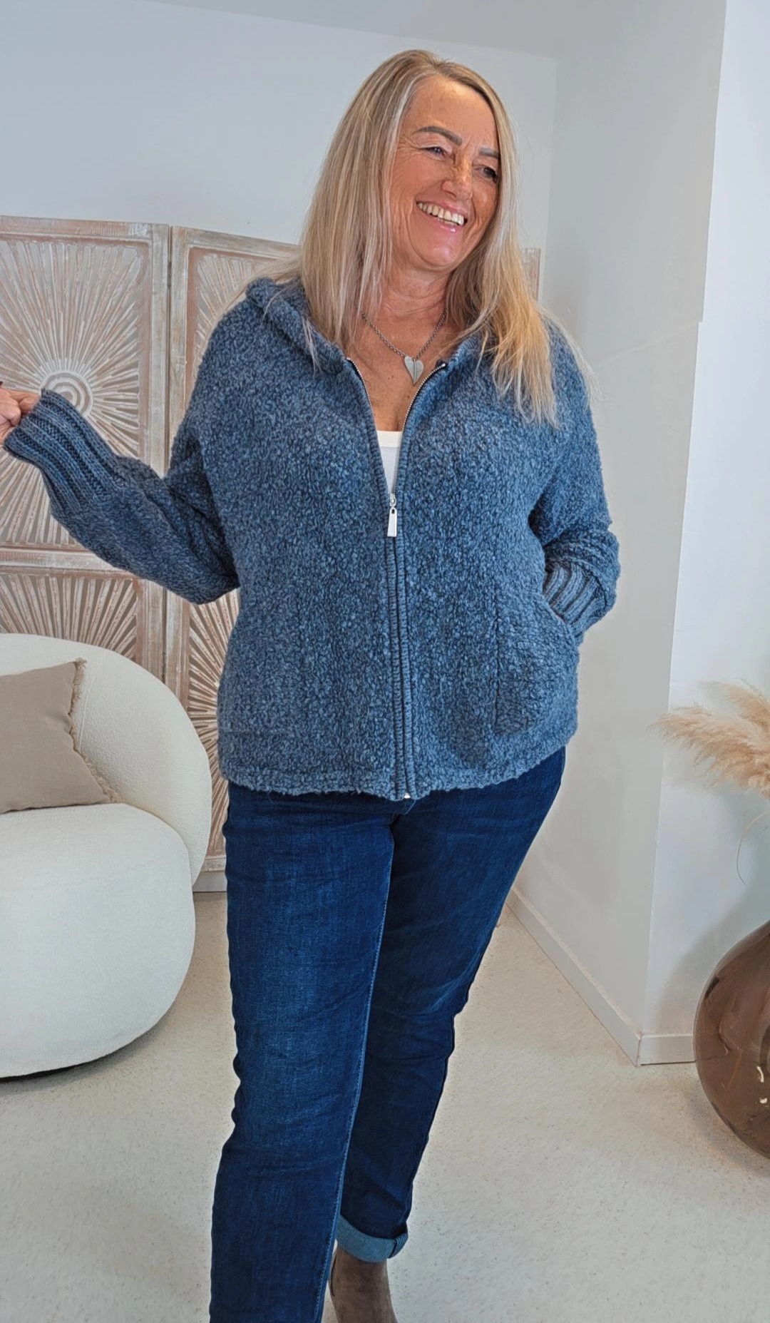DENIM BLUE BOUCLÉJACKE NADJA mit Kapuze,Reißv.&Alpaka 34-42/44