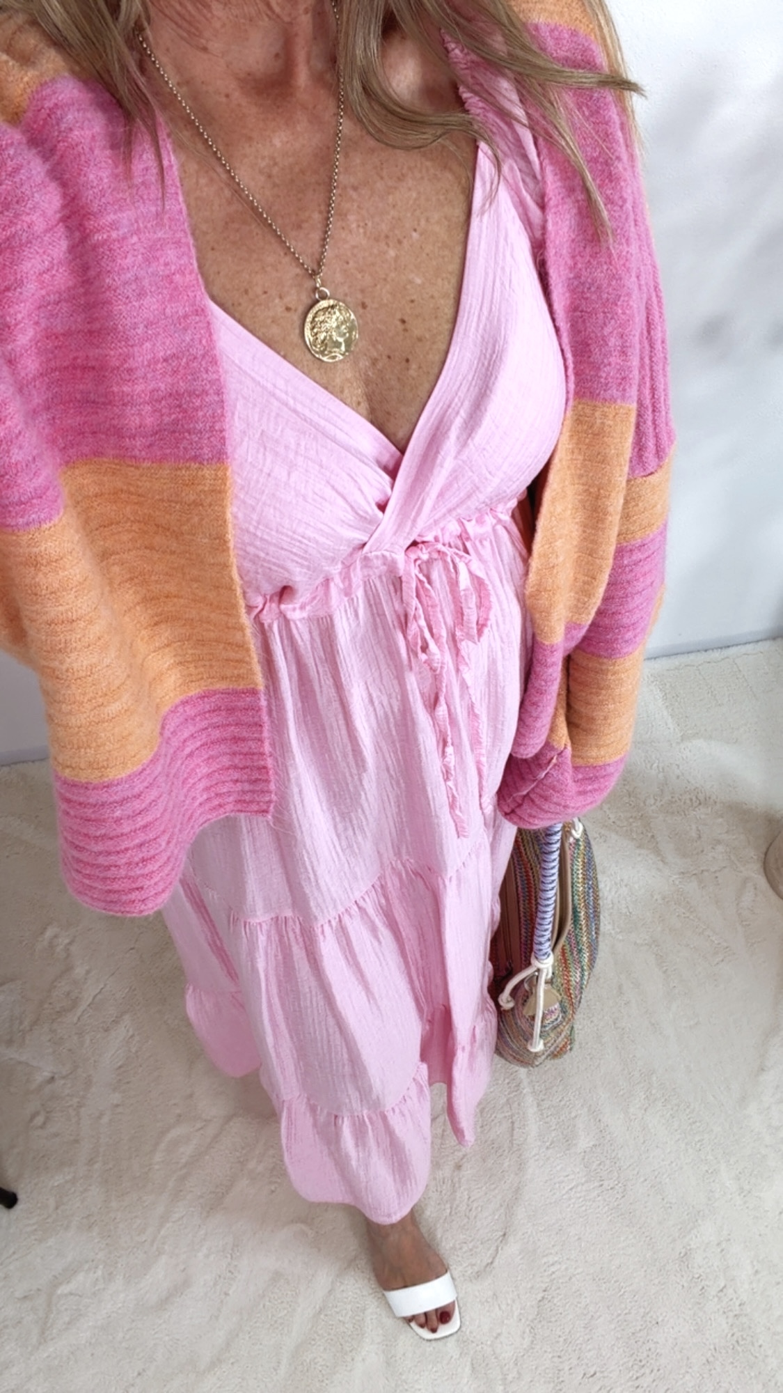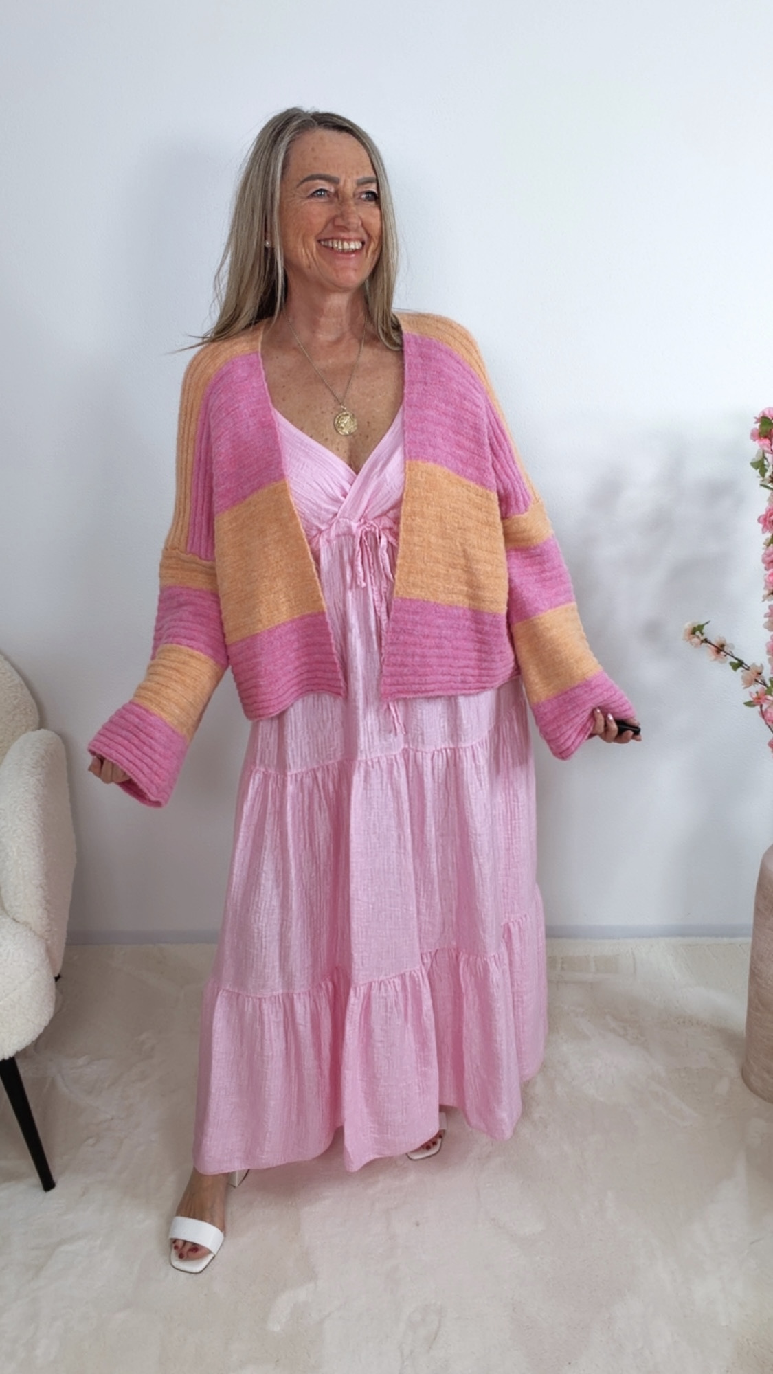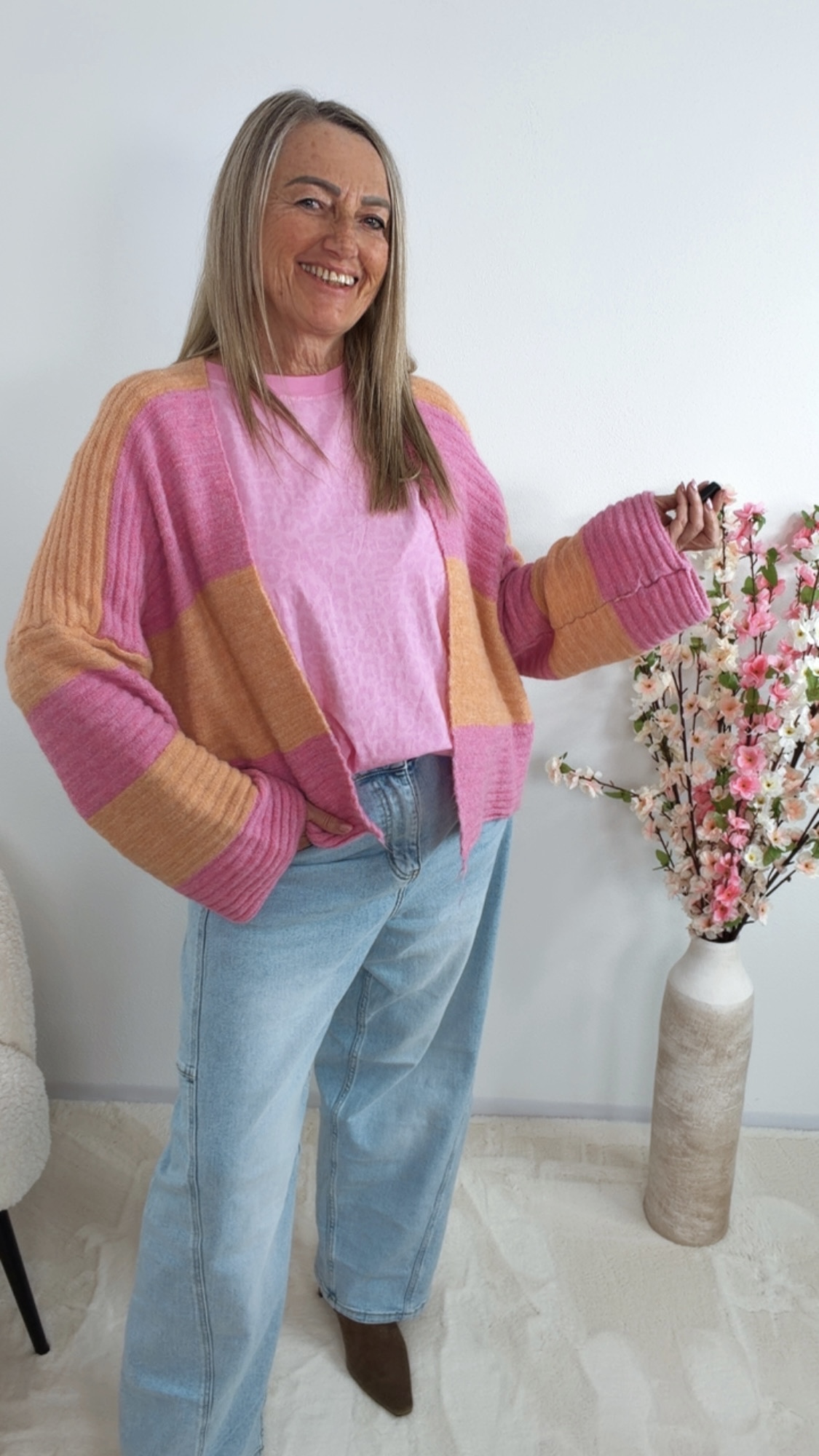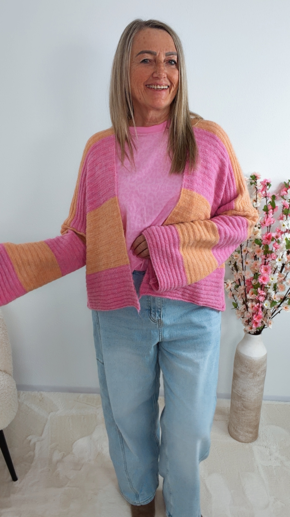 Der wunderschöne Cardigan „Zireliah“ überzeugt mit seinem modernen Streifendesign in sanften Farben 😍💚💗 und sorgt für einen frischen, stylischen Look!