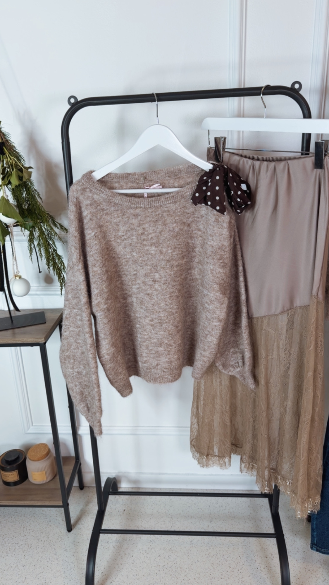 Pullover Macy – Taupe mit Polka-Dots-Schleife