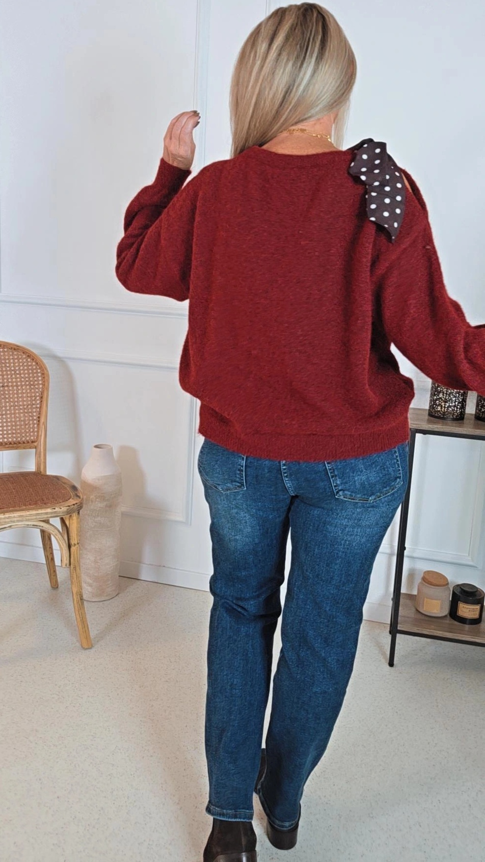 Pullover Macy – Taupe mit Polka-Dots-Schleife