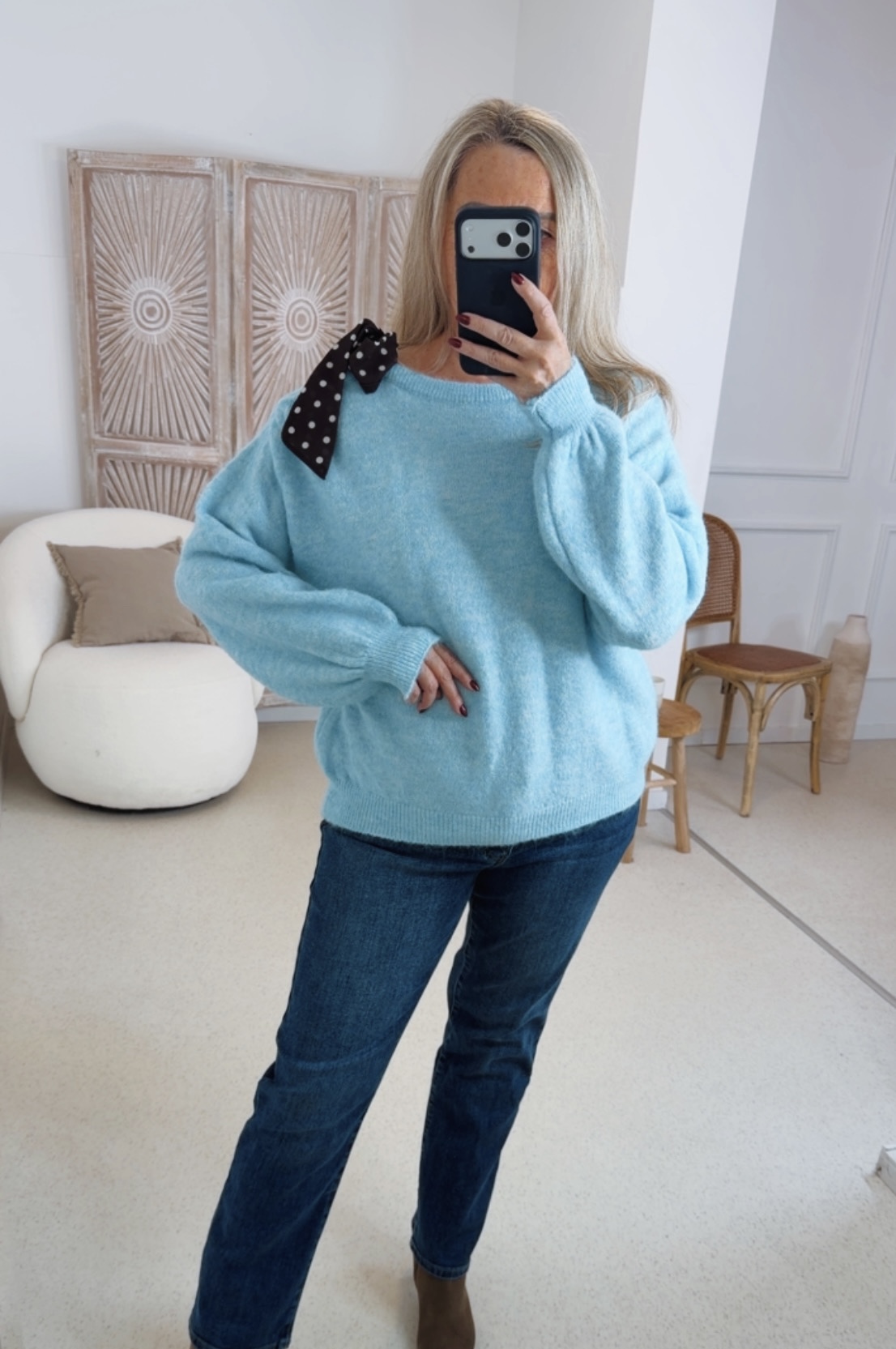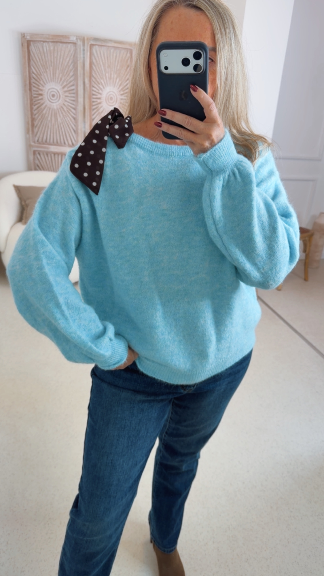 Pullover Macy – Taupe mit Polka-Dots-Schleife