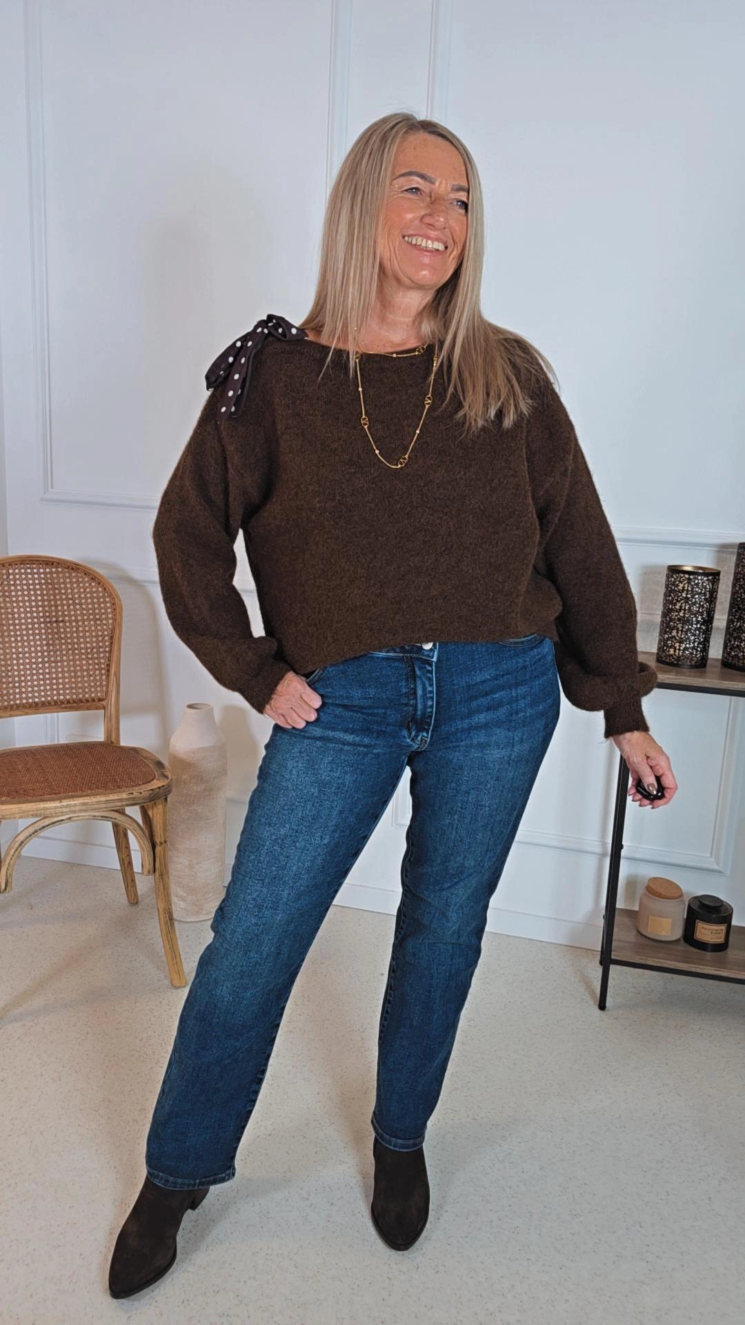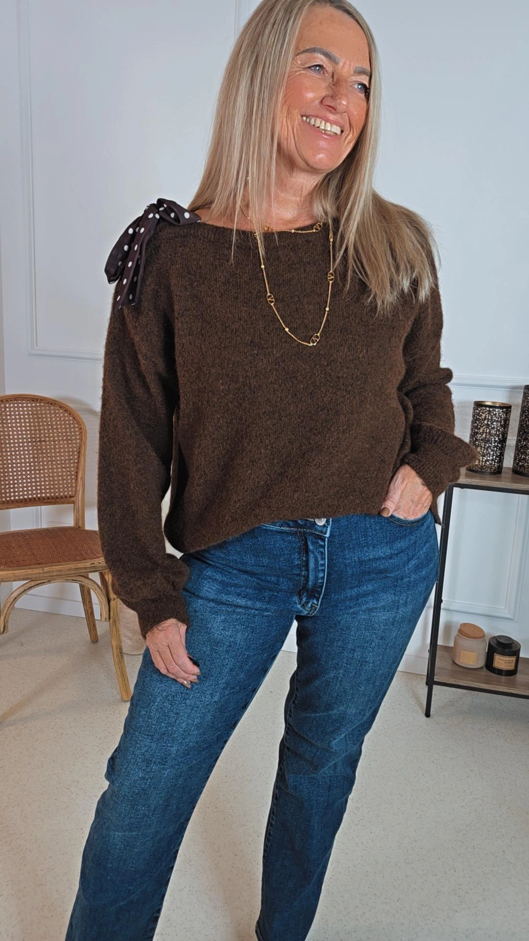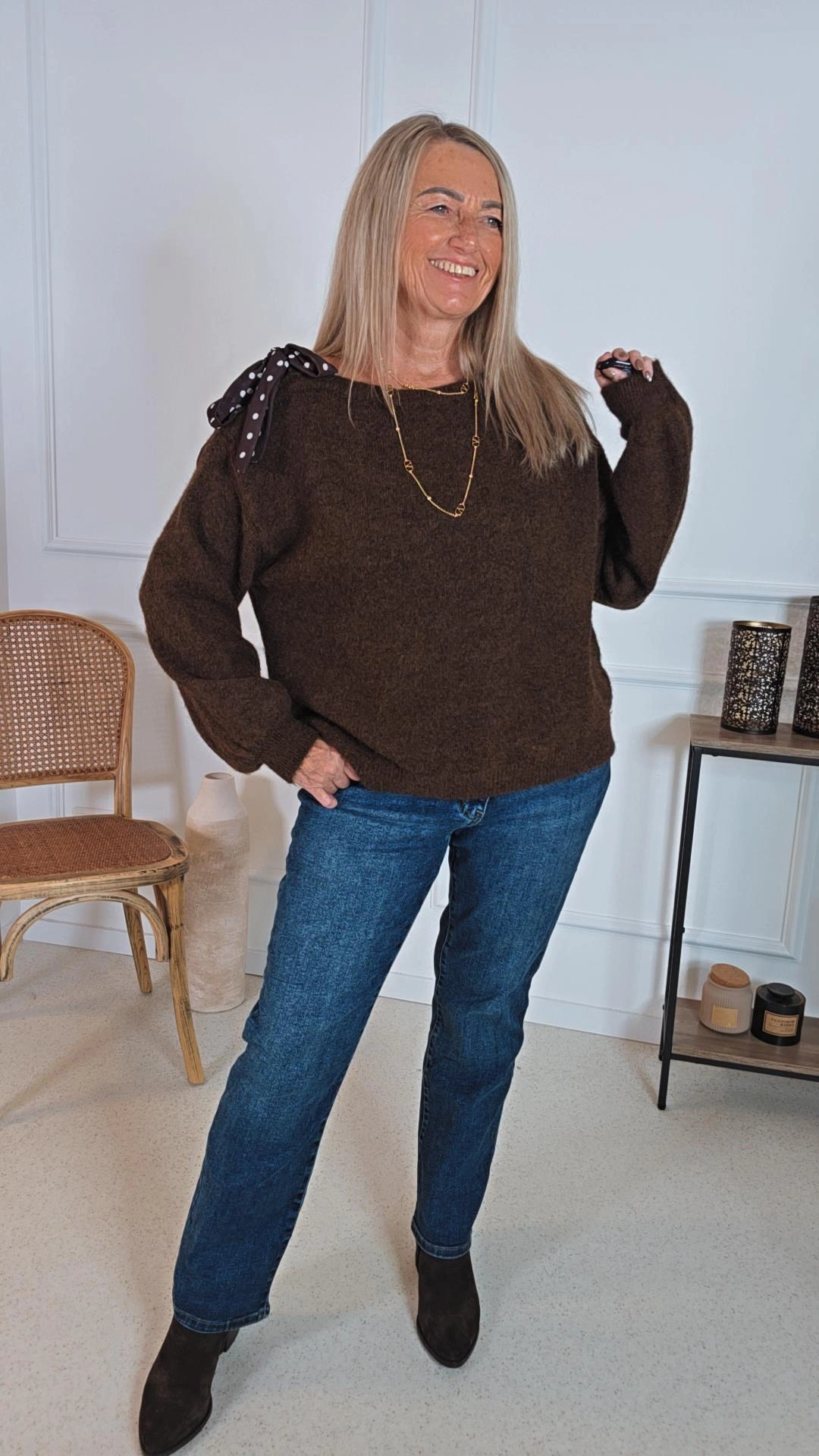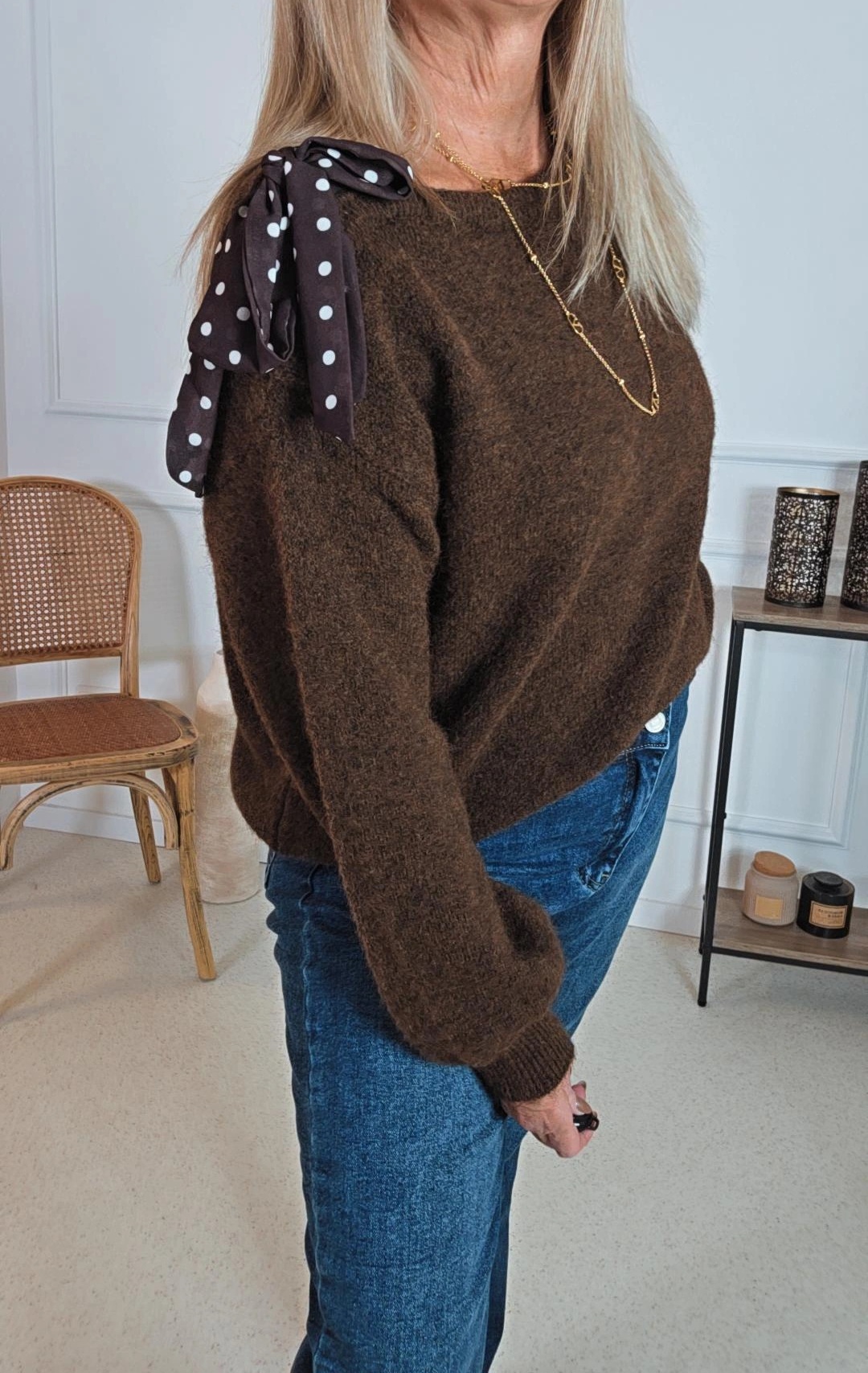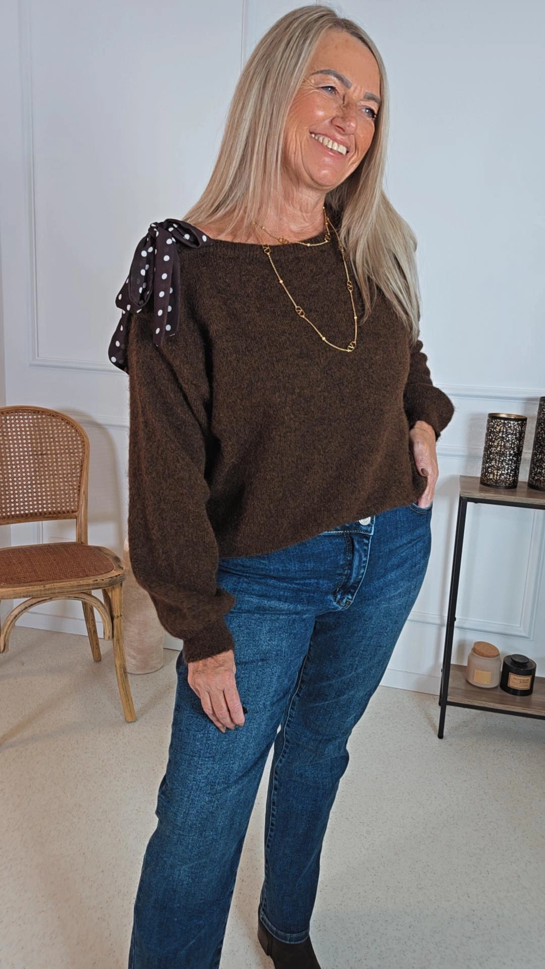 Pullover Macy – Taupe mit Polka-Dots-Schleife