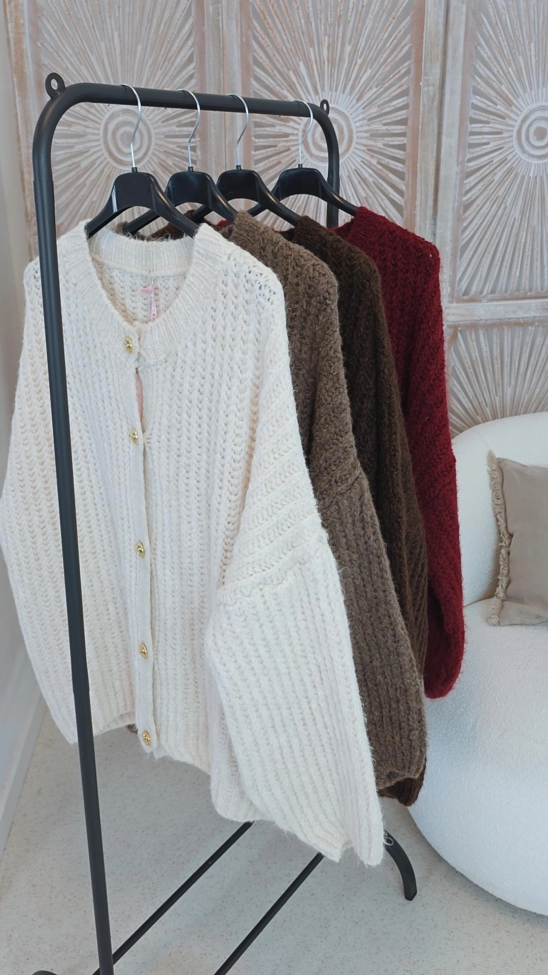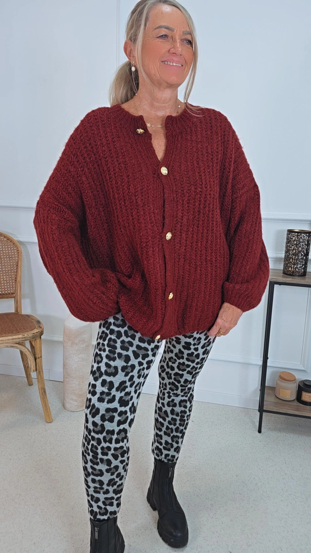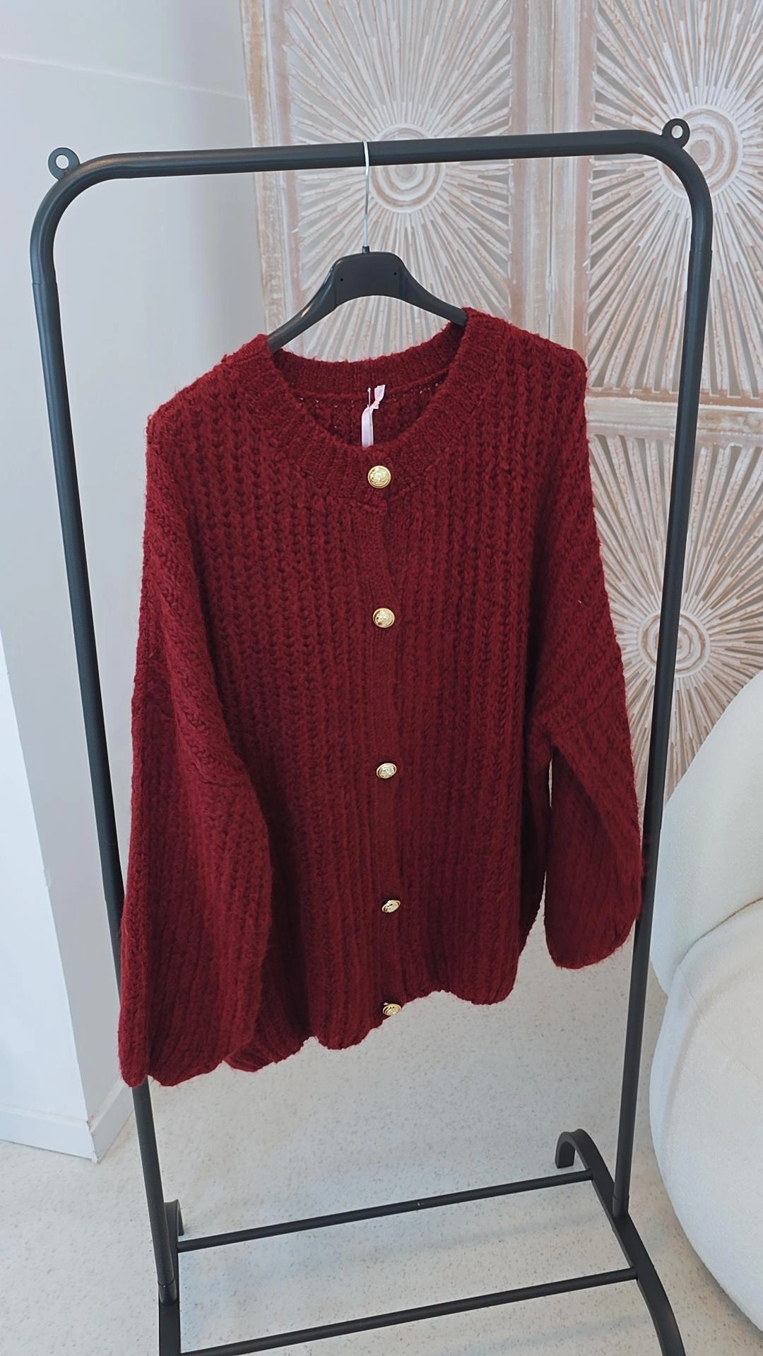 Kuscheliger Grobstrick-Cardigan mit goldfarbigen Knöpfen