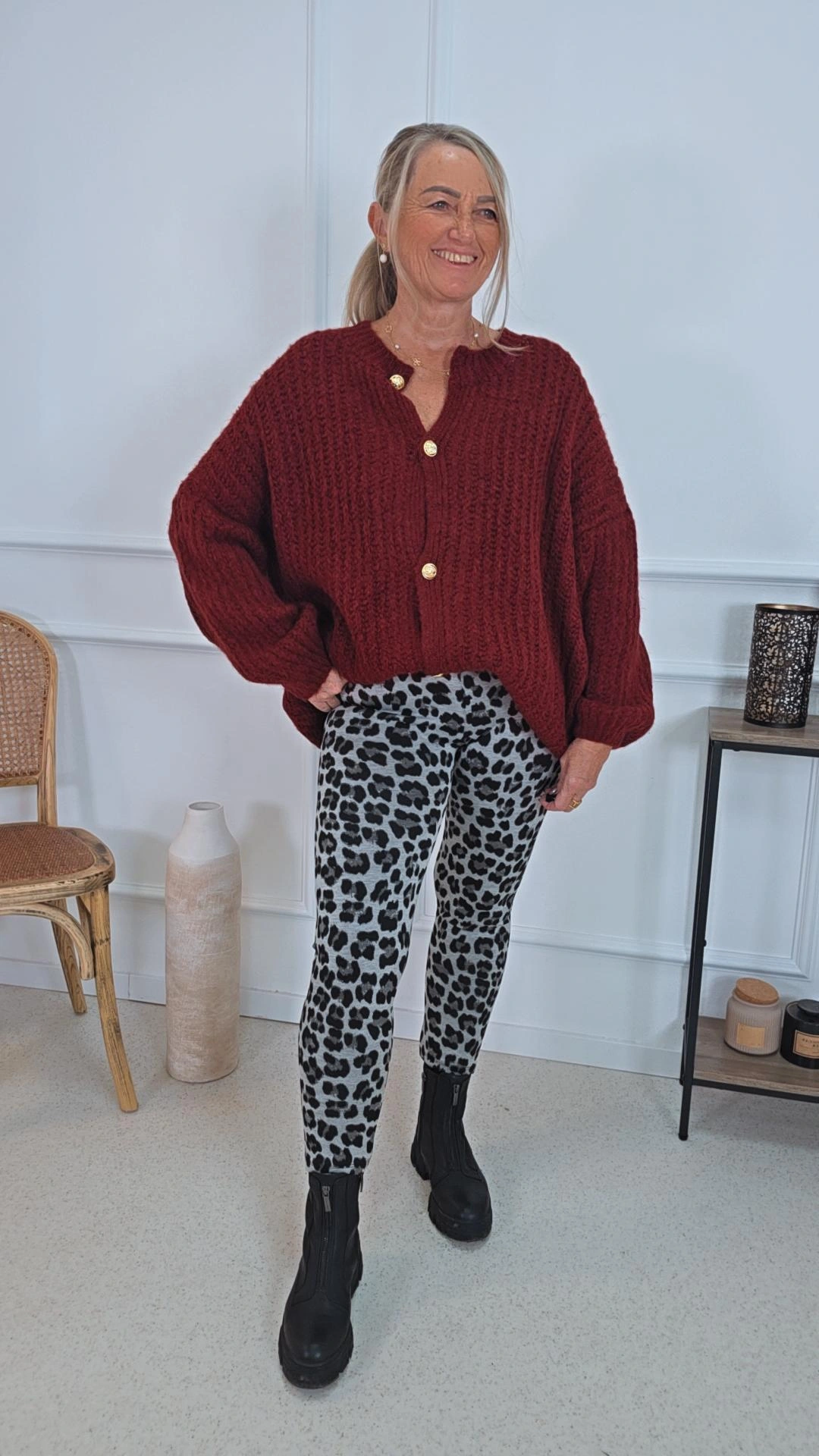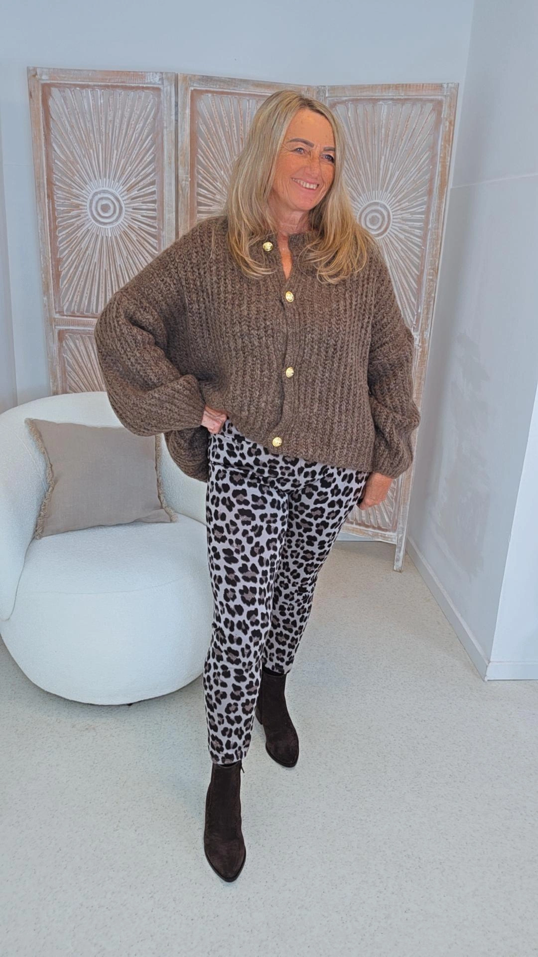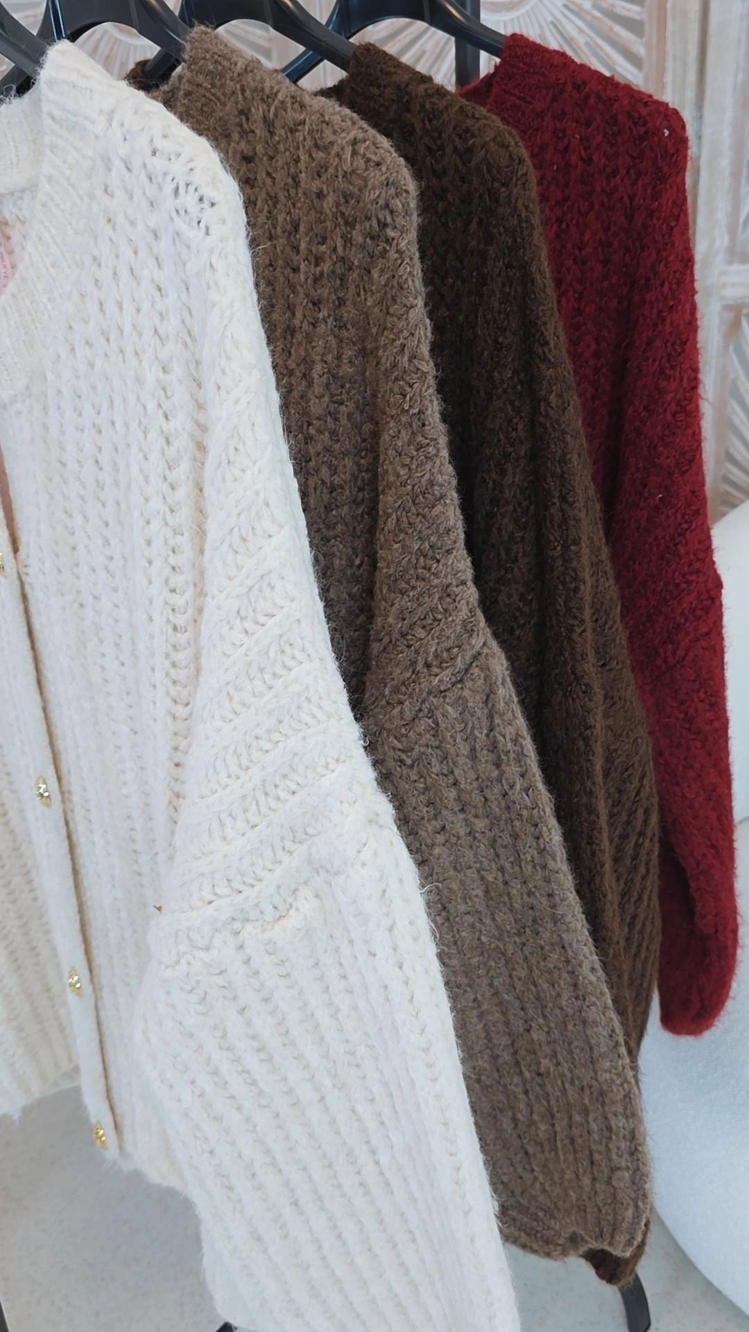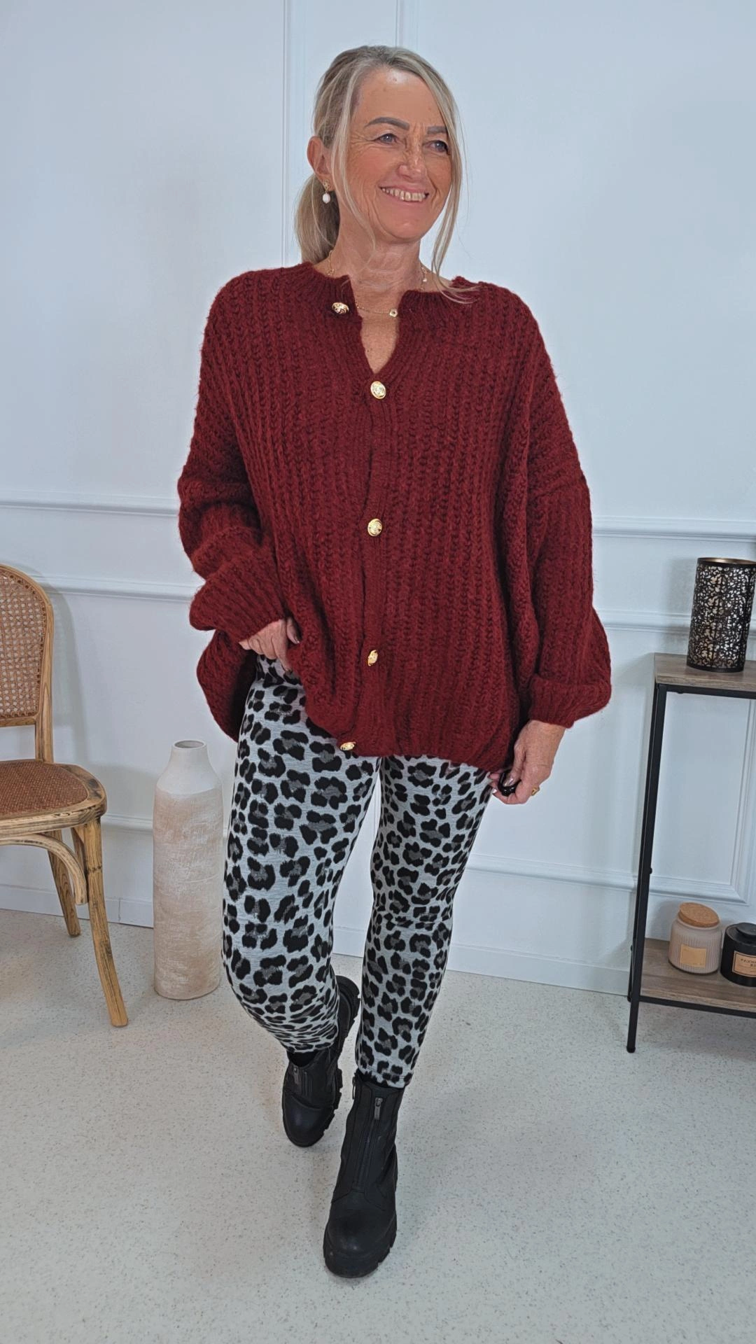 Kuscheliger Grobstrick-Cardigan mit goldfarbigen Knöpfen