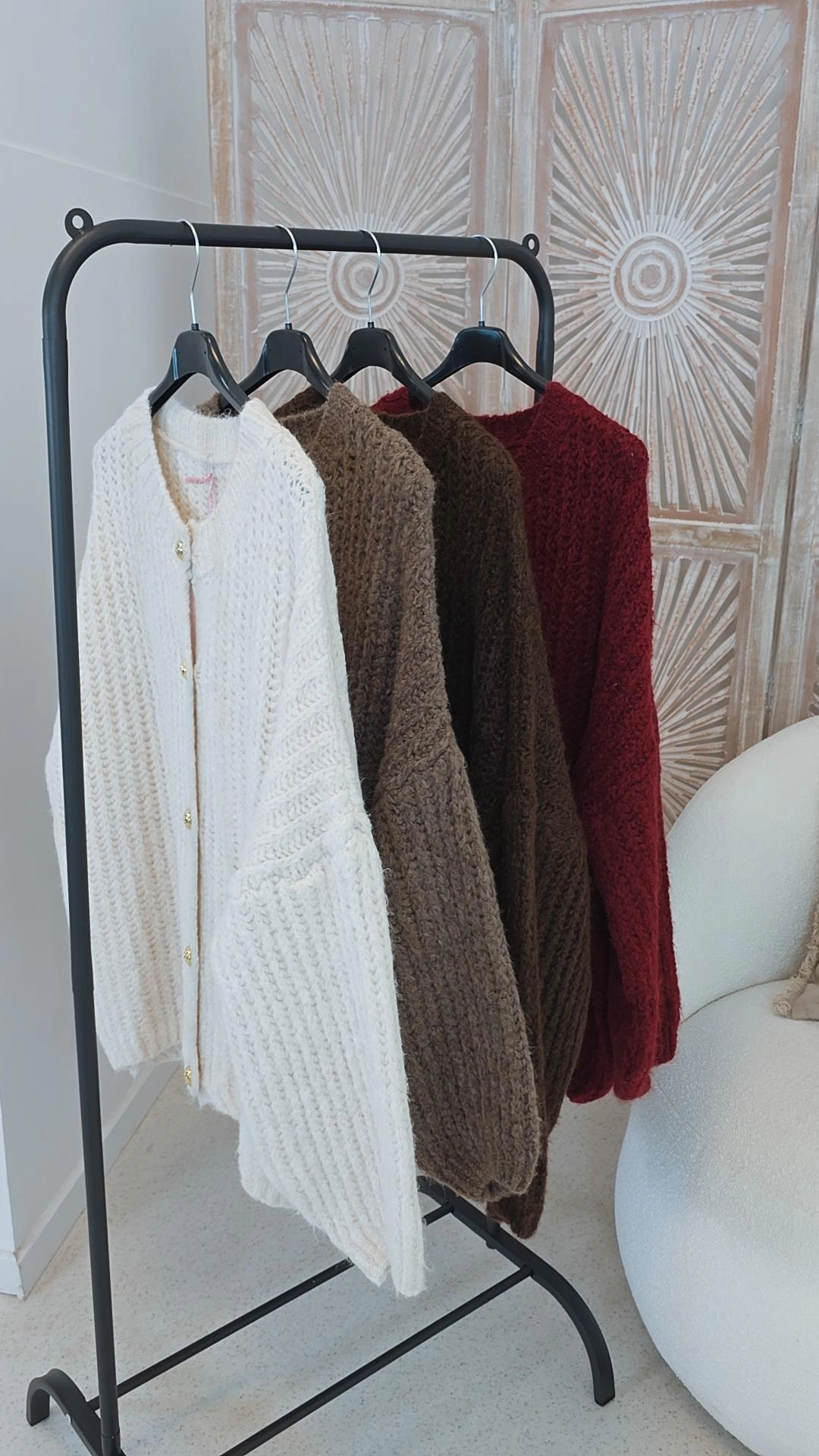 Dieser cozy Strick-Cardigan vereint modernen Komfort mit eleganten Details. Der weiche Grobstrick sorgt für ein angenehm wärmendes Tragegefühl, während der lässige Oversize-Schnitt einen entspannten, stylischen Look verleiht.