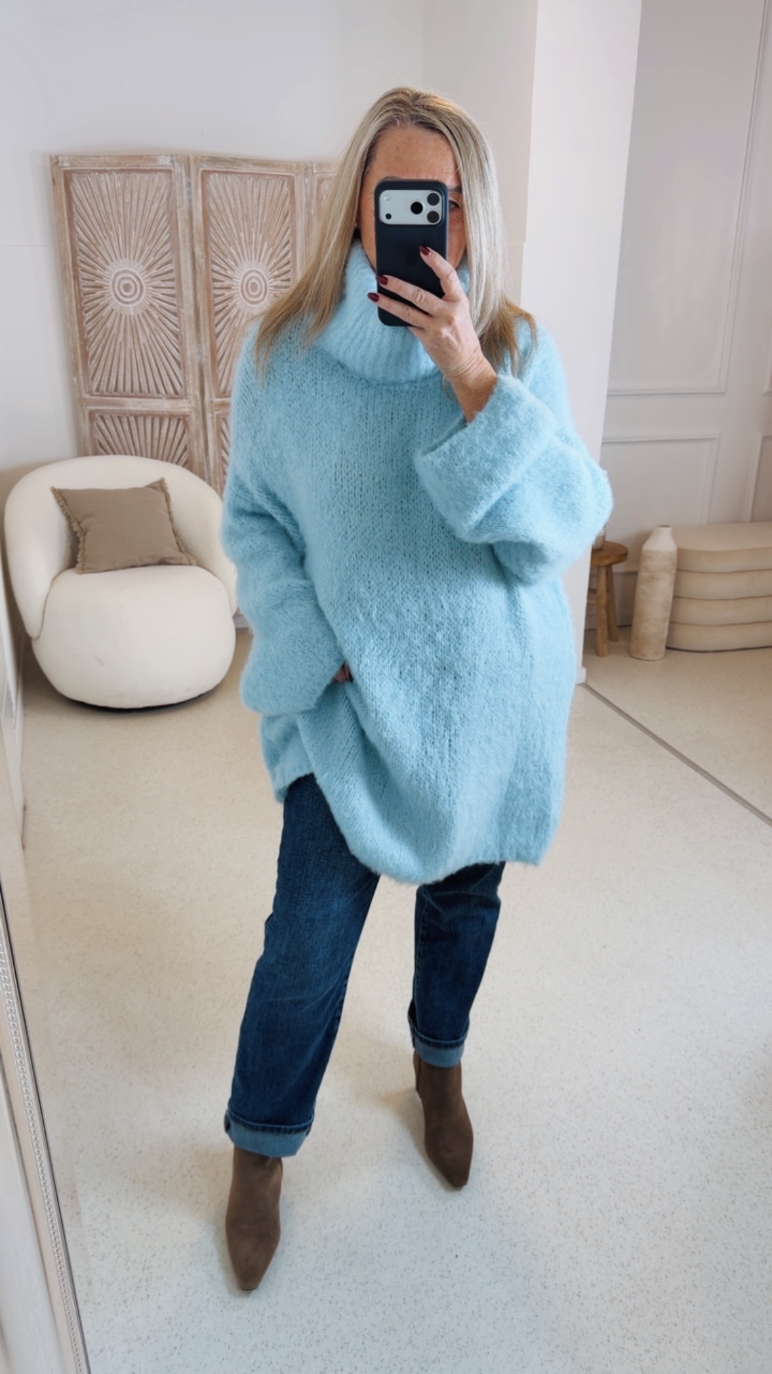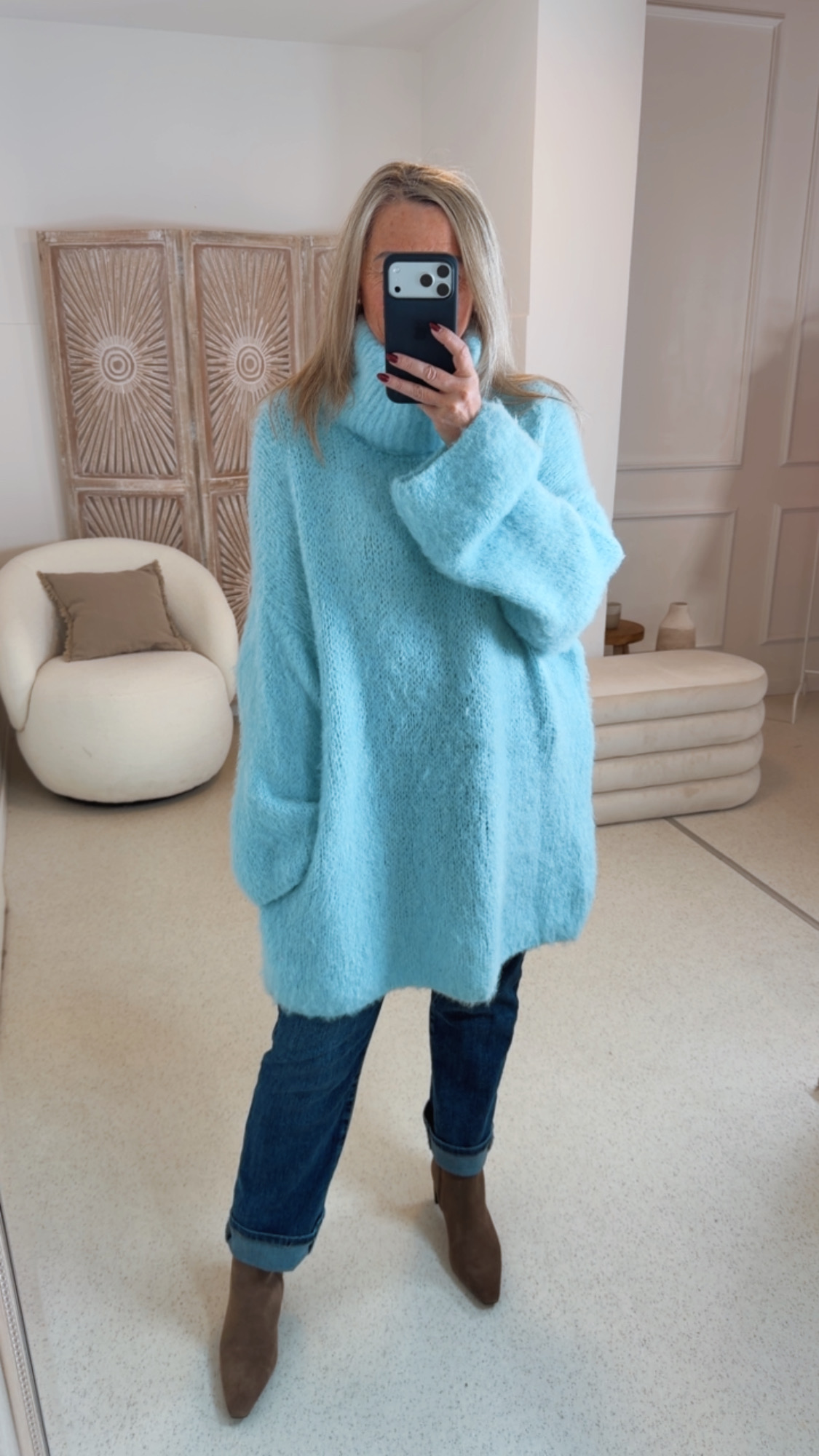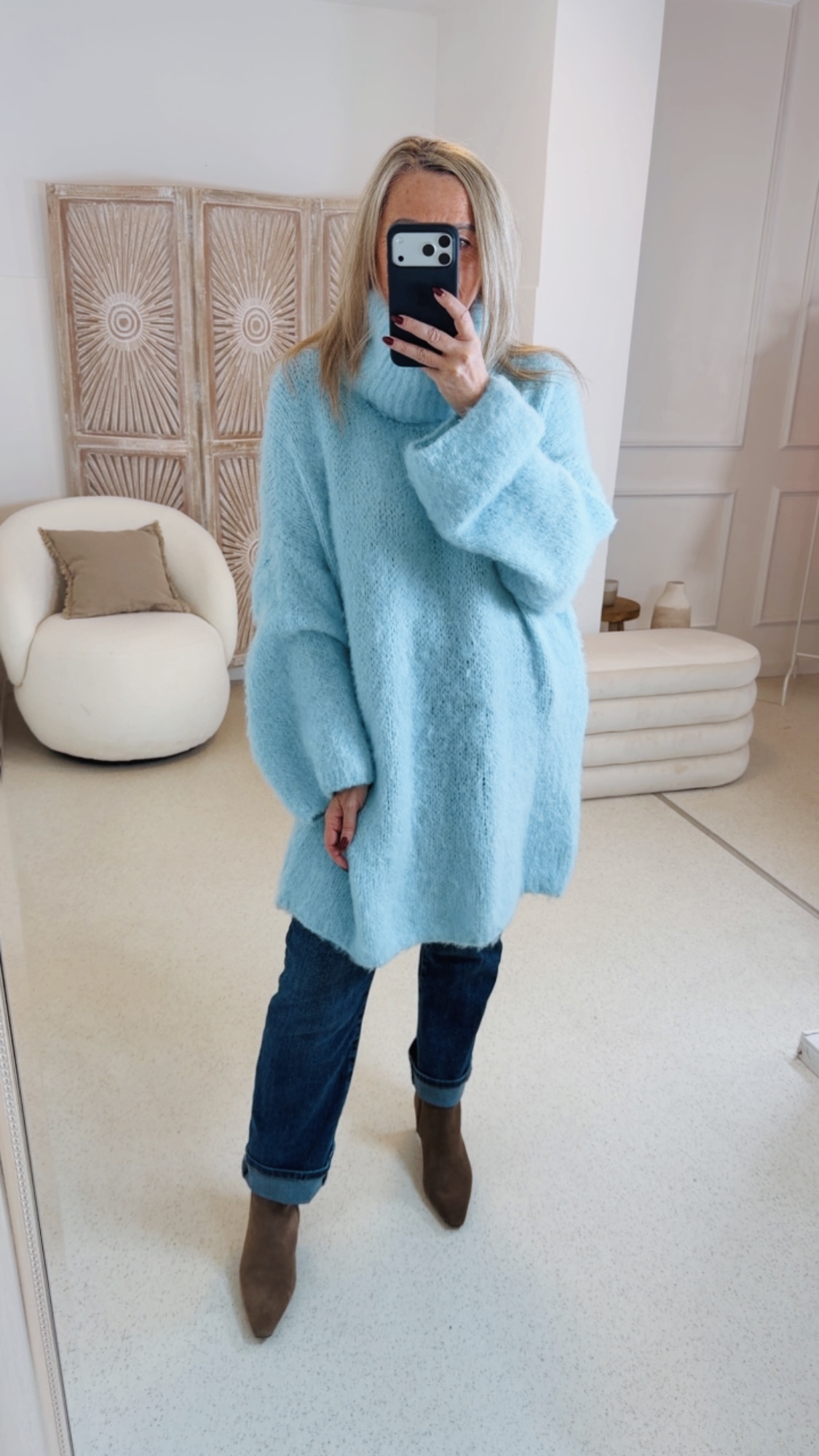 Das cozy Strickkleid „Katja“ verbindet angenehmen Tragekomfort mit zeitloser Eleganz. Gefertigt aus einem besonders weichen Strickmaterial, umschmeichelt es die Silhouette und sorgt für ein wohliges Gefühl – den ganzen Tag. Der schicke Rollkragen sorgt für wärme.