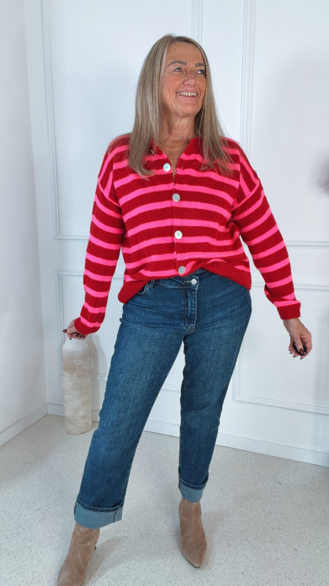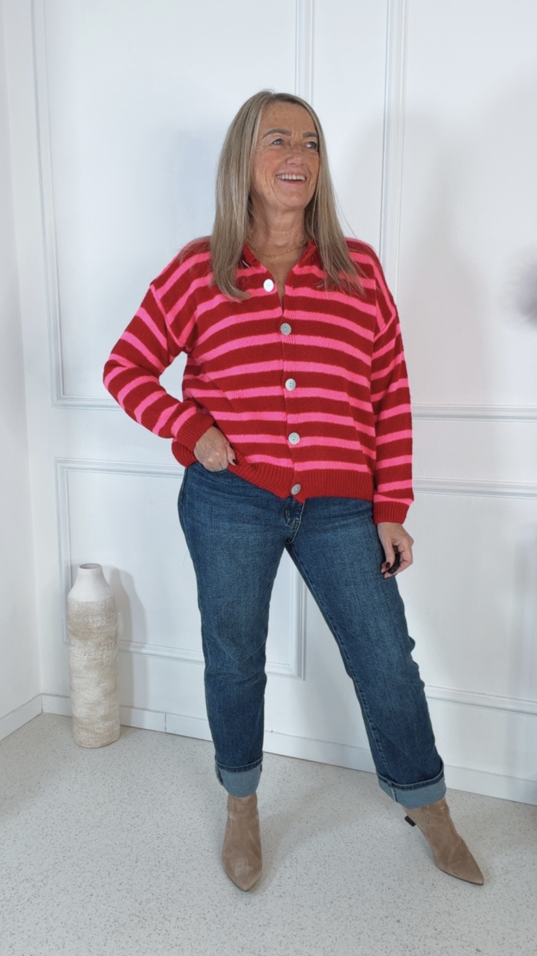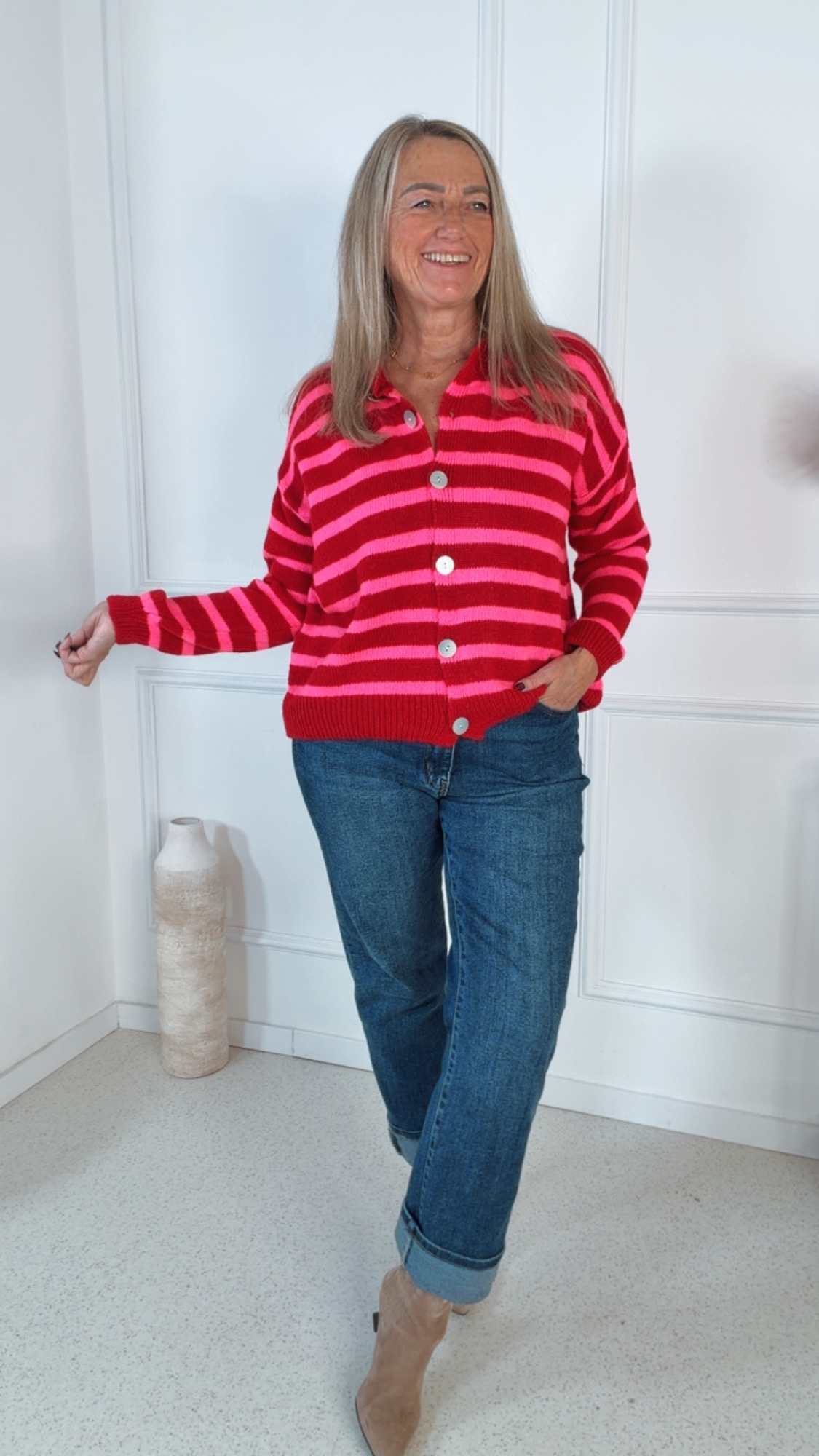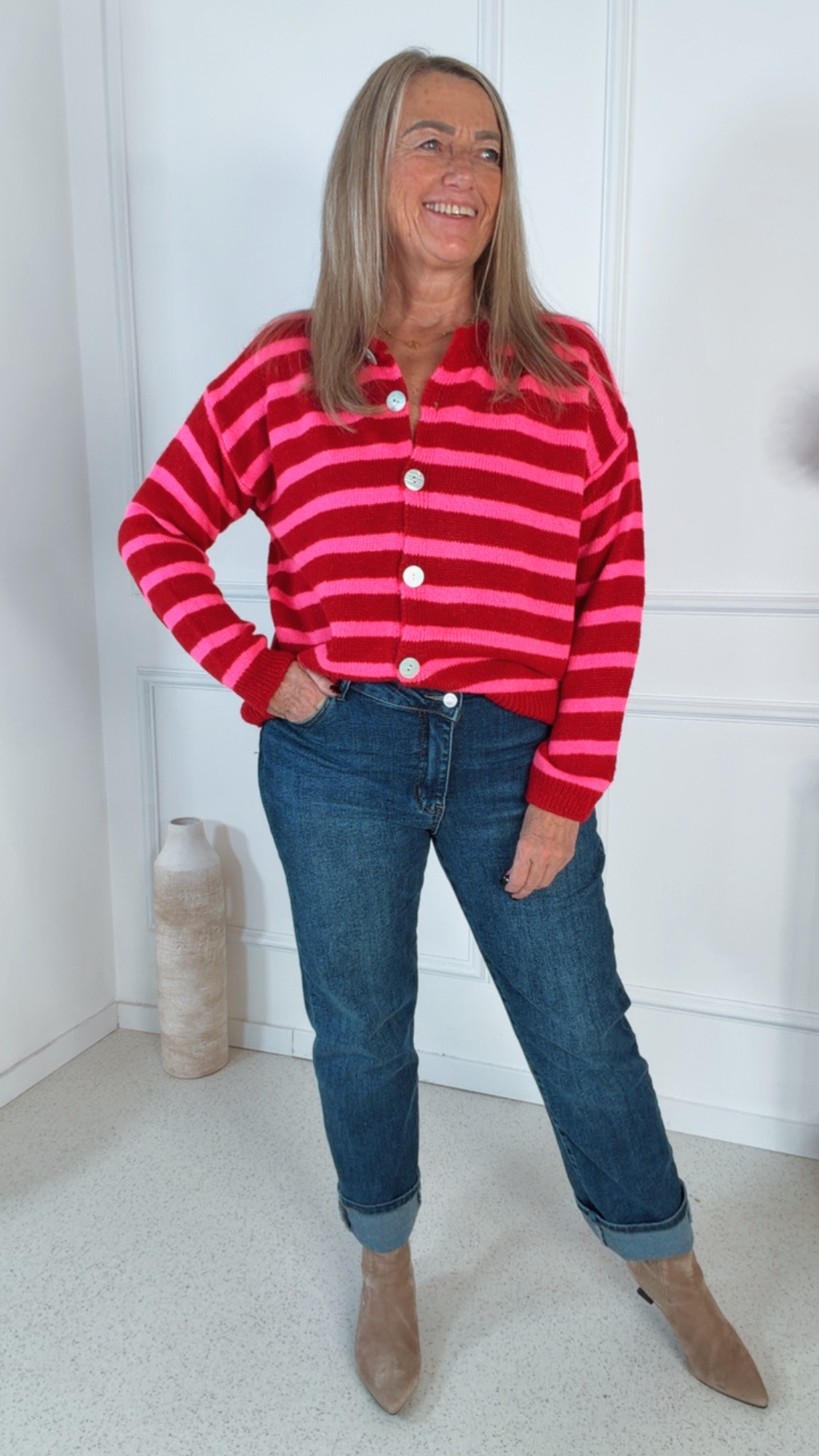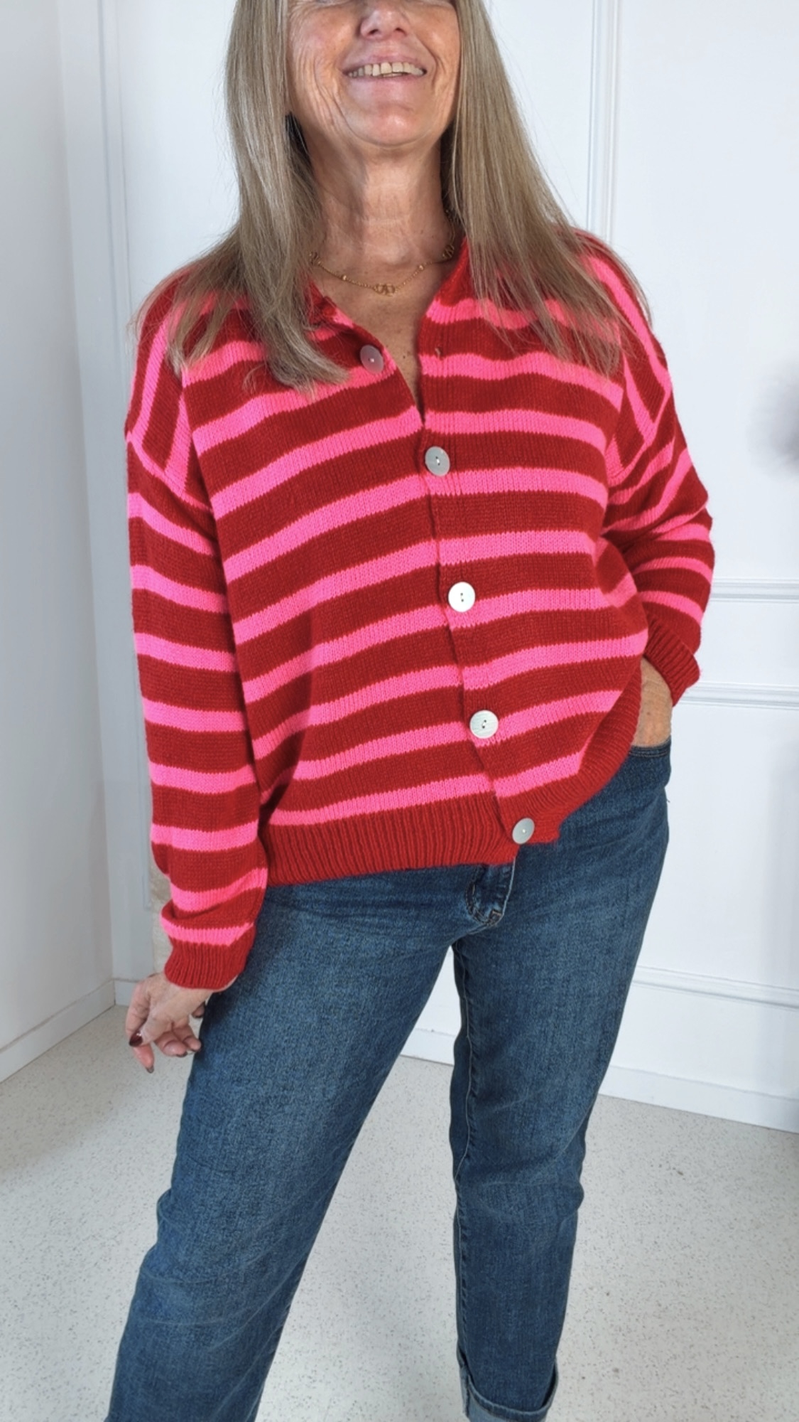 Ob casual zur Jeans oder elegant kombiniert – diese Strickjacke ist ein echtes Styling-Multitalent und ein Must-have für die neue Saison.