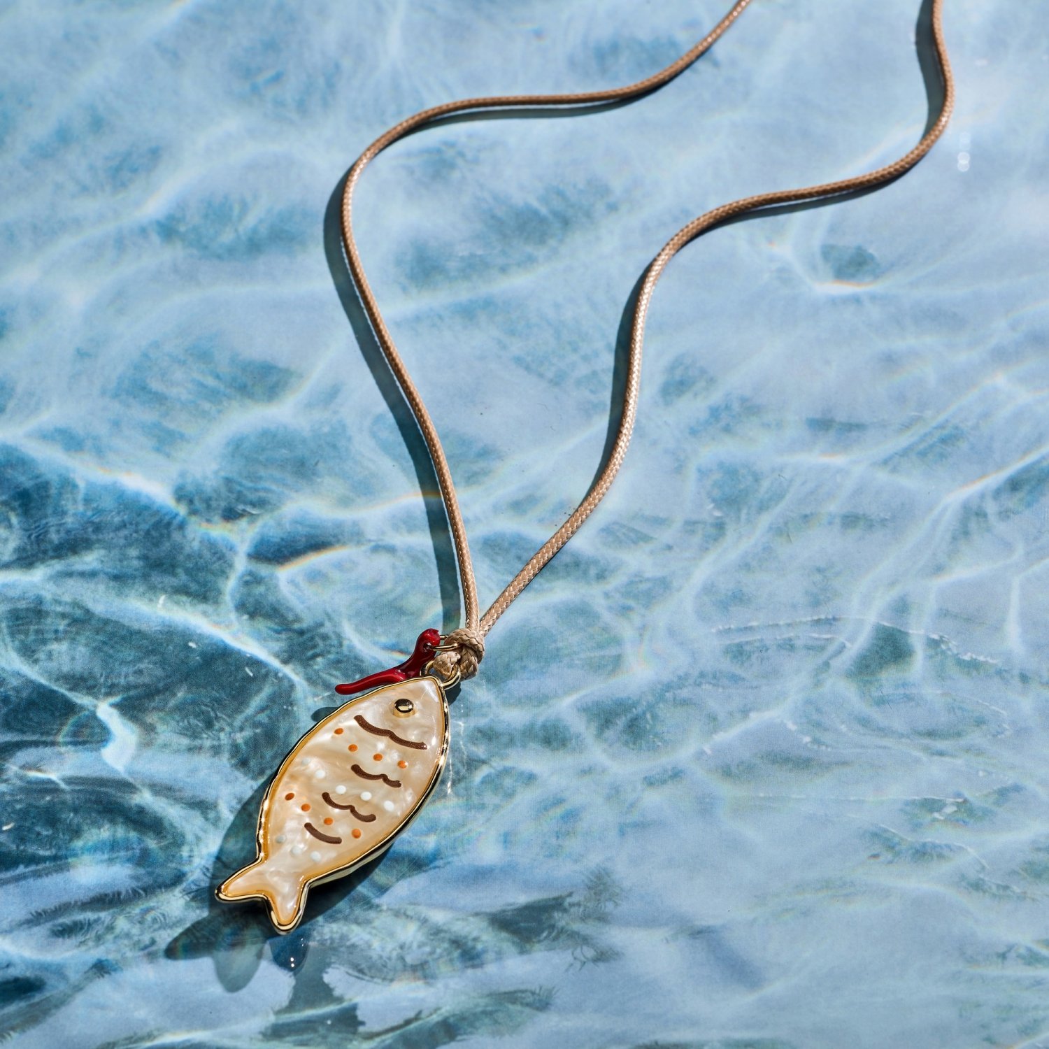 Maréa – Fischanhänger-Kette in Goldfarbig & Beige Sommer Kette Fisch