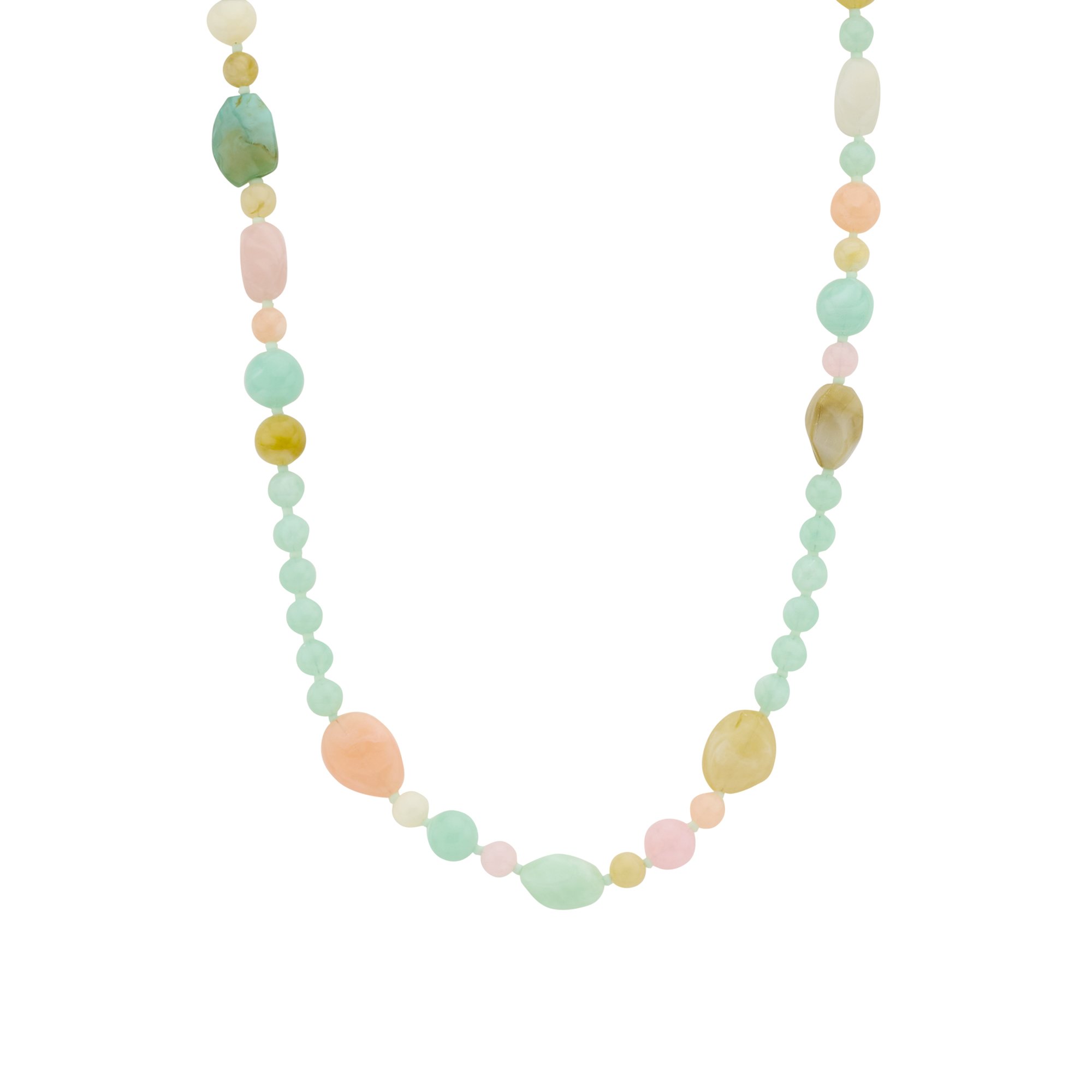 Die Kette „Solara“ bringt pure Sommerlaune in deinen Look. Mit ihrem farbenfrohen Mix aus sanften Pastelltönen, leuchtenden Akzenten und goldfarbenen Details ist sie ein echtes Statement-Piece. Die unterschiedlich geformten Resin-Perlen verleihen der Kette eine lebendige, verspielte Optik und machen jedes Outfit sofort frischer und moderner.