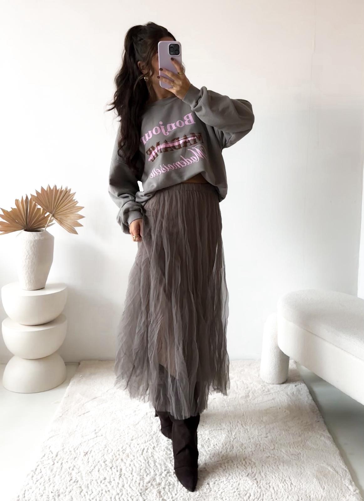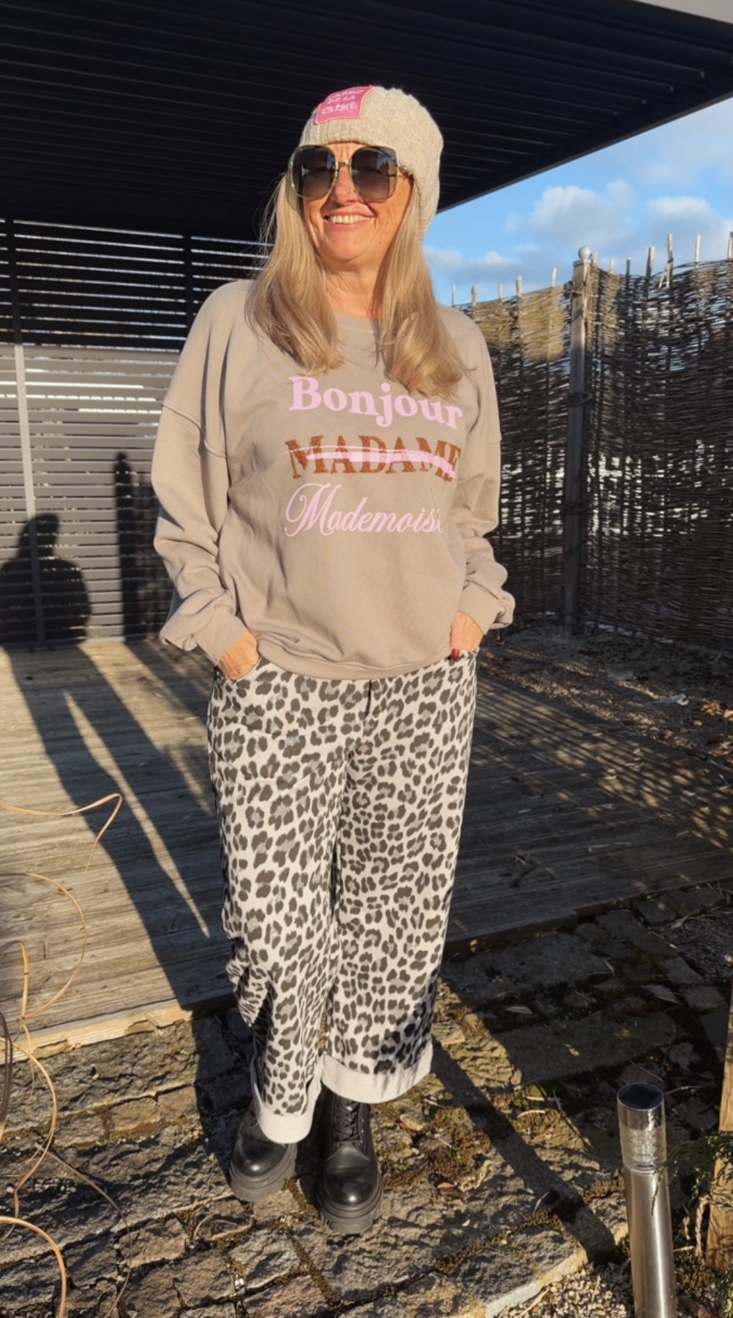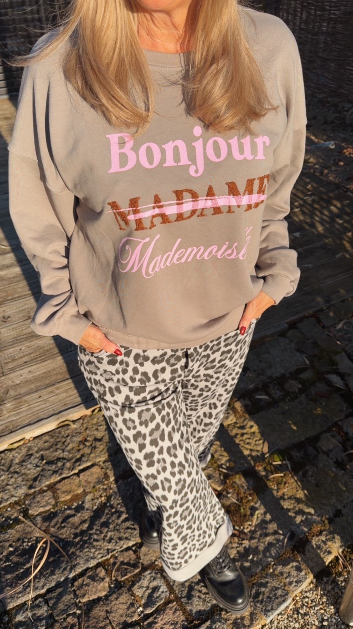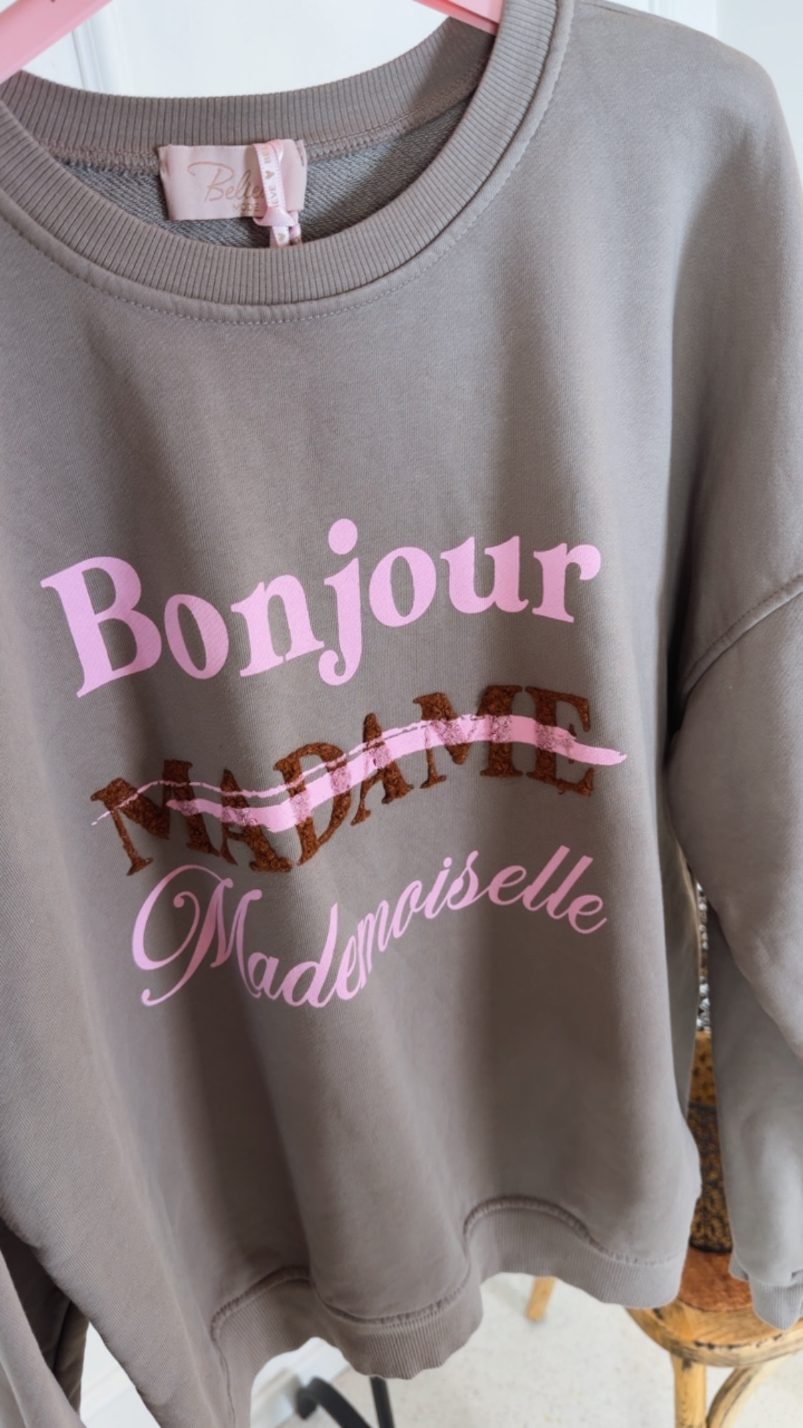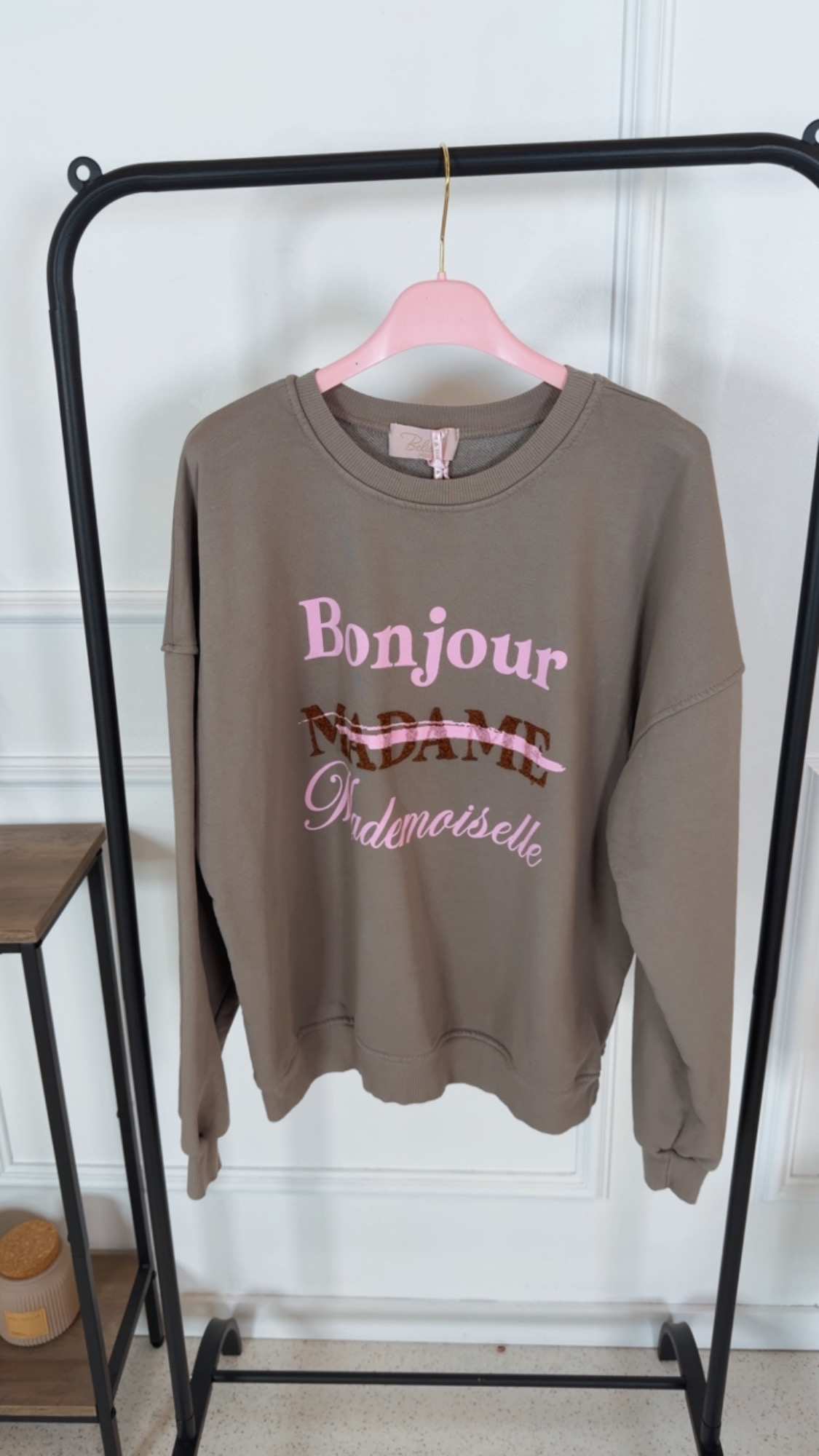 Ein Hauch Paris für deinen Kleiderschrank: Der „Mademoiselle“-Sweater verbindet lässige Eleganz mit einem feinen Gefühl von französischer Lebensart. Der weiche Stoff umhüllt dich angenehm warm, während der stilvolle Schriftzug deine Ausstrahlung mit einer Portion Selbstbewusstsein und charmantem Esprit unterstreicht. Perfekt für Tage, an denen du unkompliziert chic aussehen möchtest – mit einem Outfit, das so leicht wirkt wie ein Spaziergang durch die Straßen von Montmartre.