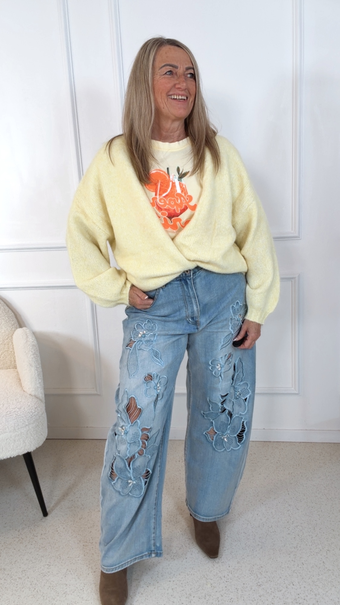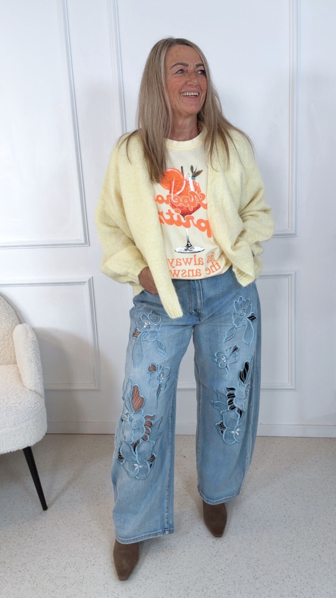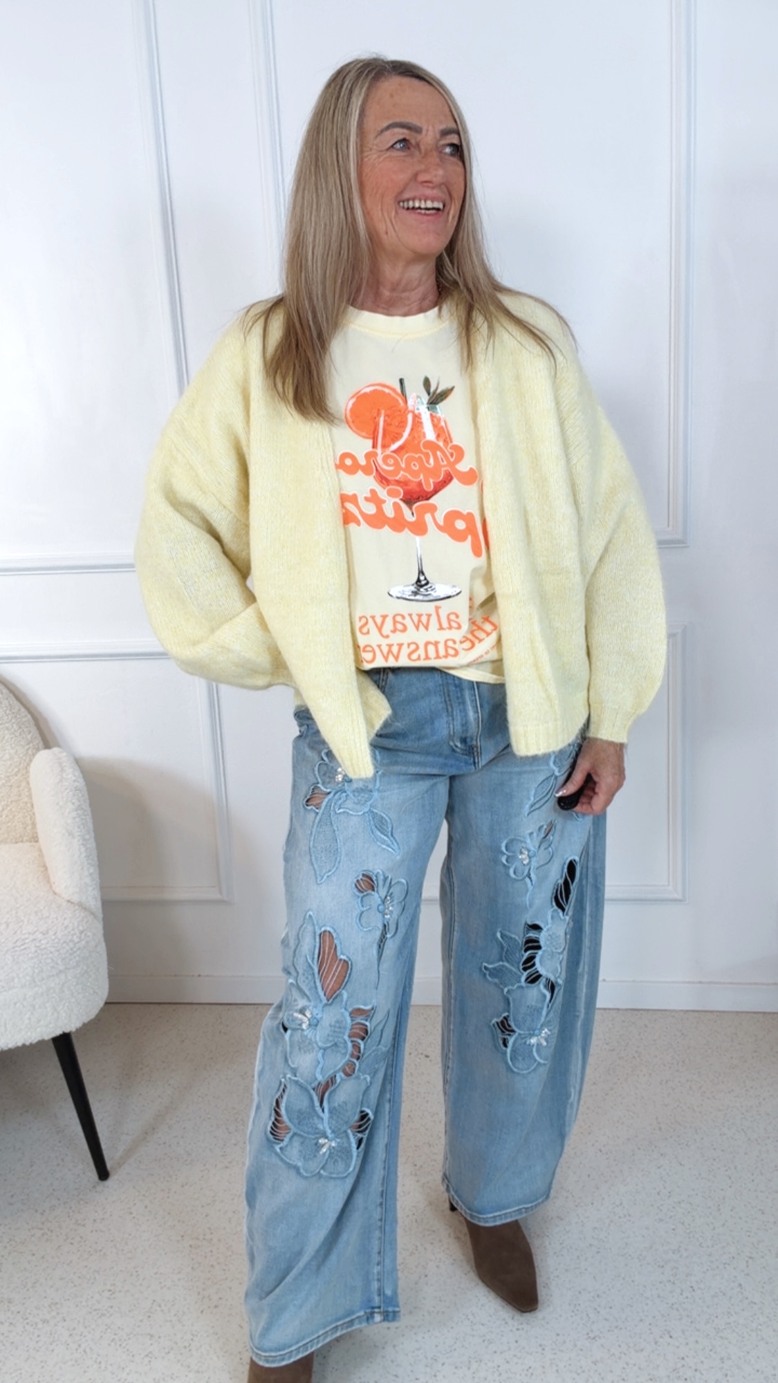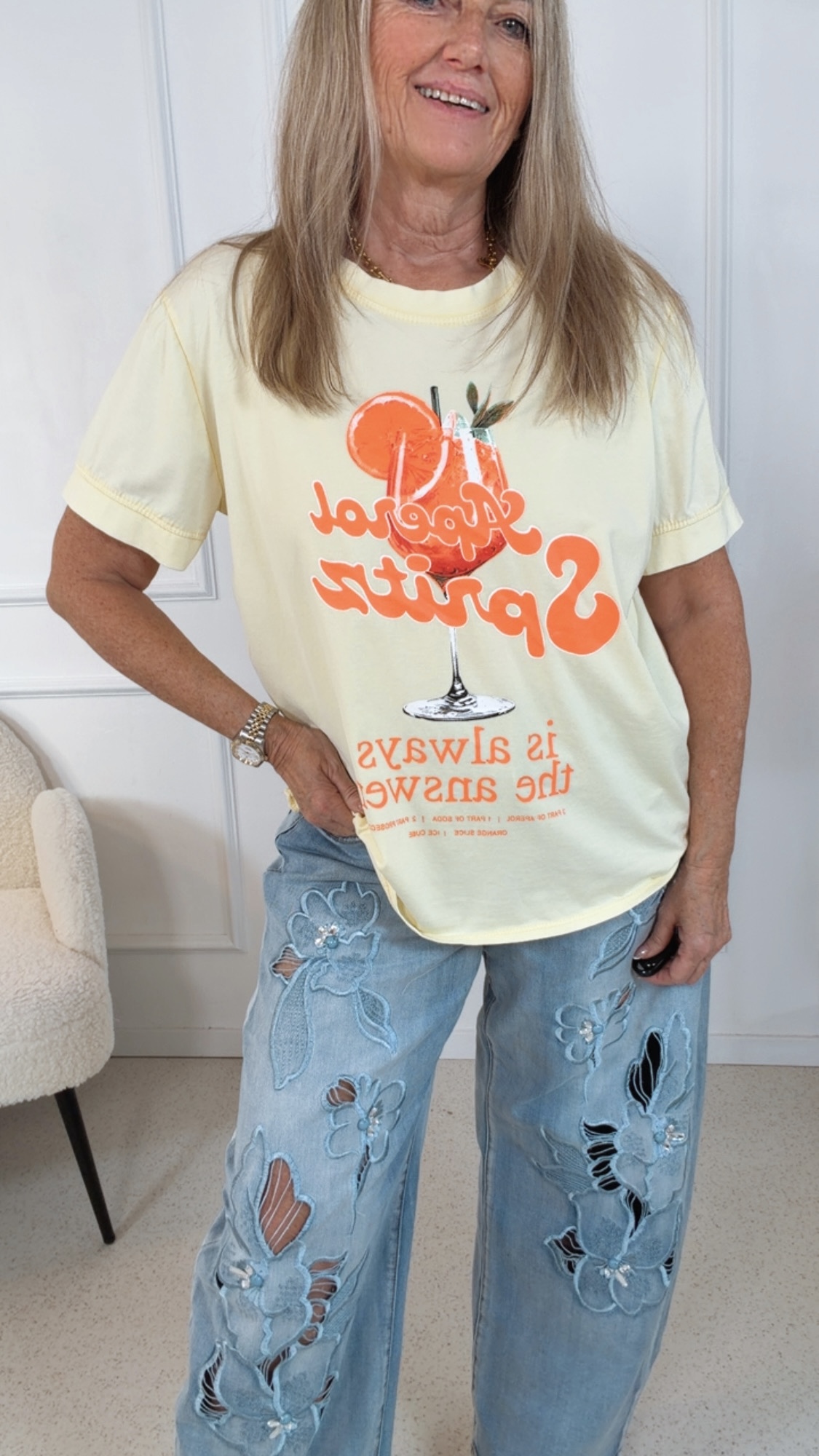 GELB STATEMENT T-SHIRT ORANGINA COCKTAILAUFDRUCK 34-42.4