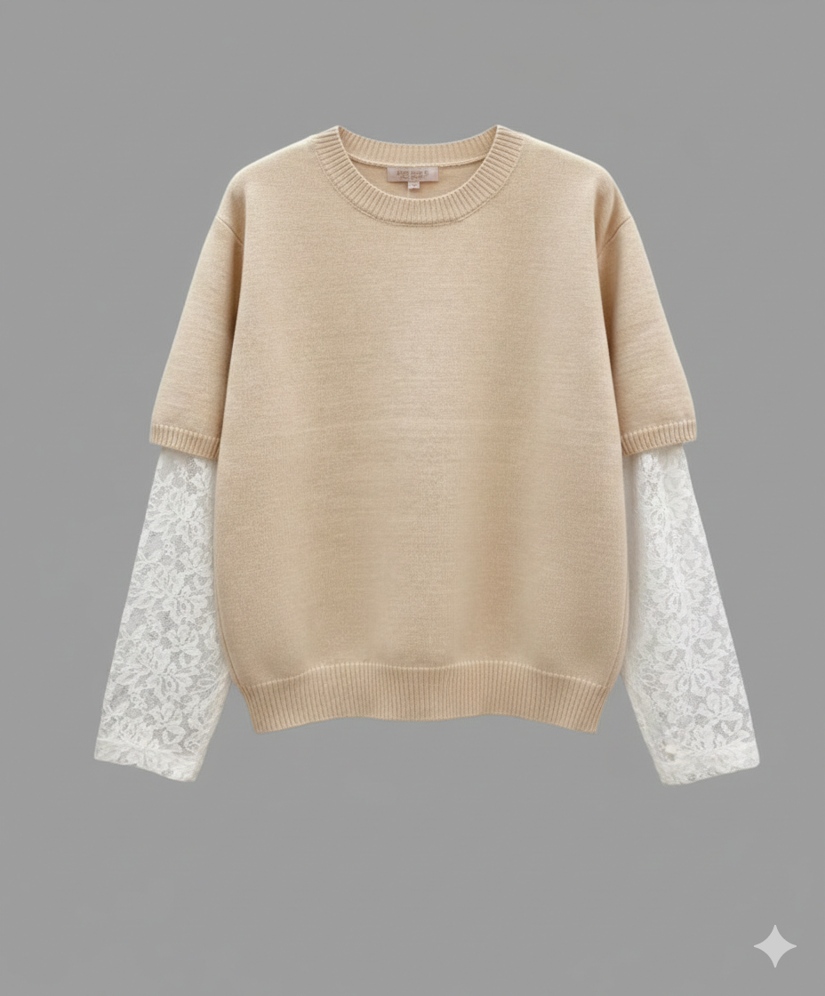 DAISY Lace Knit Pullover mit Spitzenbluse in Taupe 34-40/42