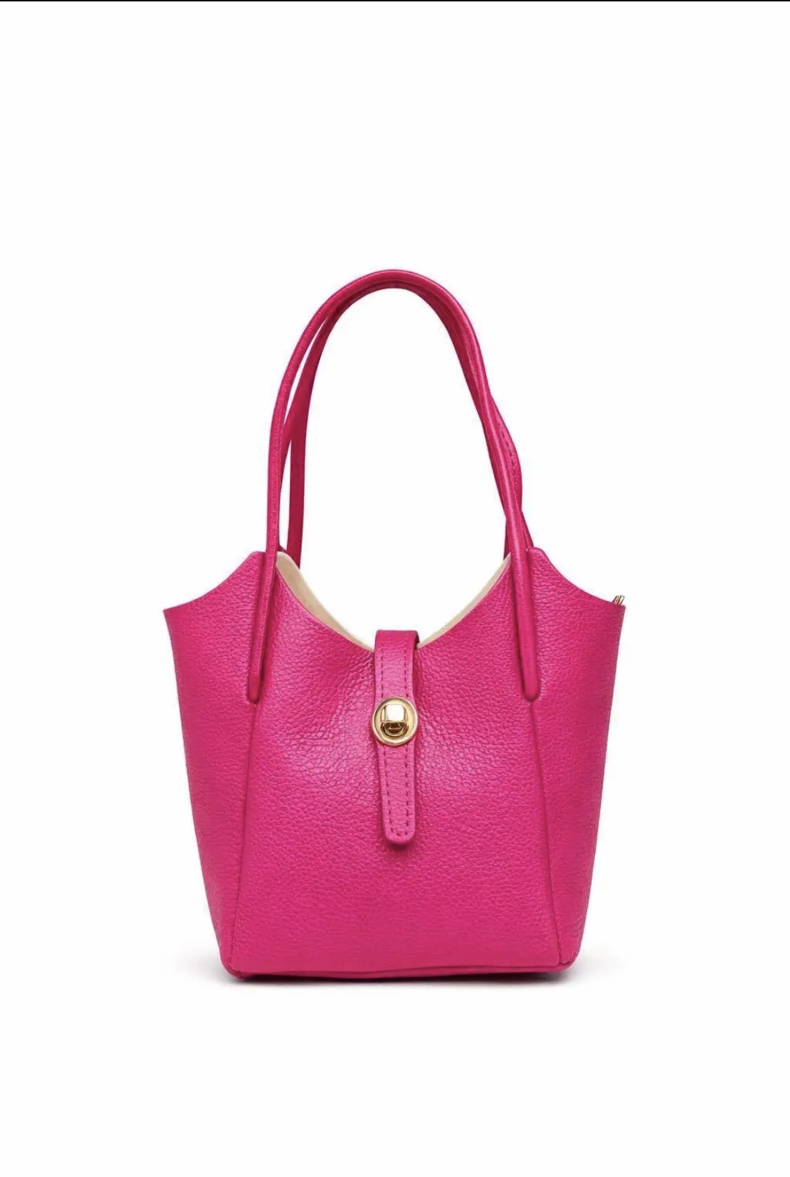 Diese stilvolle Mini-Handtasche aus echtem Leder vereint zeitlose Eleganz mit moderner Schlichtheit. Die klare Form, die hochwertige Narbung und der goldfarbene Drehverschluss verleihen der Tasche eine besonders edle Ausstrahlung – ein echtes Statement-Accessoire für jeden Look.
