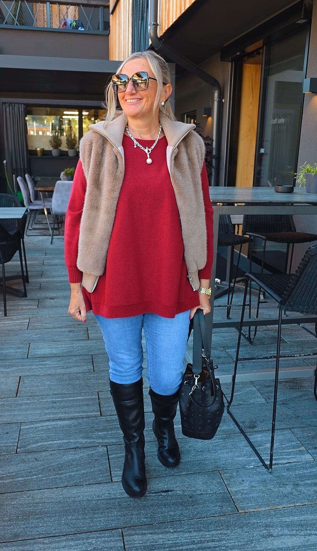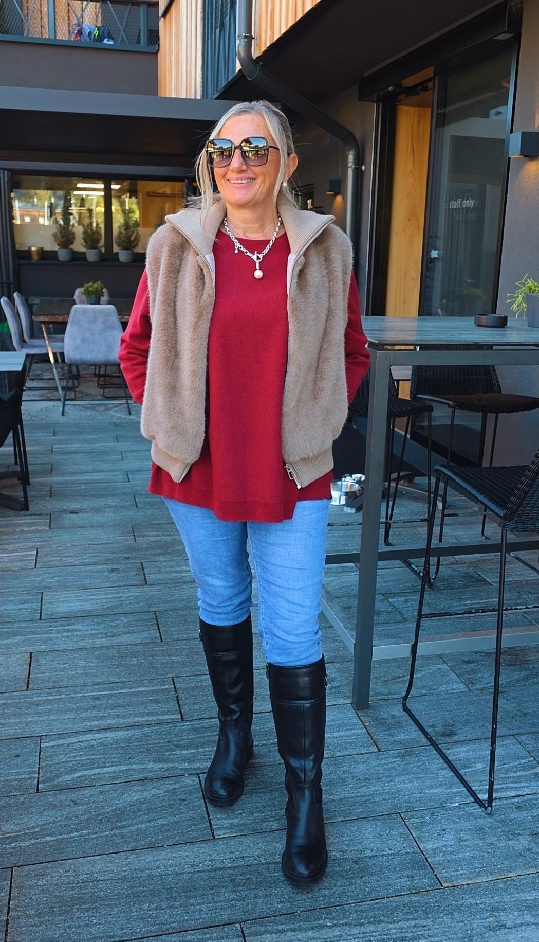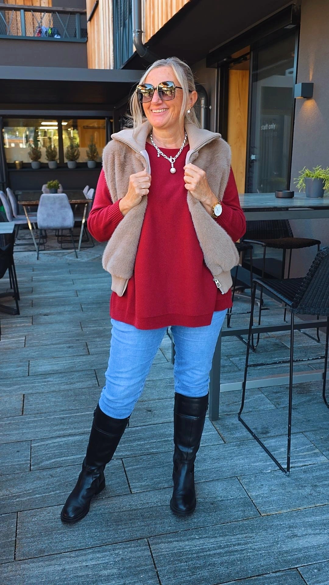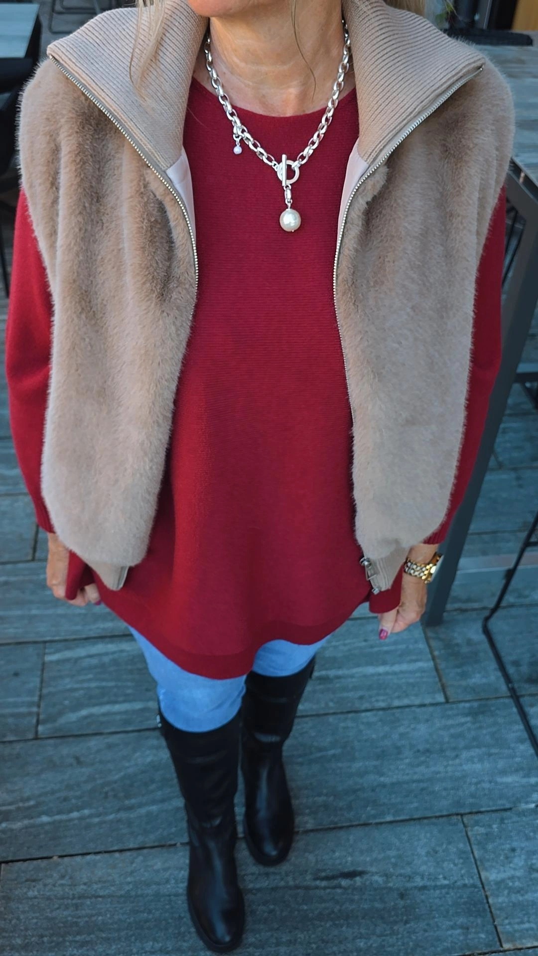 TAUPE FELLWESTE ELSA mit Reißverschluss.1