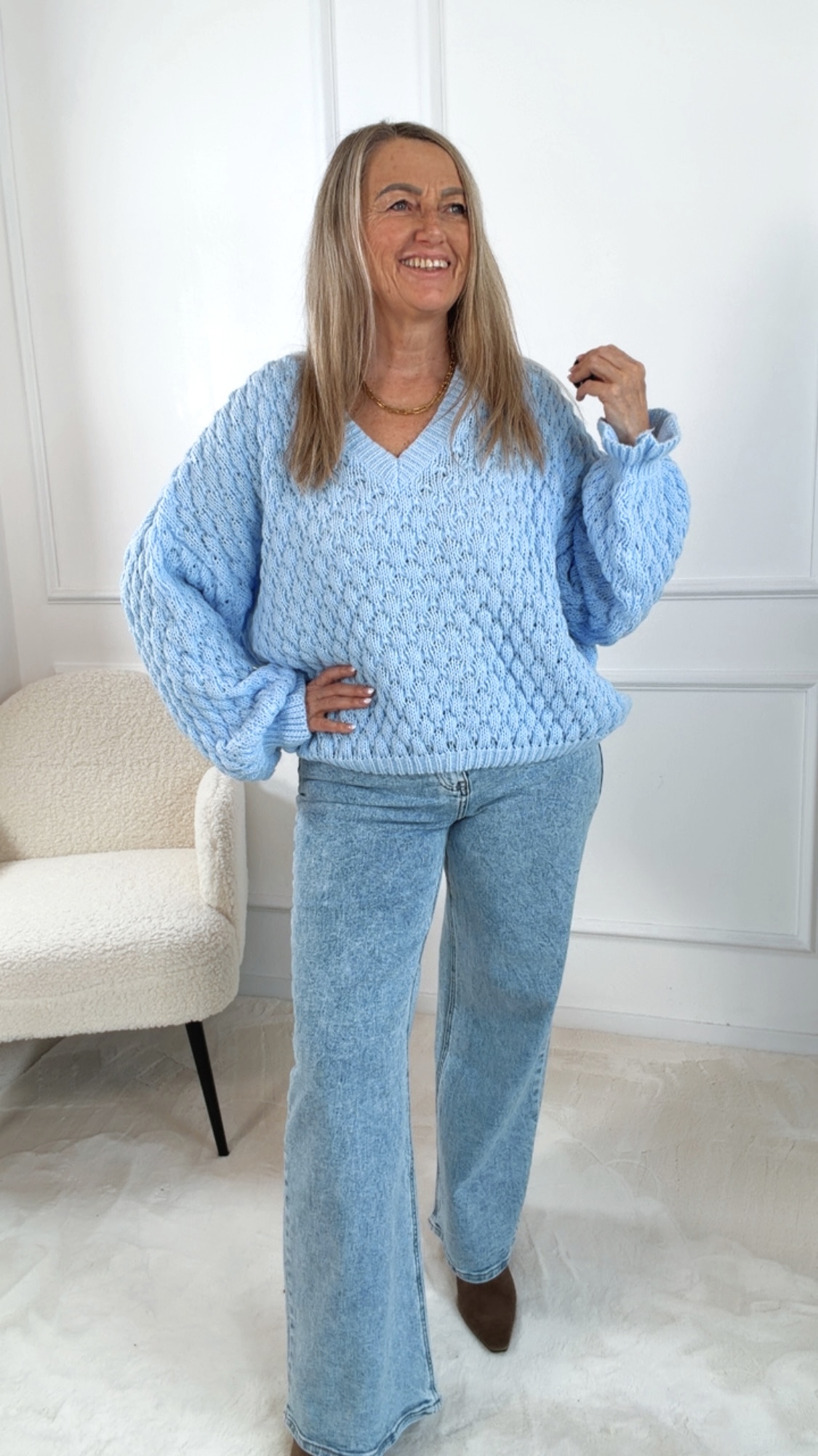 Damen-Pullover mit Ballonärmeln & V-Ausschnitt – Feminin & Modern