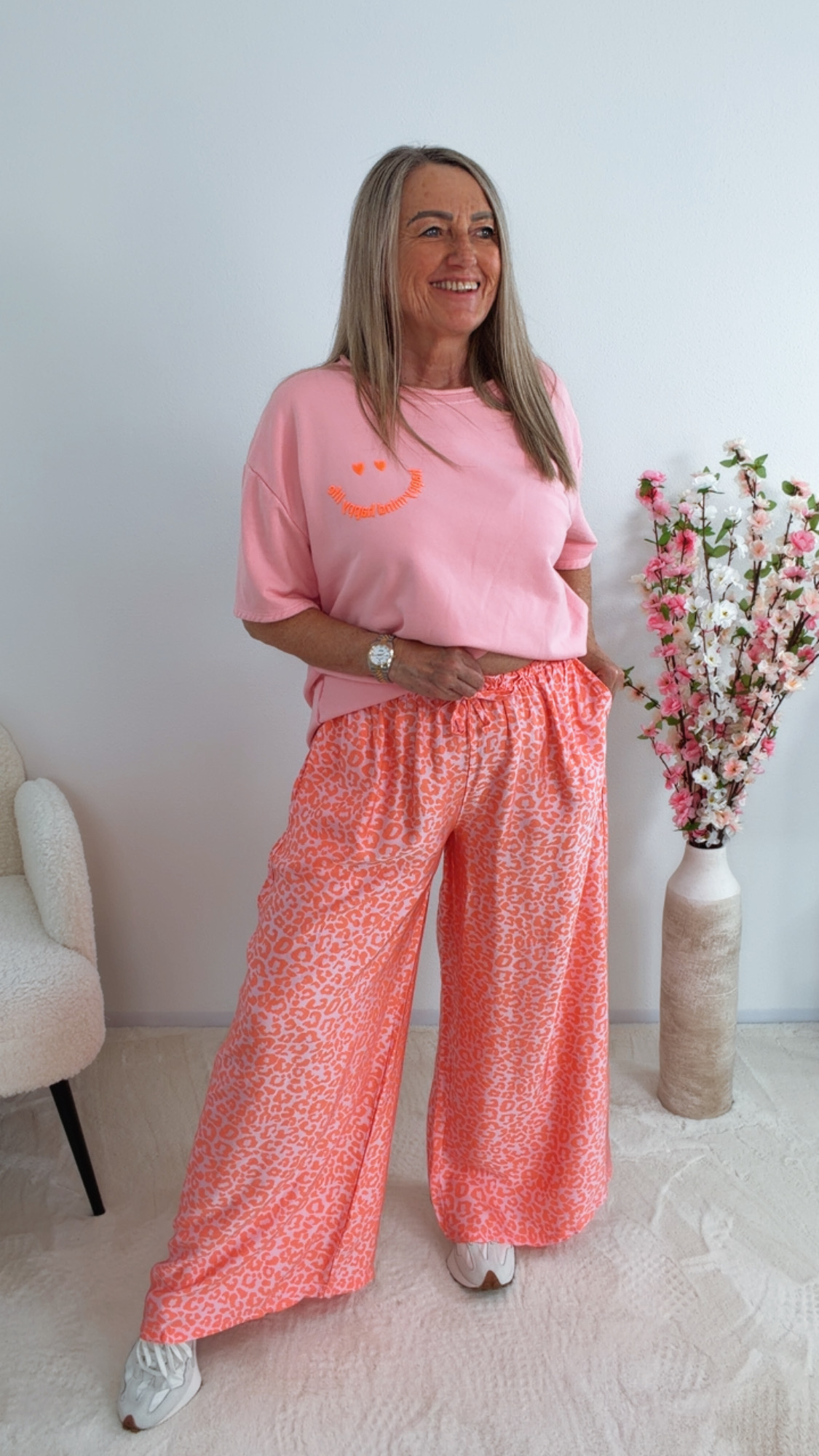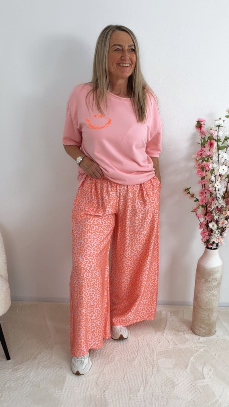 Die wunderschöne Seidenhose „Aurellisa“ überzeugt mit ihrem trendigen Leo-Muster 🐆💗 und sorgt für einen stylischen, sommerlichen Look 😍☀️