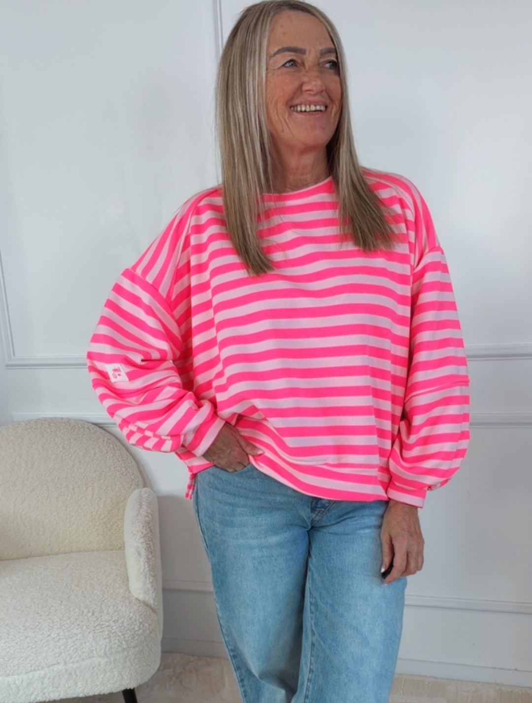 Das „Celestina“ Streifenshirt begeistert mit leuchtenden Farbkontrasten, sportivem Chic und angesagtem Fokuhila-Schnitt 🔥🎀. Die soften Baumwollfasern sorgen für ein herrlich angenehmes Tragegefühl, während die Streifenoptik jedes Outfit sofort frischer und stylischer wirken lässt 🌈💃. Ein echtes Statement-Lieblingsteil für jeden Tag!