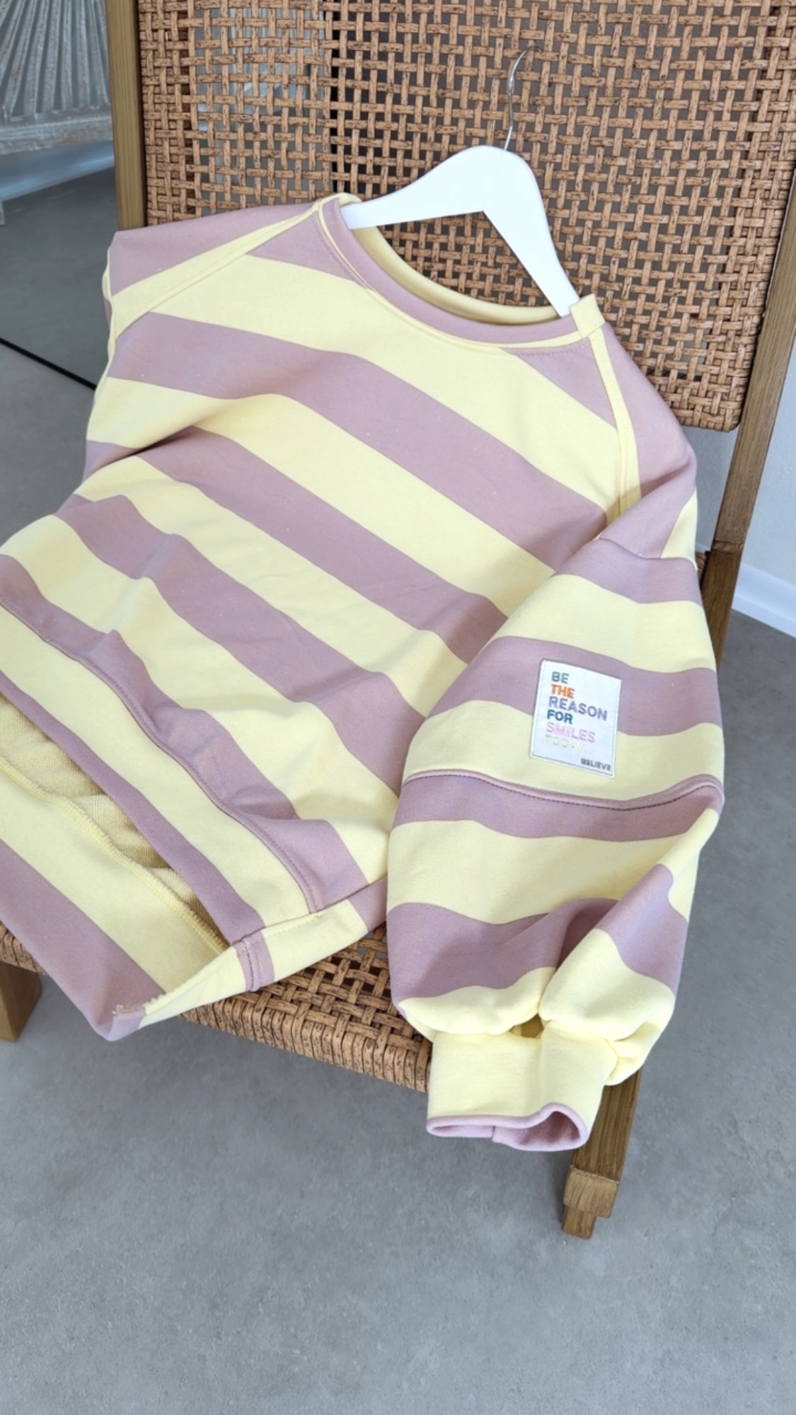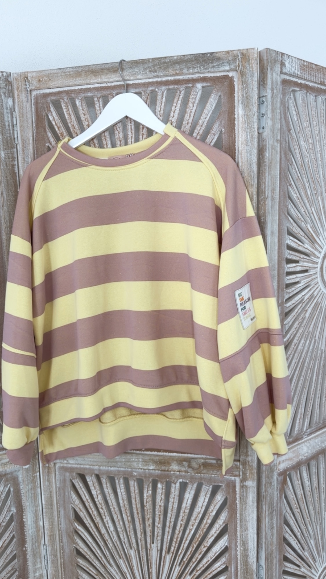 Dieser moderne Sweater überzeugt mit angesagten Blockstreifen und einem inspirierenden Statement-Patch am Ärmel mit der Aufschrift „be the reason for smiles today“. Das sportive Design trifft auf eine positive Botschaft und macht das Modell zu einem echten Hingucker im Alltag.