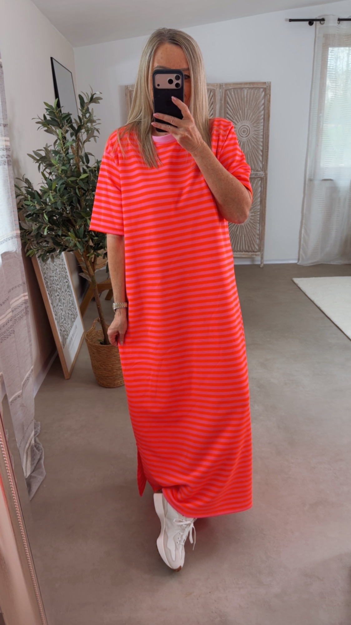 Dieses wunderschöne Sweaterkleid vereint entspannten Komfort mit einem stilvollen, zeitlosen Streifen-Design. Die klaren Linien und die soften Farbkombinationen verleihen dem Kleid eine moderne, gleichzeitig elegante Ausstrahlung – perfekt für jeden Tag.