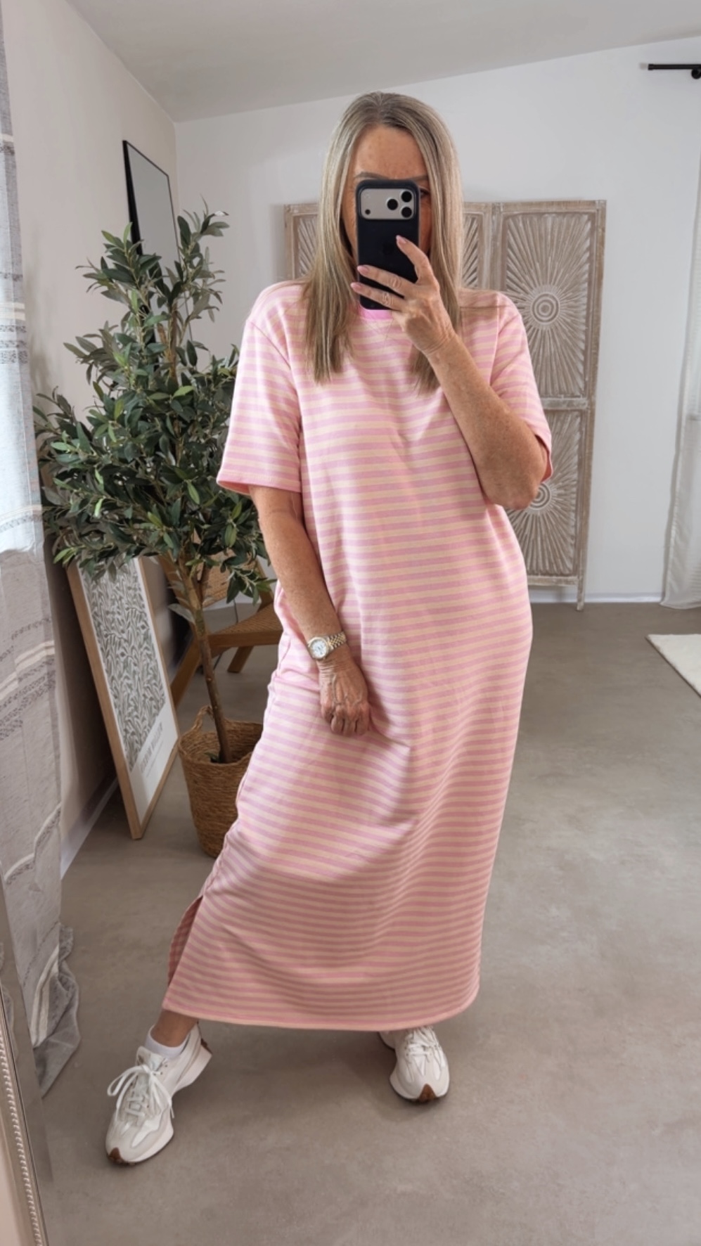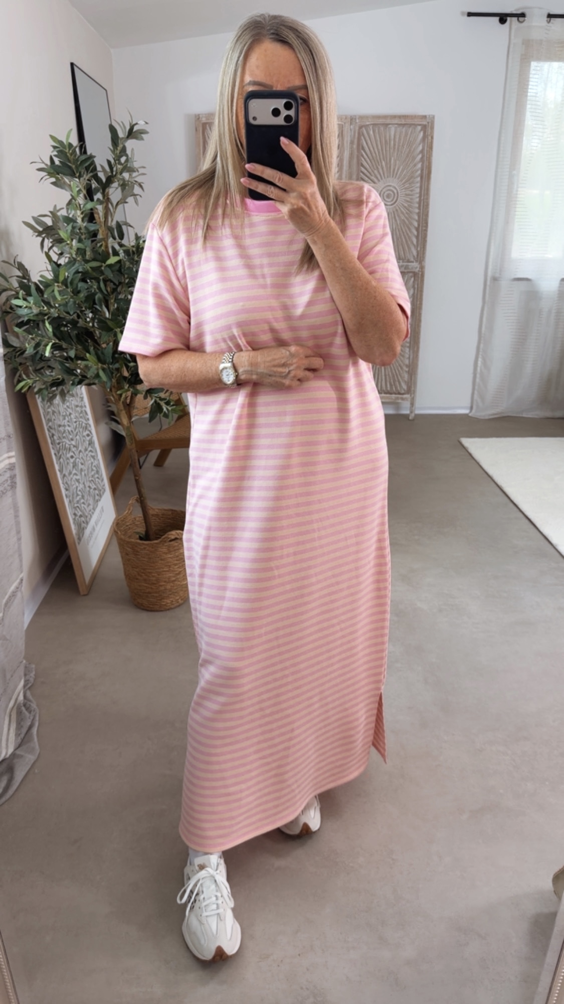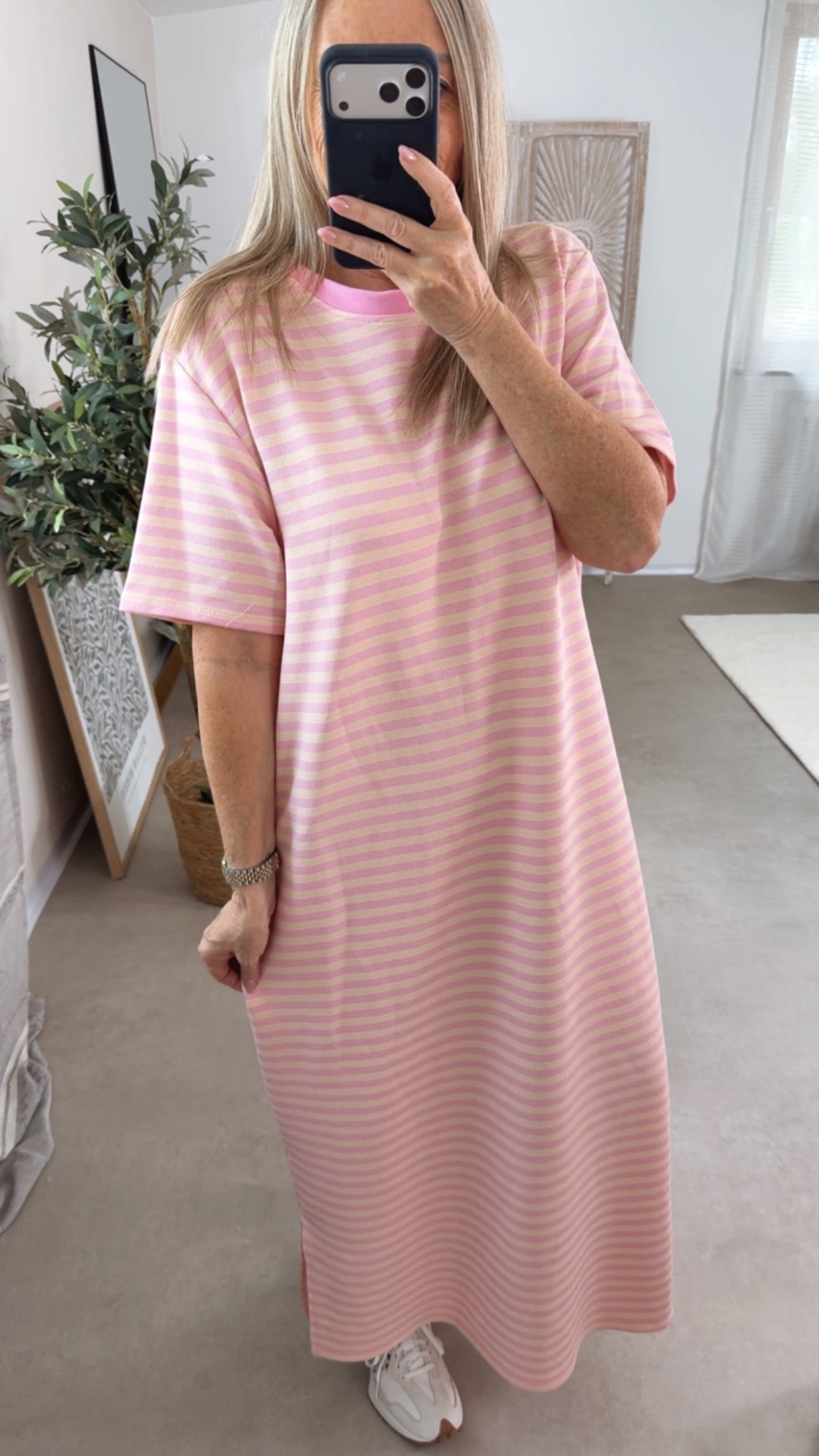 Dieses wunderschöne Sweaterkleid vereint entspannten Komfort mit einem stilvollen, zeitlosen Streifen-Design. Die klaren Linien und die soften Farbkombinationen verleihen dem Kleid eine moderne, gleichzeitig elegante Ausstrahlung – perfekt für jeden Tag.