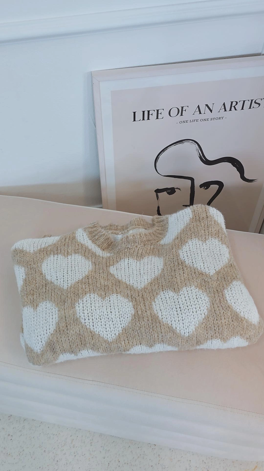 Der kurze, modische Schnitt verleiht dem Pullover eine trendige Silhouette und lässt sich perfekt zu High-Waist-Jeans, Röcken oder Hosen kombinieren. Das verspielte Herzmuster setzt einen femininen Akzent, während der klassische Rundhalsausschnitt für zeitlose Eleganz sorgt.