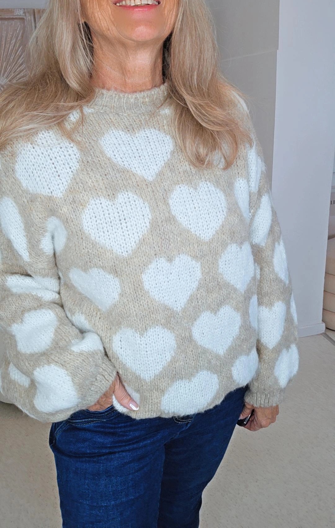 Información sobre el producto "COZY STRICK PULLOVER BIANCA HEARTS 34 - 42 Made in Italy Strickpullover Knit Sweater Herz-Muster"