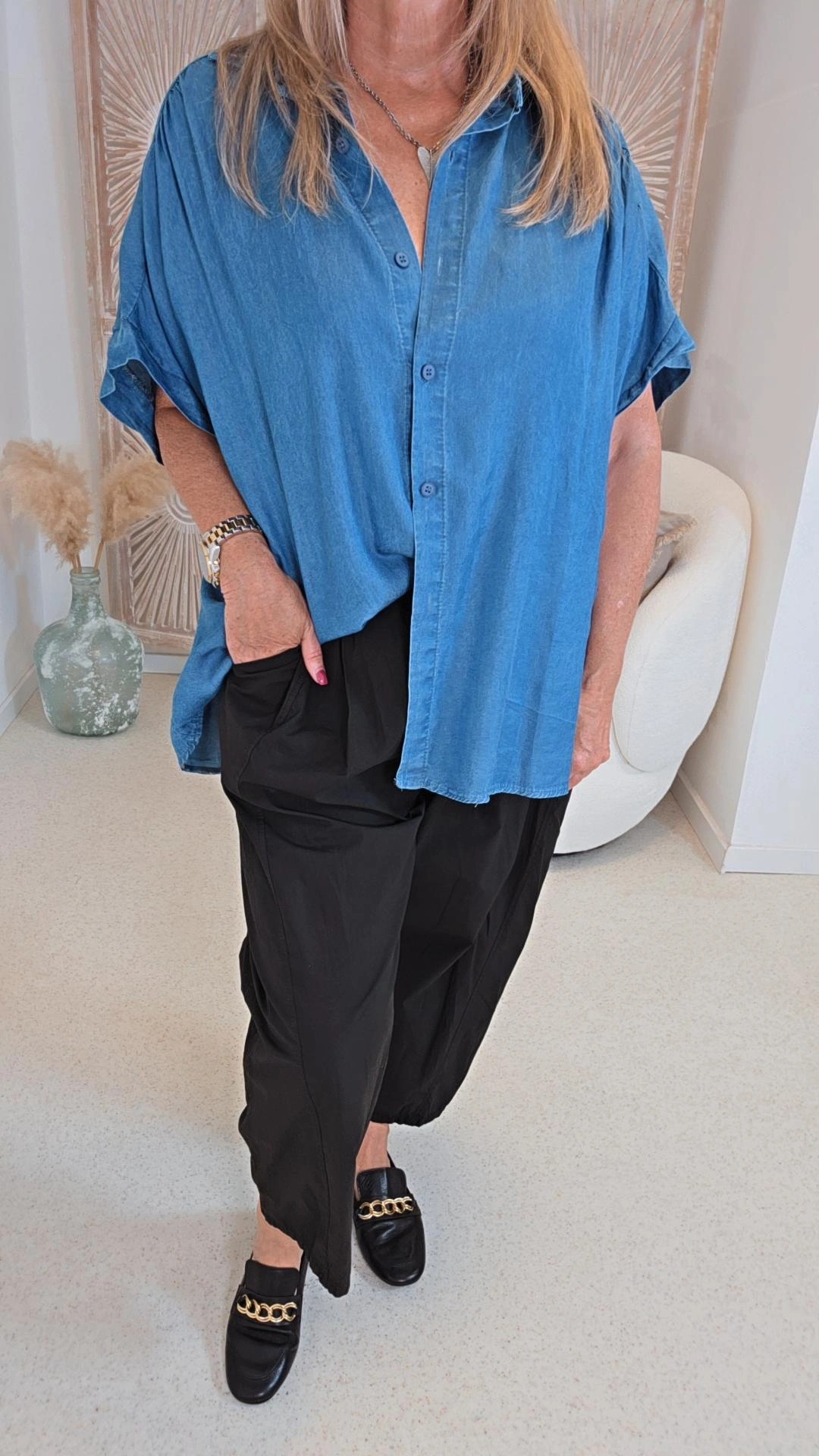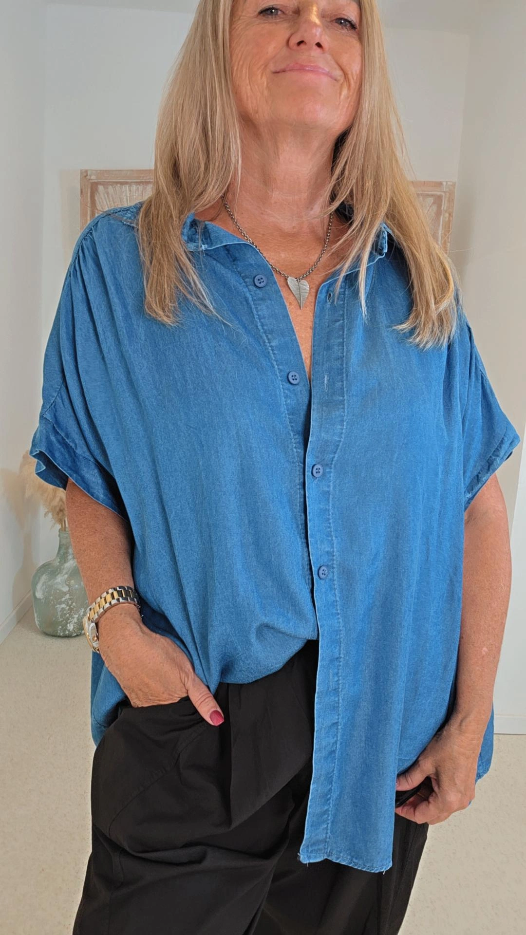 Información sobre el producto "DENIM KURZARMBLUSE DOMINIQUE LYOCELL Made in Italy Größe 36-46"