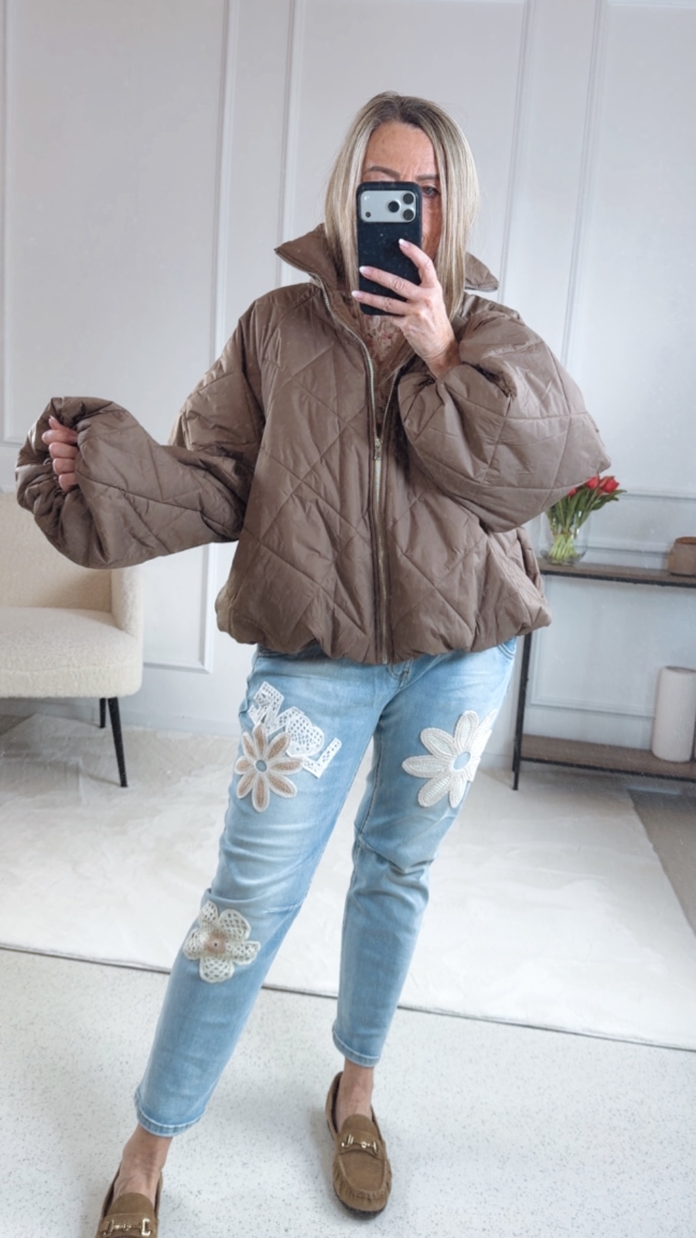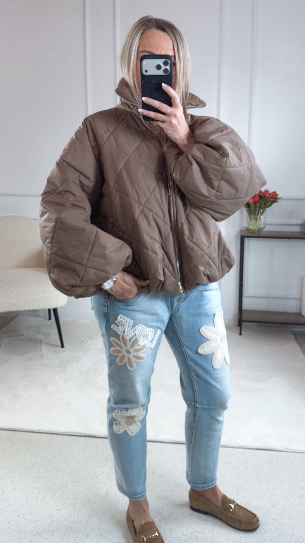 Diese trendige Puffjacke bringt Farbe und Leichtigkeit in die Übergangszeit. Mit ihrem voluminösen Schnitt sorgt sie für einen modernen, stylischen Look, während die weichen, frischen Frühlingsfarben sofort gute Laune verbreiten.